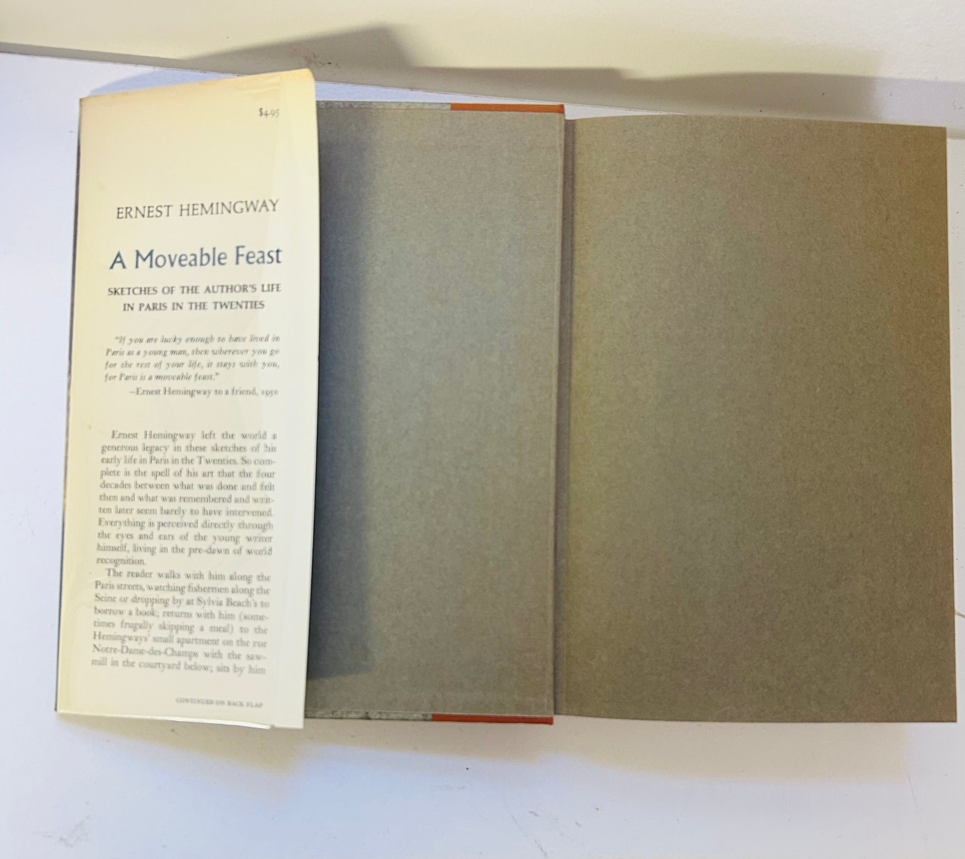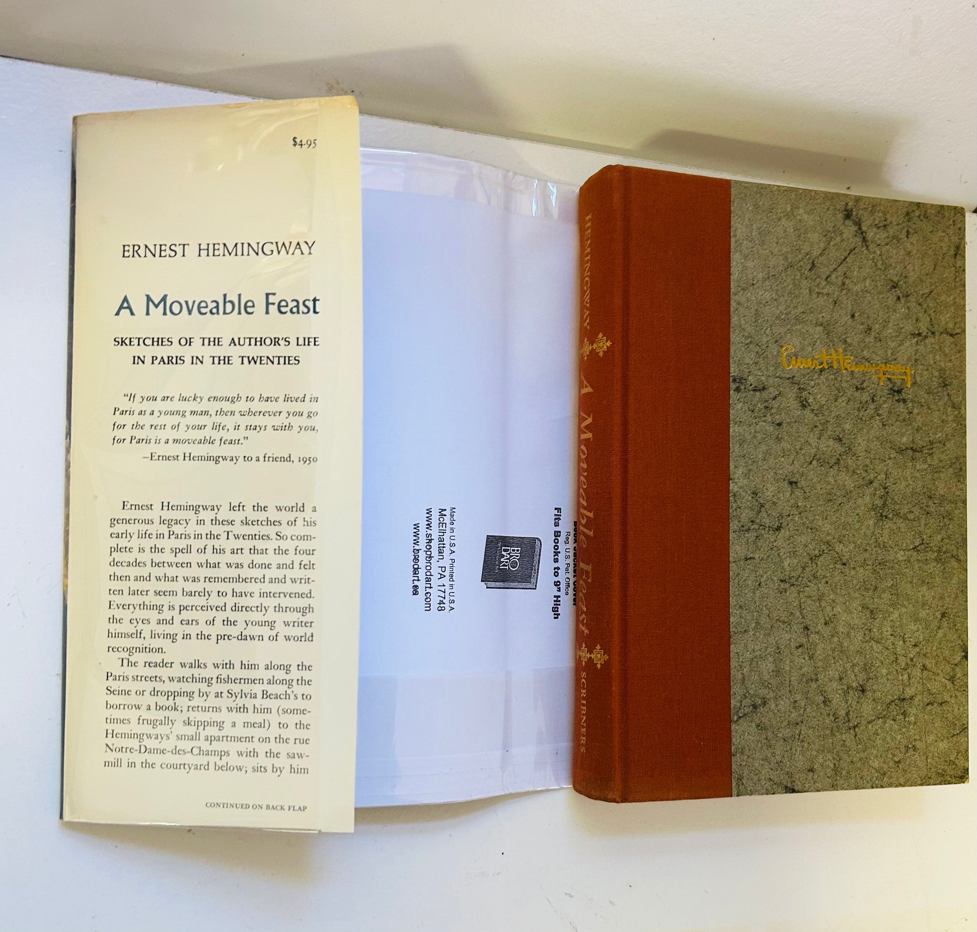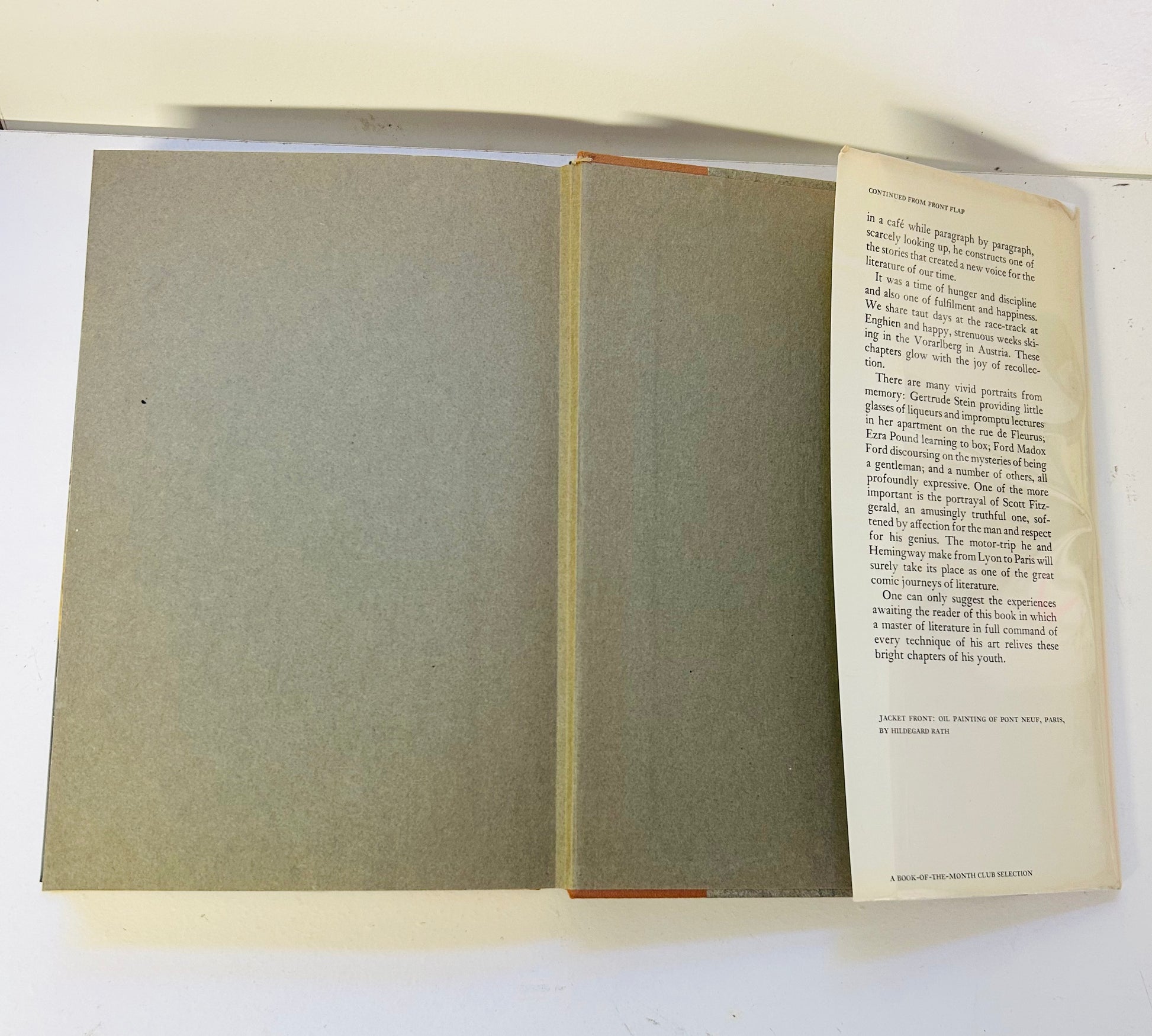 Ernest Hemingway. First edition, first printing. Dust Jacket: Very Good+ An unclipped jacket with original price $4.95 on inside flap (was eventually changed to $3.95). There is some minor chipping on the spine. There are a small areas that have some chipping on the bottom front of the cover. Otherwise, the jacket is in great condition. In a mylar protective wrapper. Hardcover: Near Fine. New York: Charles Scribner's Sons, 1964. Has the appropriate publishing mark, A-3.64(H), denoting a first edition. No writing or markings in this well preserved edition, 211 pp. Grey speckled cloth with orange spine and gold lettering in cover and spine. Green endpapers and pastedowns. Contains black/white photographs.
