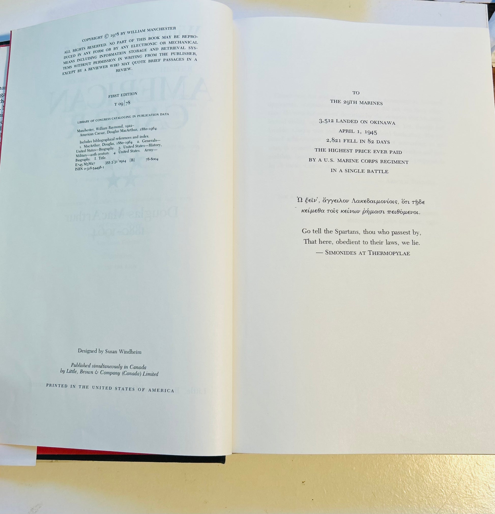 This is a stated first edition of William Manchester’s acclaimed biography American Caesar, one of the definitive works on the life of General Douglas MacArthur. Known for his sweeping narrative style and meticulous research, Manchester delivers a foundational text in modern American military and political history.