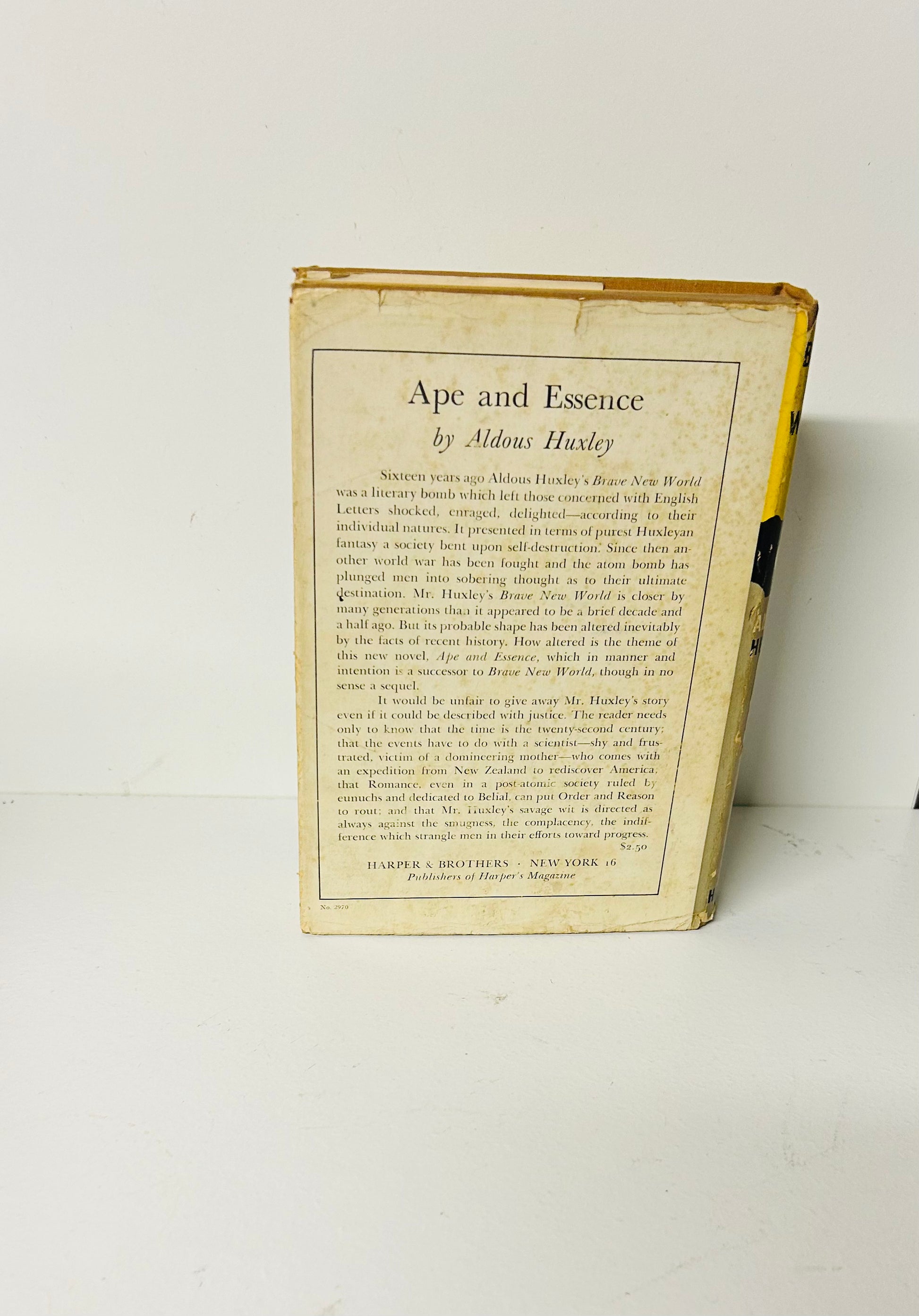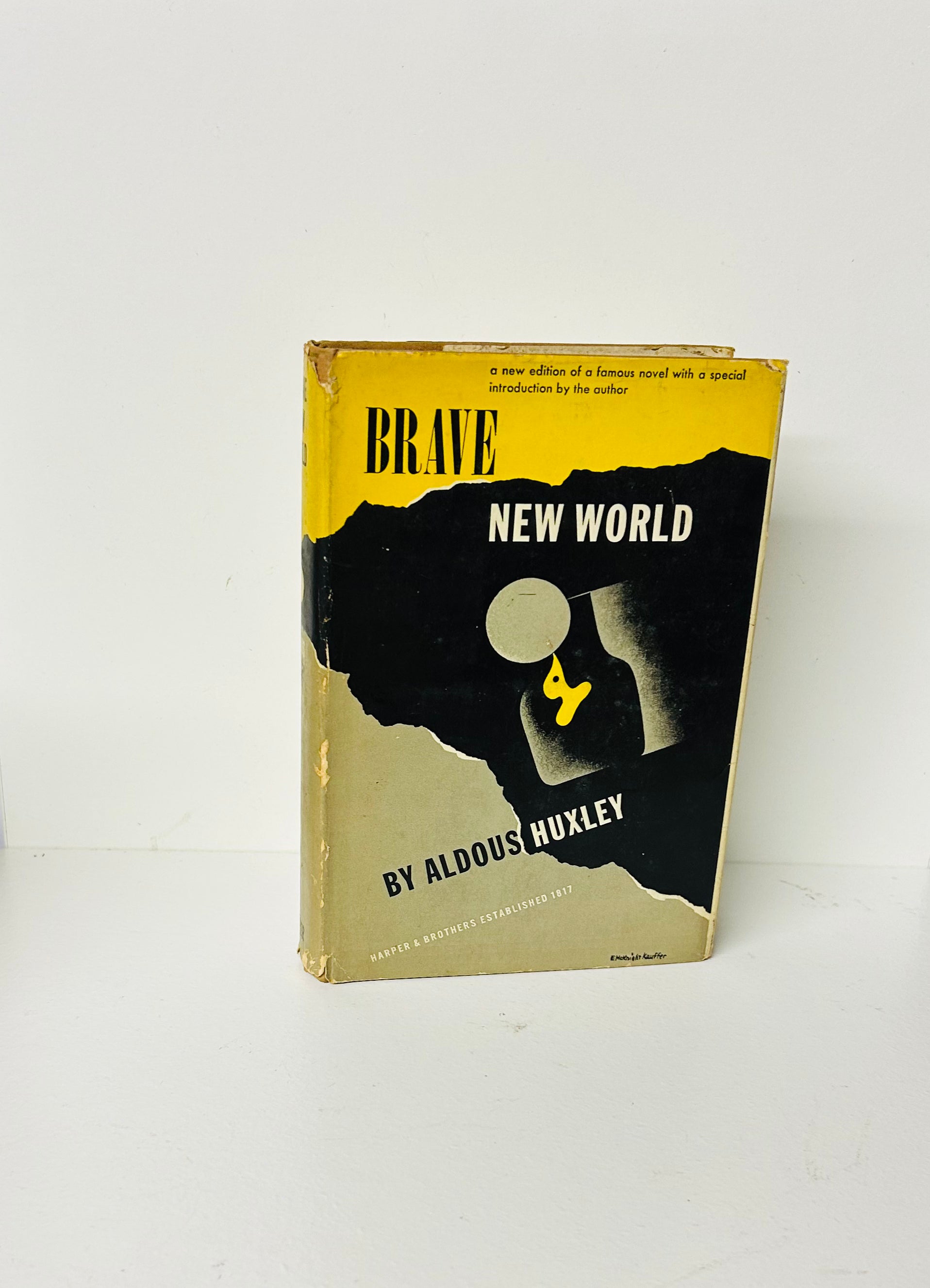 Aldous Huxley. Second American edition, later printing. New York: Harper Brothers, 1946. Both unclipped dust jacket, with original price $2.50 on inside flap, and hardcover are in Very Good condition. A wonderful dust jacket designed by E. McKnight Kauffer. There is some chipping on the spine and foxing on DJ and flyleaf pages. No writing or markings found in the book, 311 pp.