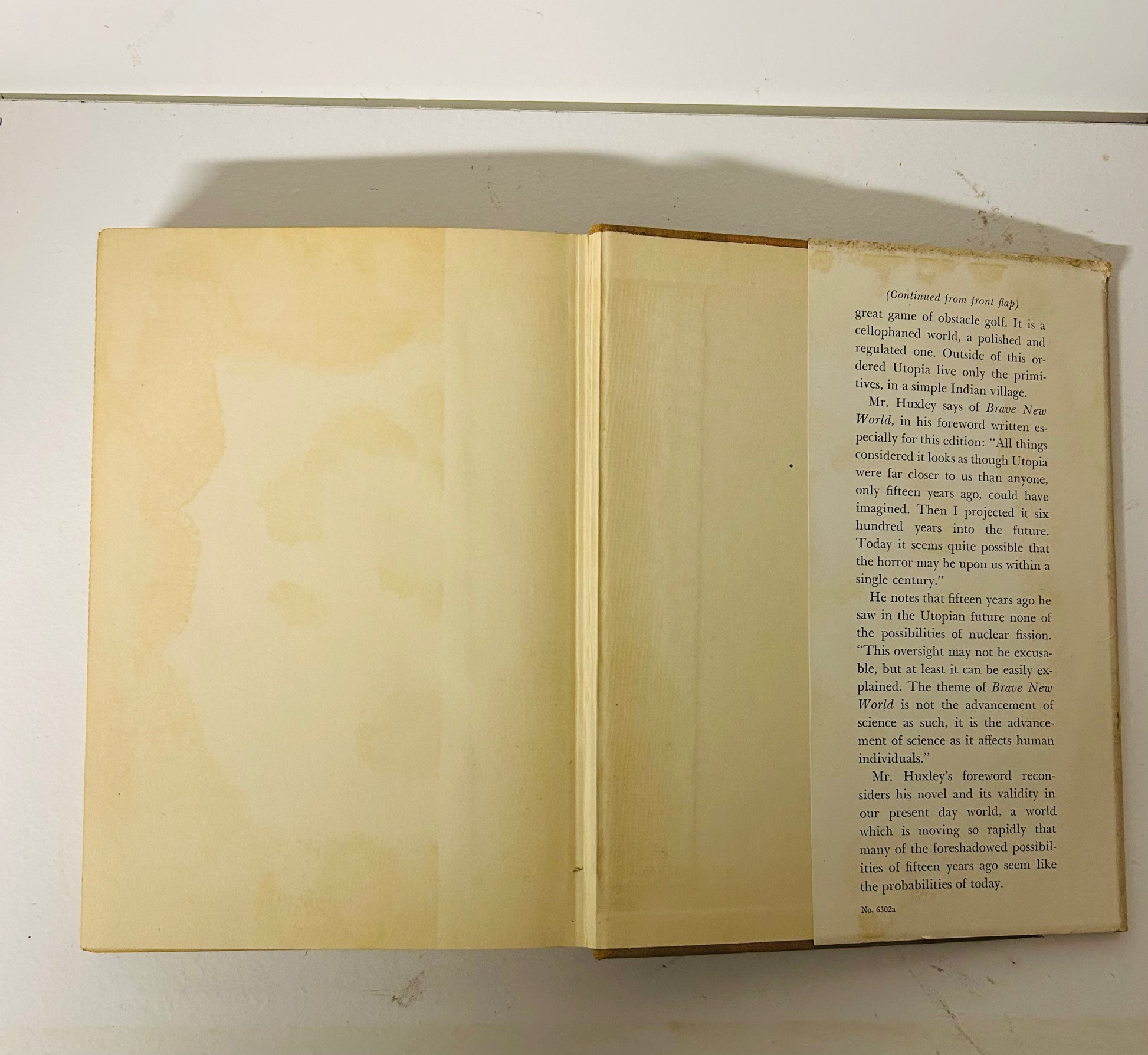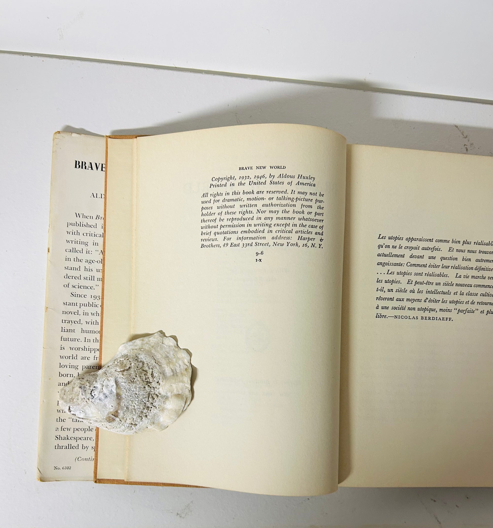Huxley's novel was first published by Chatto and Windus in 1932, of which, 324 were signed by the author. It was followed up with this revised edition in 1946 that included a new foreword written by the author. The next revision took place in 1958. Named to the "Connolly top 100" best book list. In 1999, the Modern Library ranked Brave New World fifth on its list of the 100 best English-language novels of the 20th century.