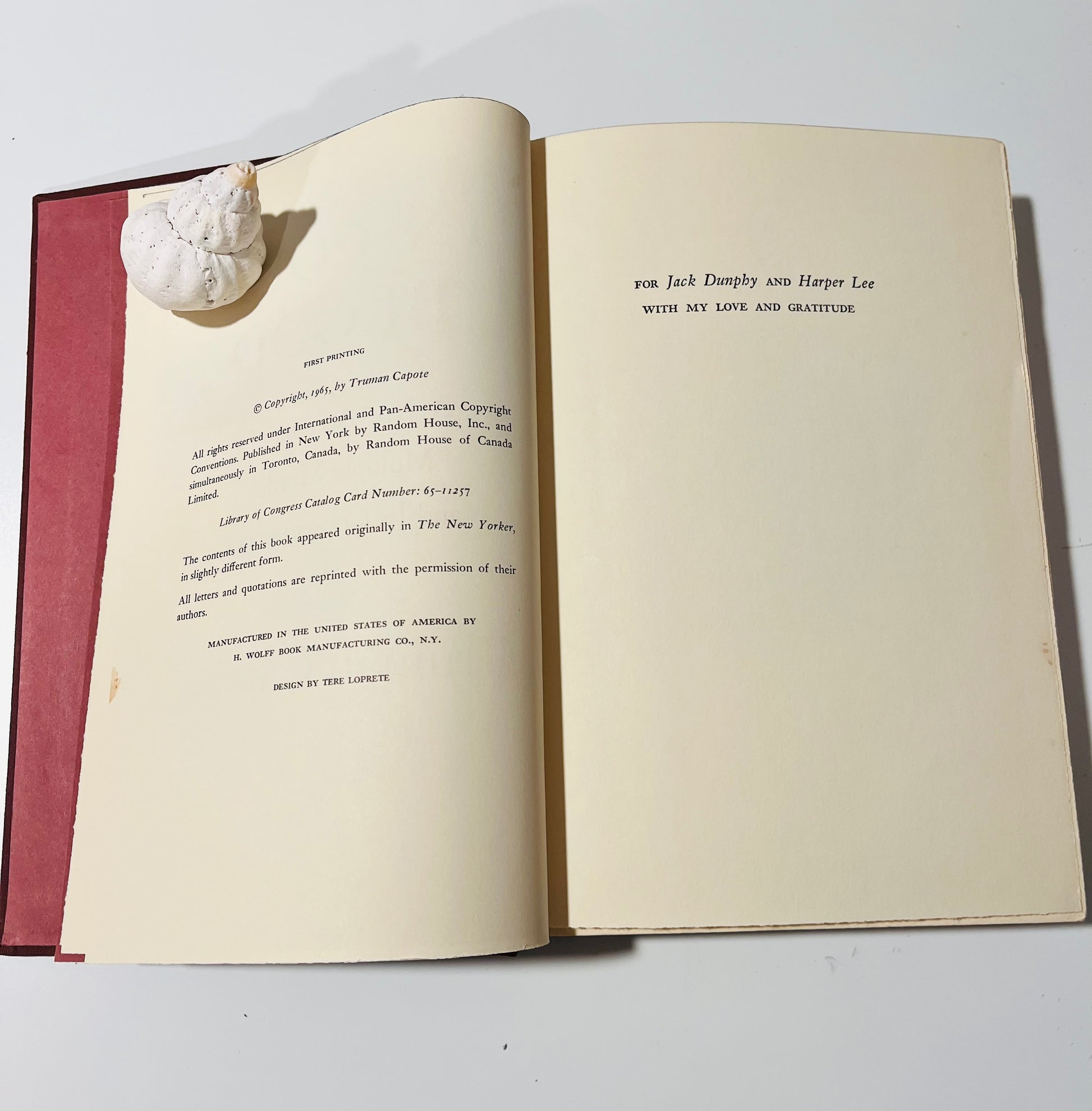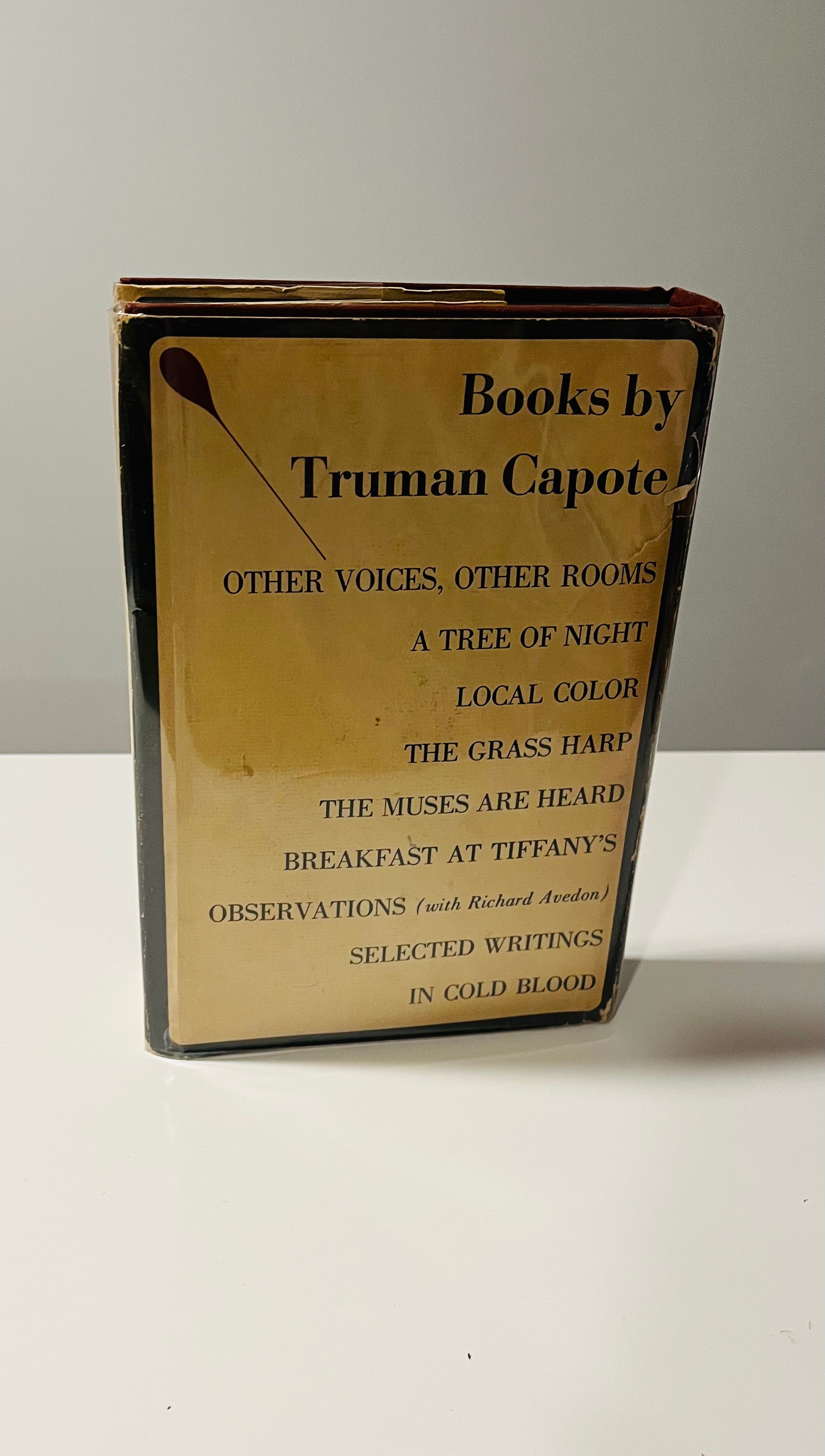 Meets all first edition points requirements such as 1/66 on inside flap of jacket. Top of pages: Red stained top edge (common on firsts). Jacket back panel: Should have a photo of Capote by Henri Cartier-Bresson. Jacket spine: The Random House logo should be properly aligned at the base (misalignments often indicate later printings or book club editions).