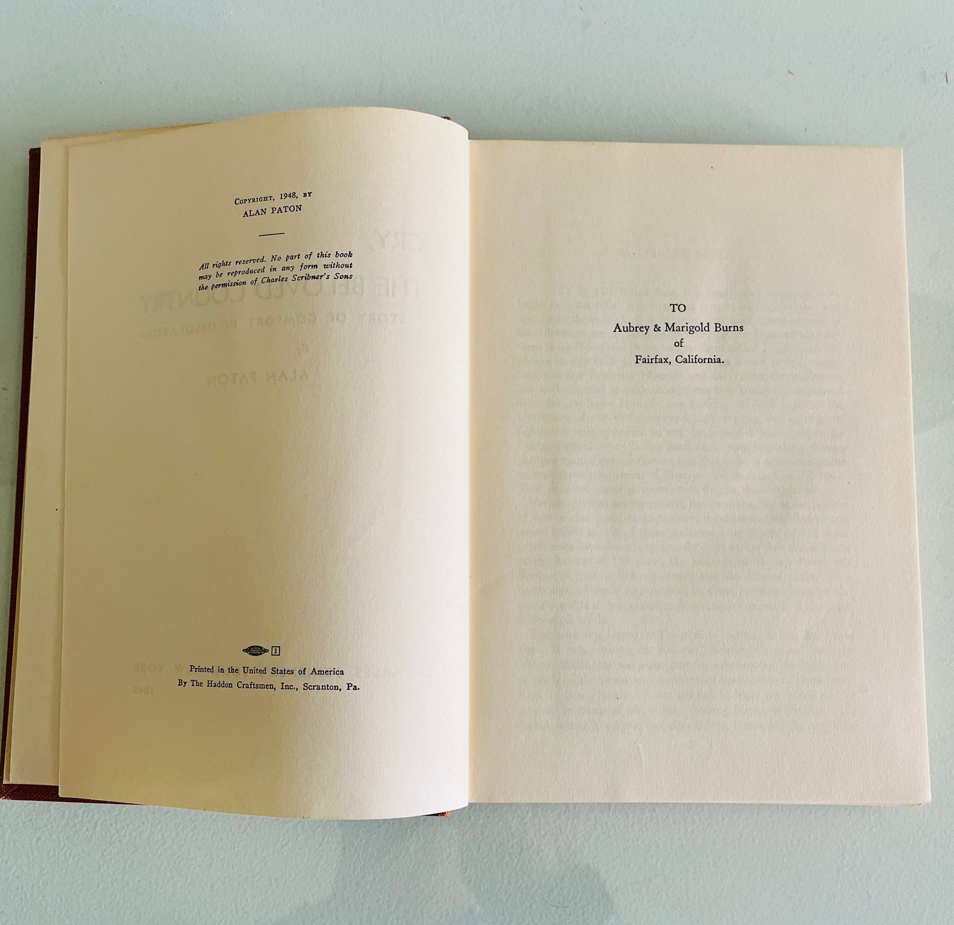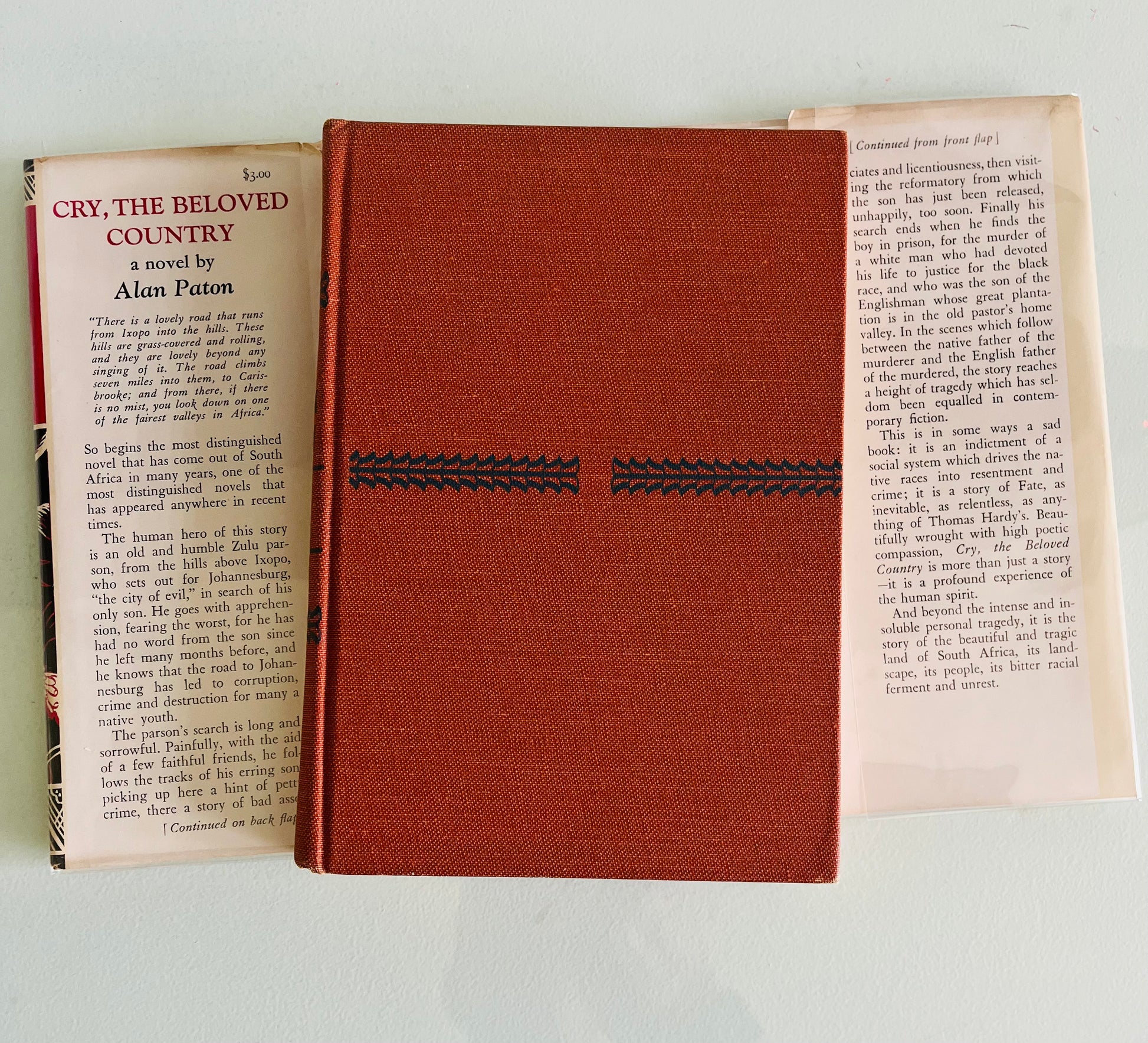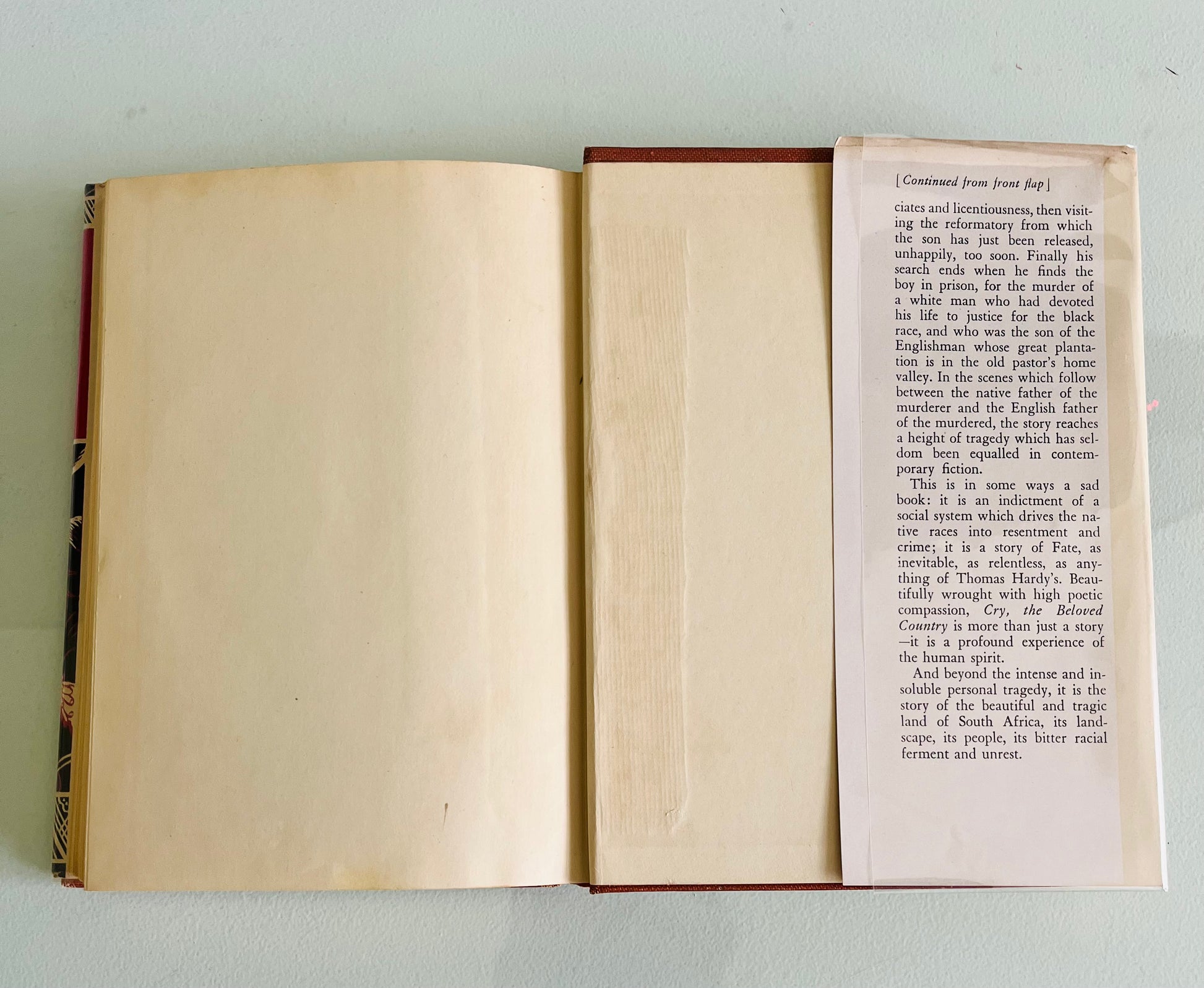 Alan Paton. First edition, early printing. New York: Charles's Scribner's Sons, 1948. Dust Jacket: Very Good+ An unclipped ($3.00) jacket (has all first edition points). The archival jacket has some chipping on top/bottom of spine. Near Fine hardcover with orange cloth and grey lettering on spine. No writing or marking in the book, 278 pp., some very light foxing on front/back cover.