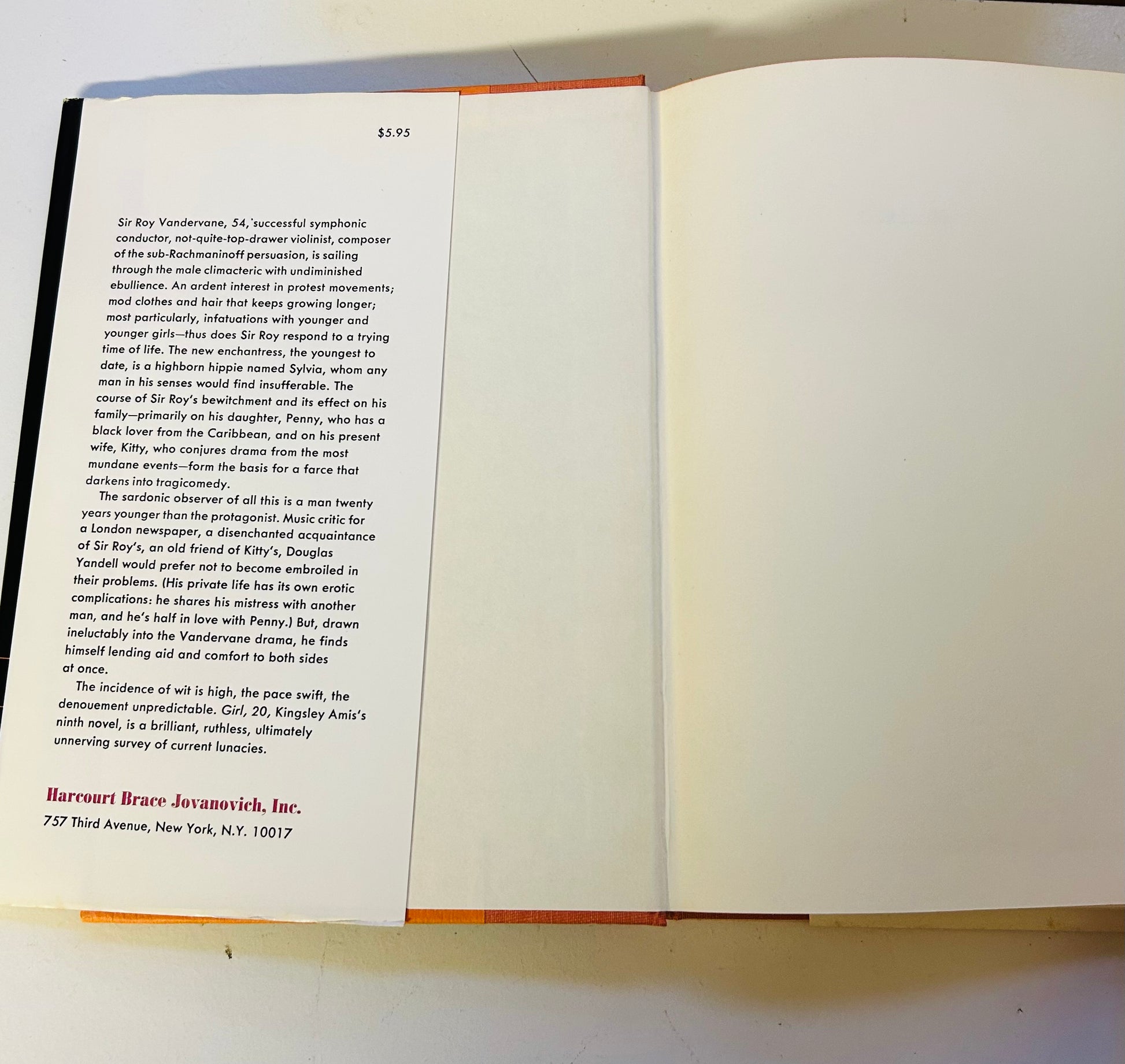 First American edition of Kingsley Amis’s sharp and darkly comic novel Girl, 20, a biting satire of the 60's and 1970's music scene and midlife crisis. Set in London Girl, 20 is "vintage Amis, acidly funny and shamelessly entertaining". A well-preserved copy of Amis’s social satire that still feels wickedly relevant today.