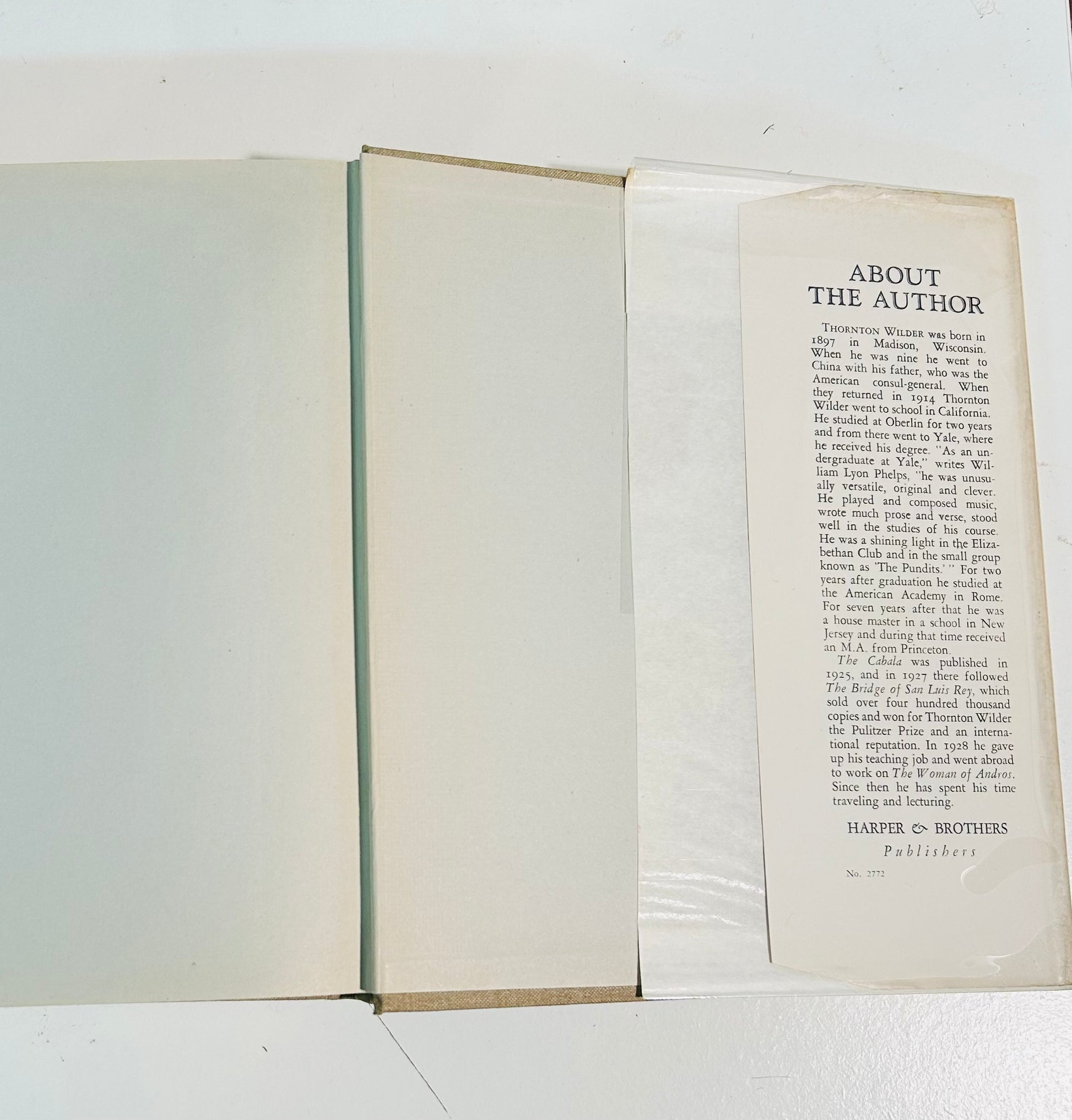 Thornton Wilder. Stated first American edition. New York: Harper and Brothers Publishers, 1935. First printing, with "M-I" code on copyright page indicating December 1935 publication. Unclipped dust jacket (in a mylar wrapper) is in Very Good condition. Jacket has foxing and chipping on spine and edges. Publishers original price $2.50 still intact on inside flap. Hardcover is in Very Good+ condition. No writing or markings found in the book, 304 pp.