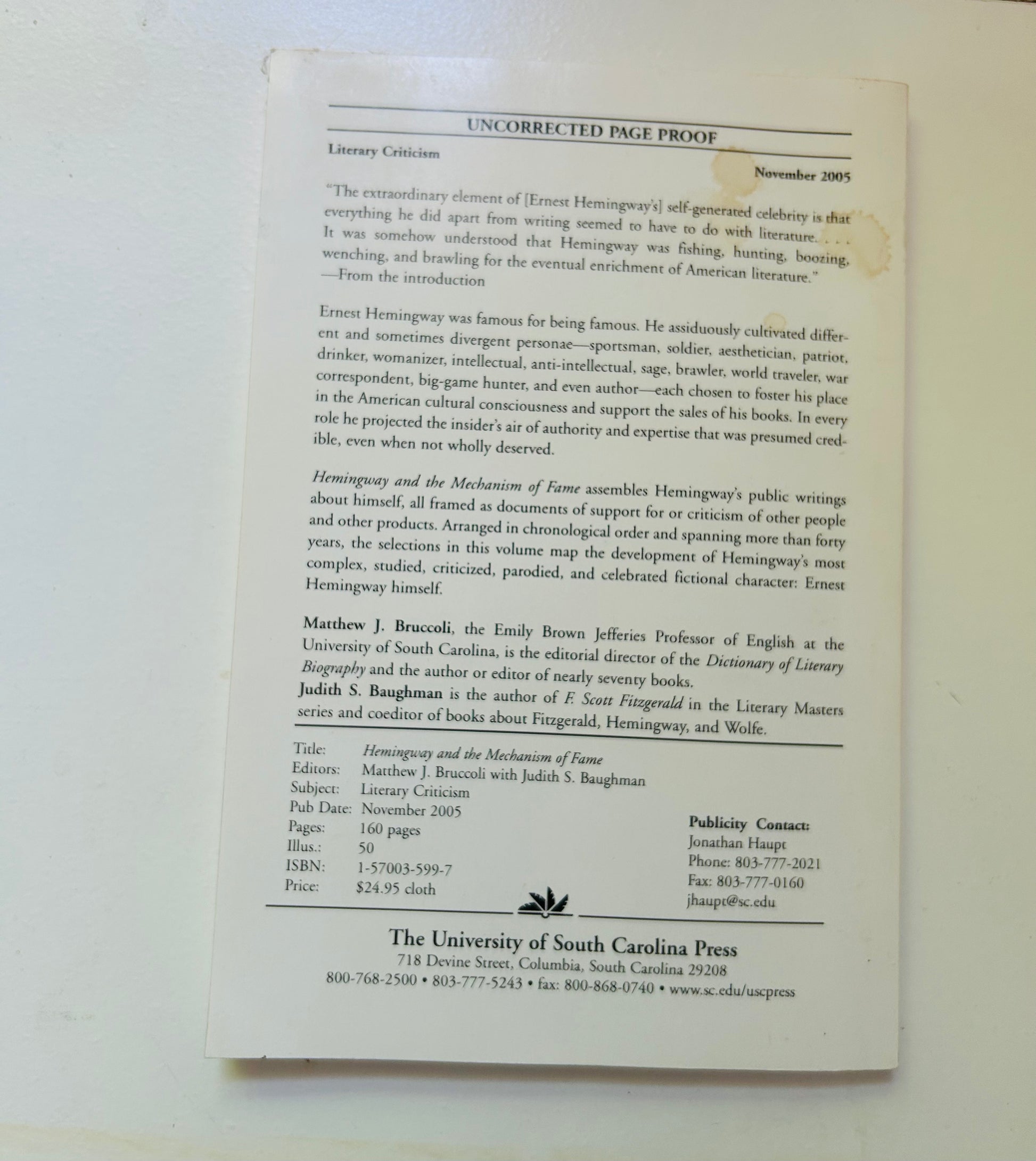 Matthew Bruccoli, editor. First edition, first printing. SC: University of South Carolina Press, 2006. No writing or markings in this softcover edition, 131 pp. small stained area on rear cover.