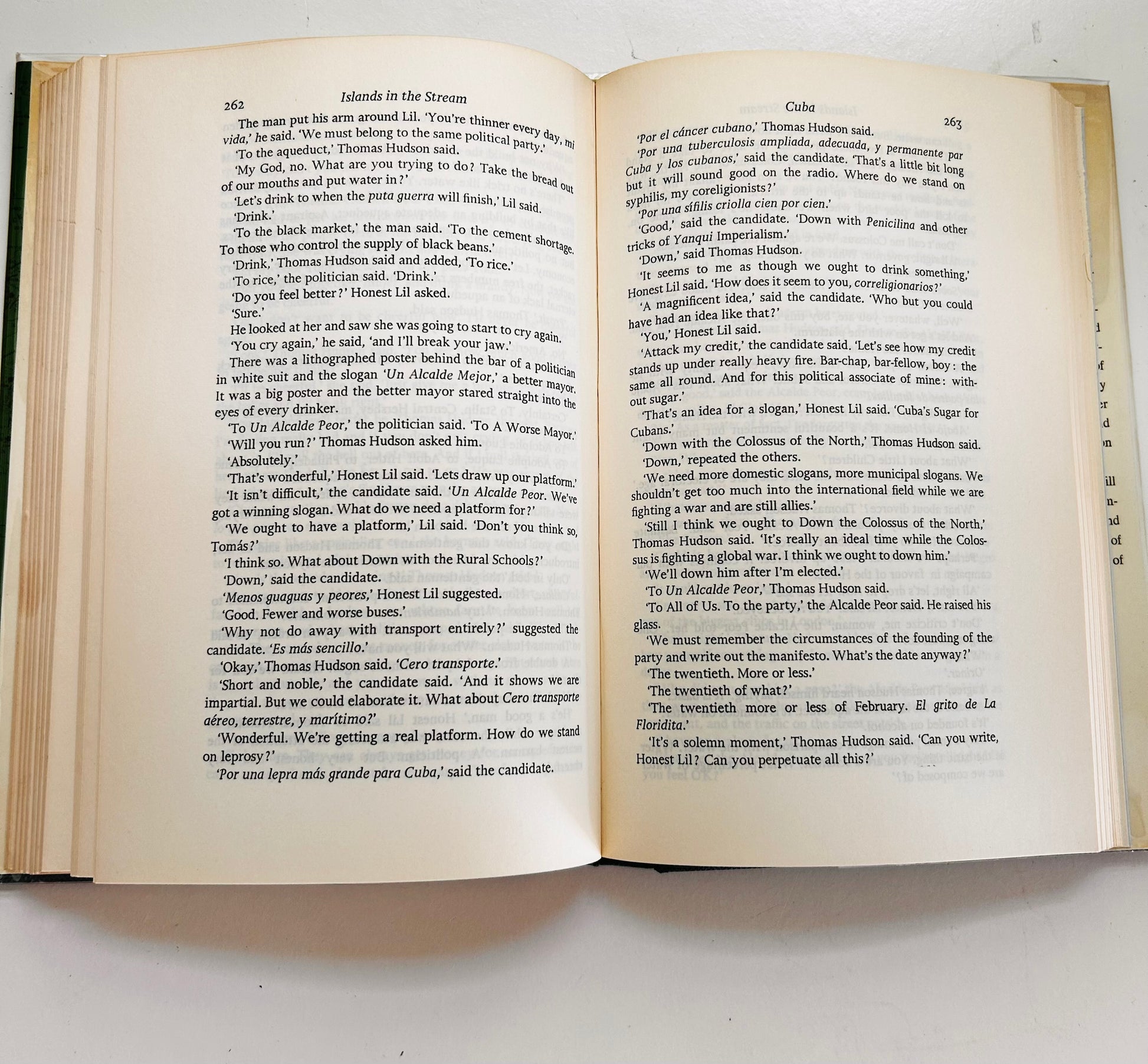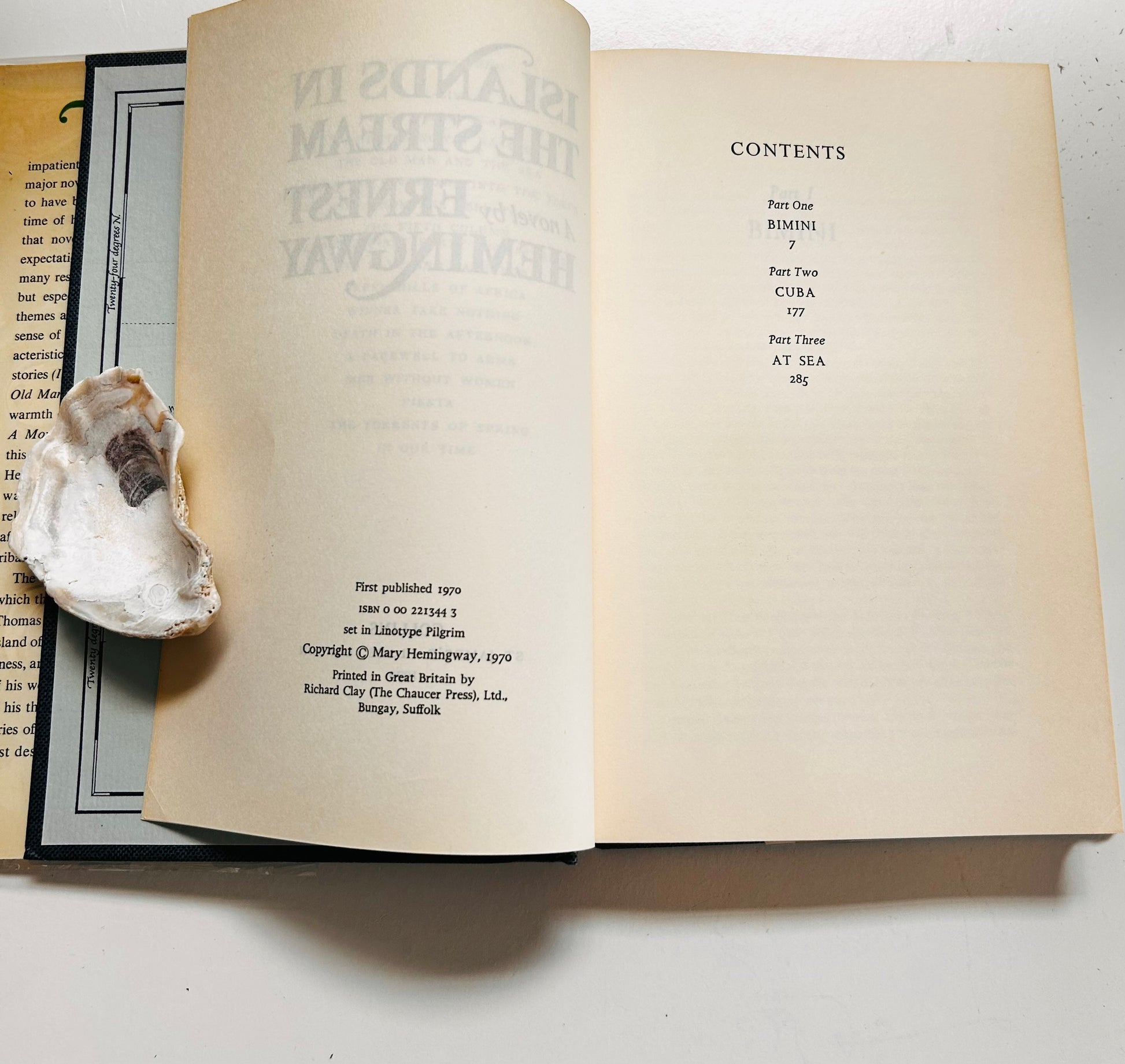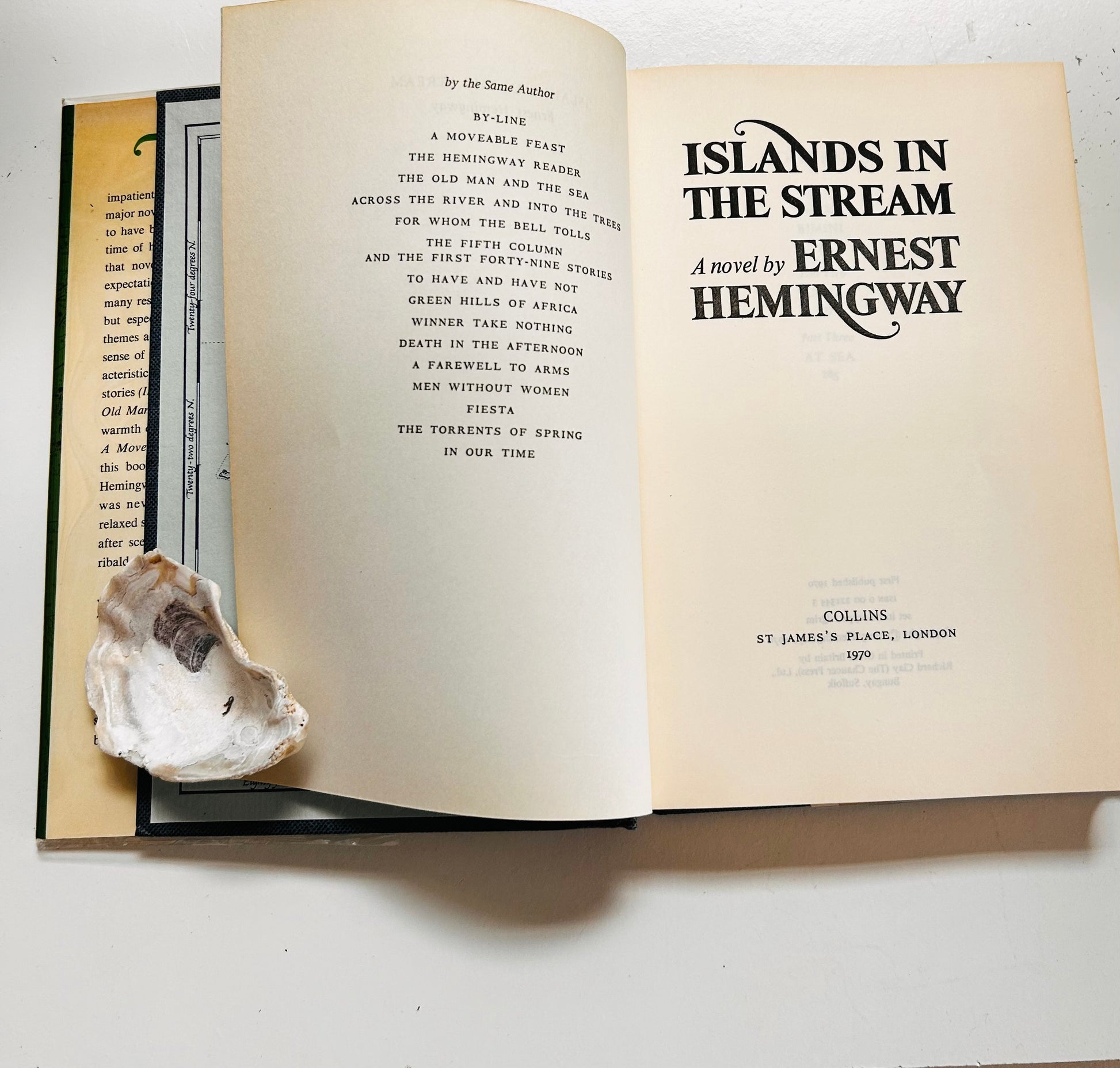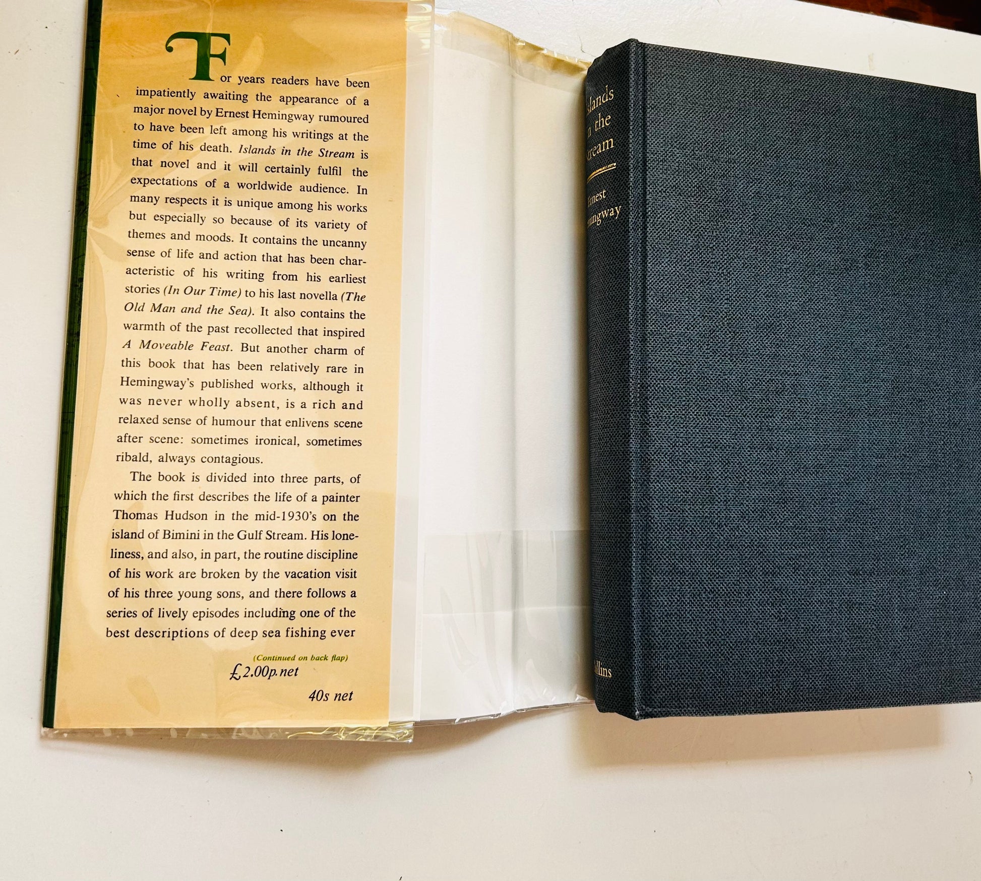 - Discover the rare opportunity to own a first UK edition of Islands in the Stream, Ernest Hemingway’s posthumous masterpiece, published by Collins, London, 1970. This pristine, first-printing edition is in superior condition, featuring the original green cloth binding, gilt lettering, and immaculate dust jacket. A remarkable find for Hemingway enthusiasts and serious collectors alike.