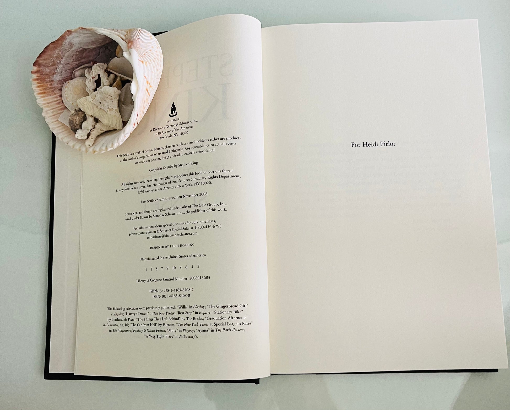 Stephen King. First edition. New York: Scribner, 2008. Dust Jacket: Fine. An unclipped, beautifully design jacket, that features orange holographic titles on black background wrapping around to black titles over orange. Hardcover: Fine. Black cloth with gold lettering on spine. Like new, no writing or markings in the book, 367 pp.