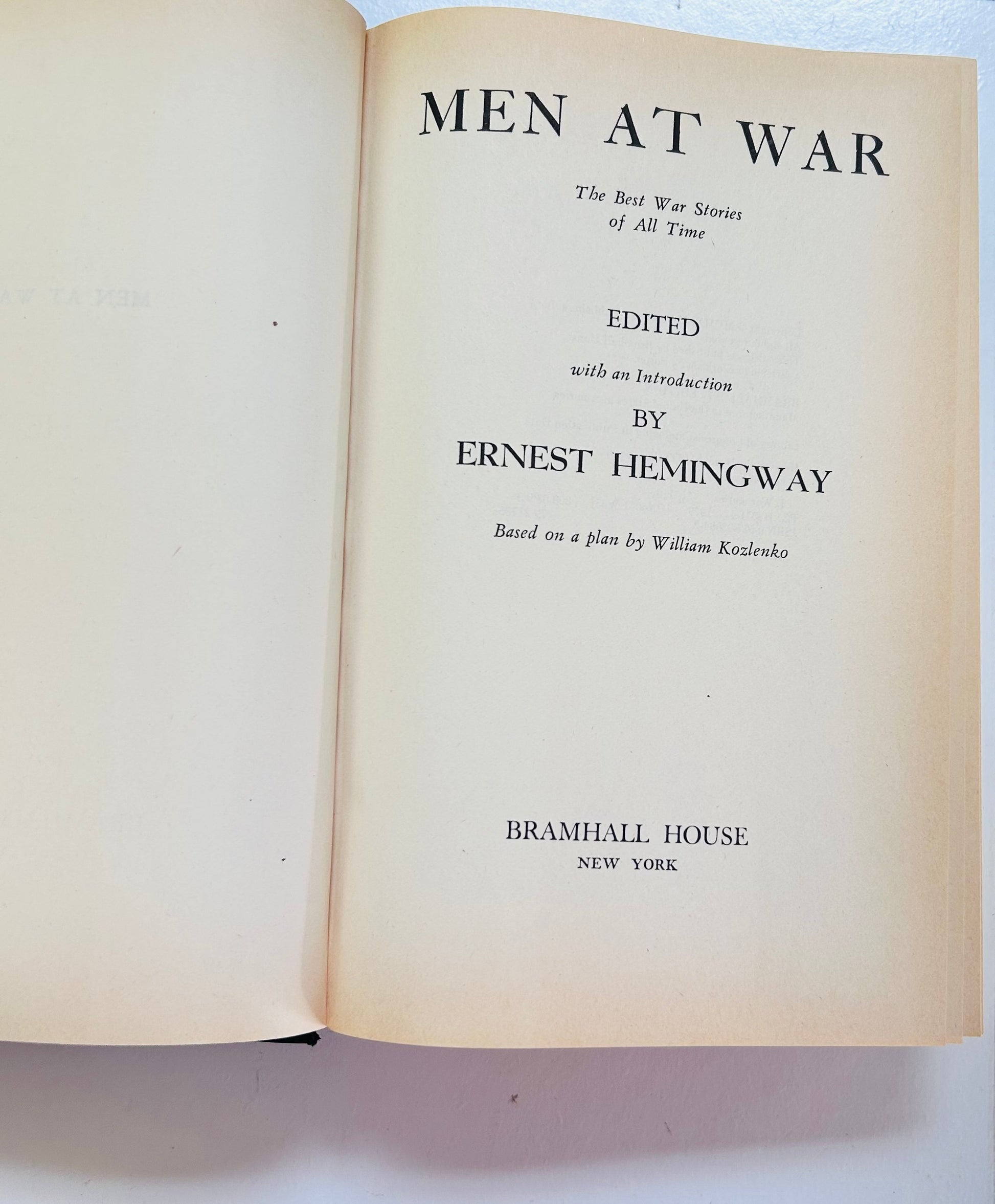 This wonderful edition offers a captivating perspective on the history of war through a series of gripping stories. The book went quickly out of print during the war years as it was a great favorite of many G.I's. Stories included are by such luminaries as Hemingway, Crane, Lawrence, Churchill, Faulkner, Kipling, Forester and others. First published by Crown Publishers, New York, 1942 (with black dust jacket).