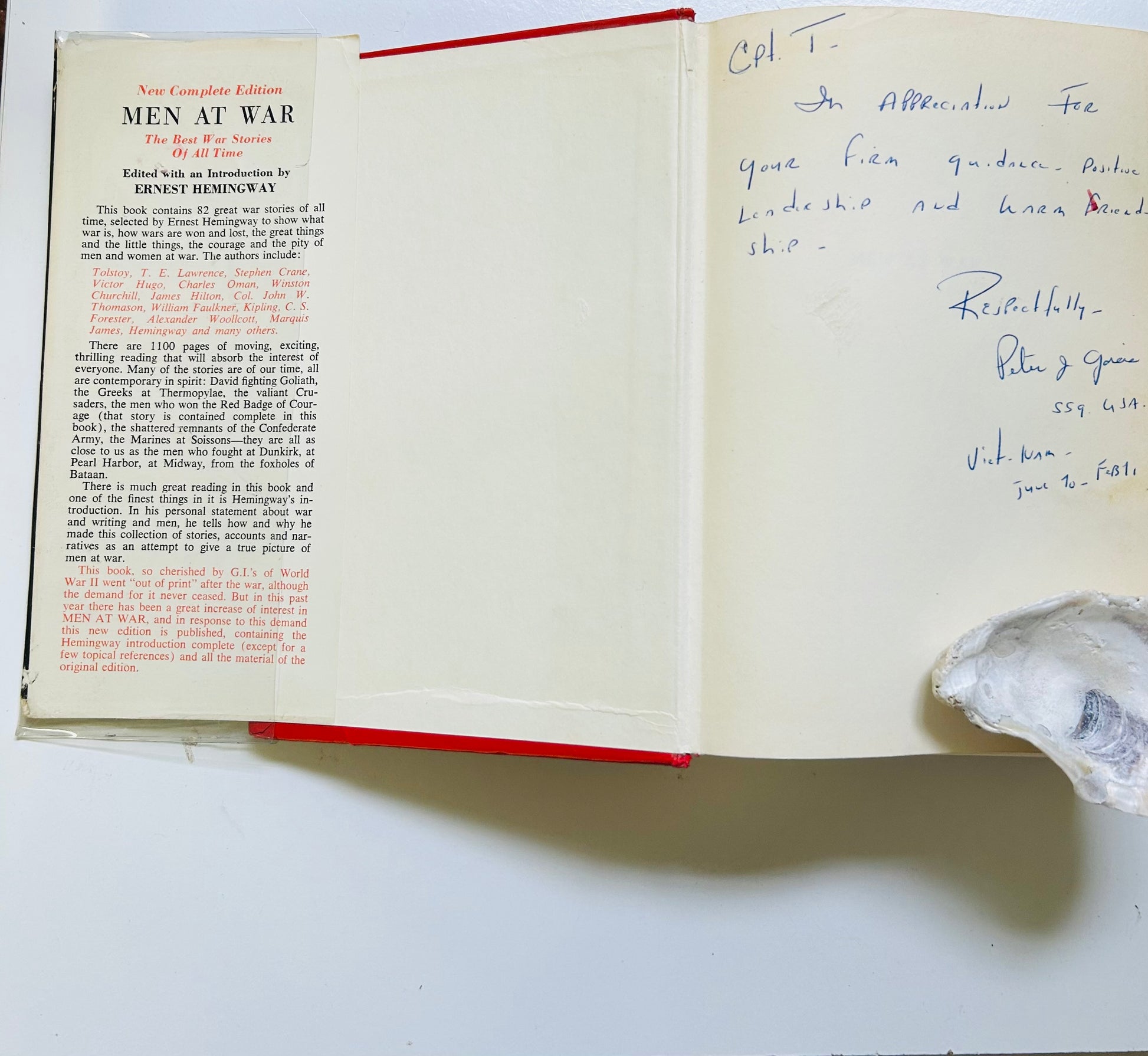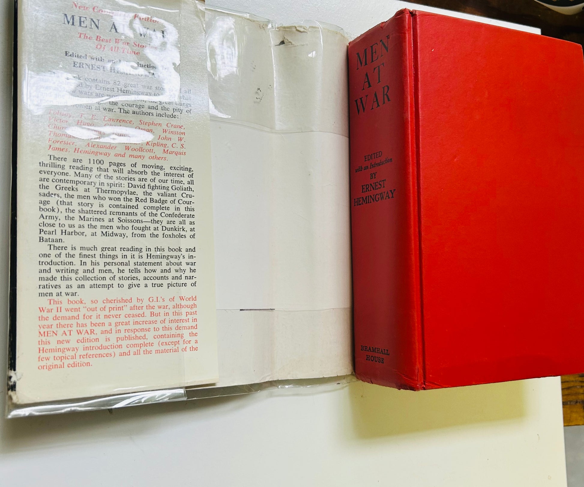 This compelling anthology, curated by Ernest Hemingway himself, gathers classic war stories that explore heroism, tragedy, and the human experience in conflict. The striking red binding distinguishes it from the more common black cloth editions. The original dust jacket is in very good condition, enhancing its appeal. Most notably, it bears a personal inscription from a military individual, offering a rare tangible connection to readers of the past. A must-have for Hemingway fans, collectors of war literature, or anyone drawn to the personal stories behind the printed page.
