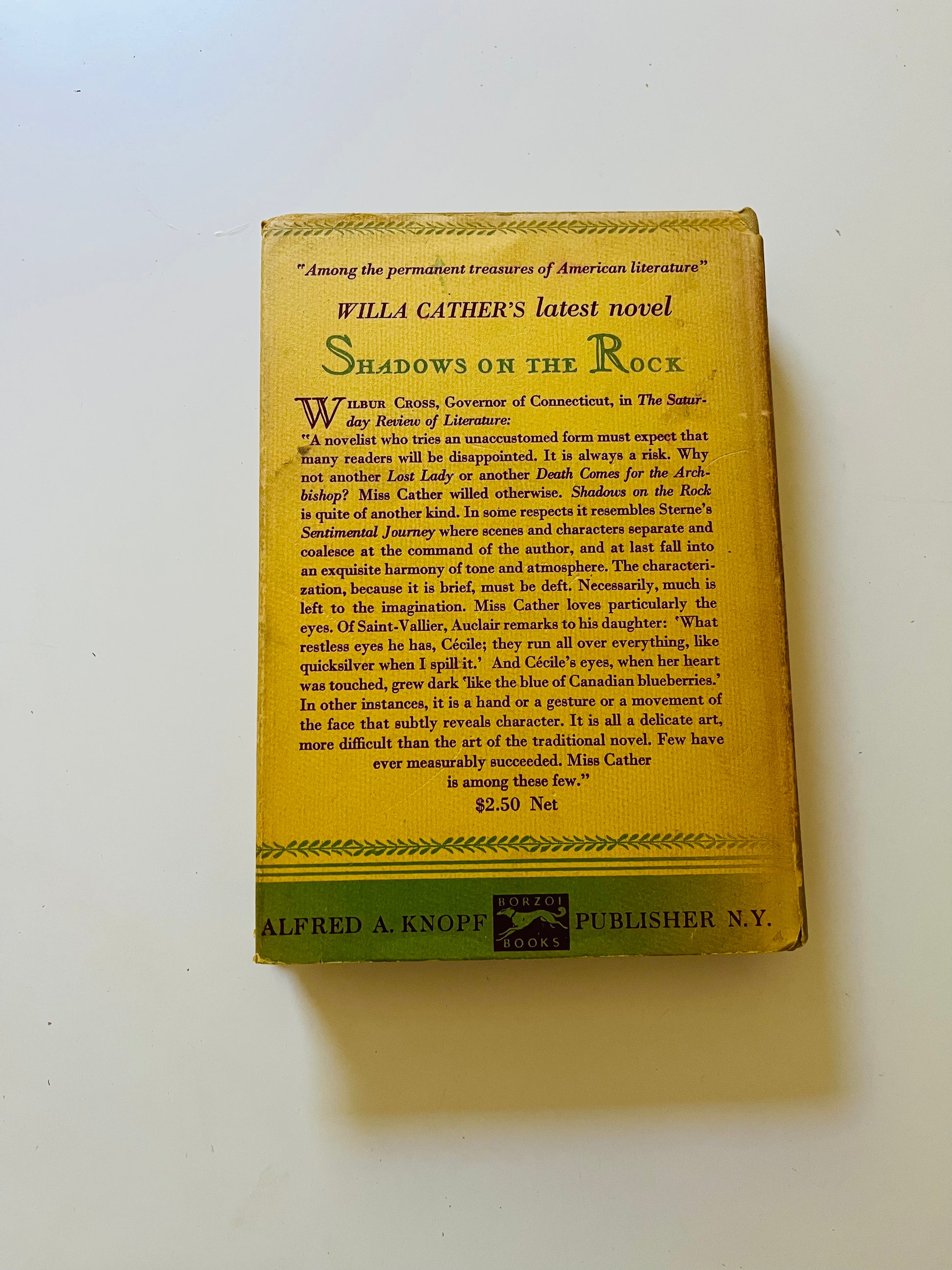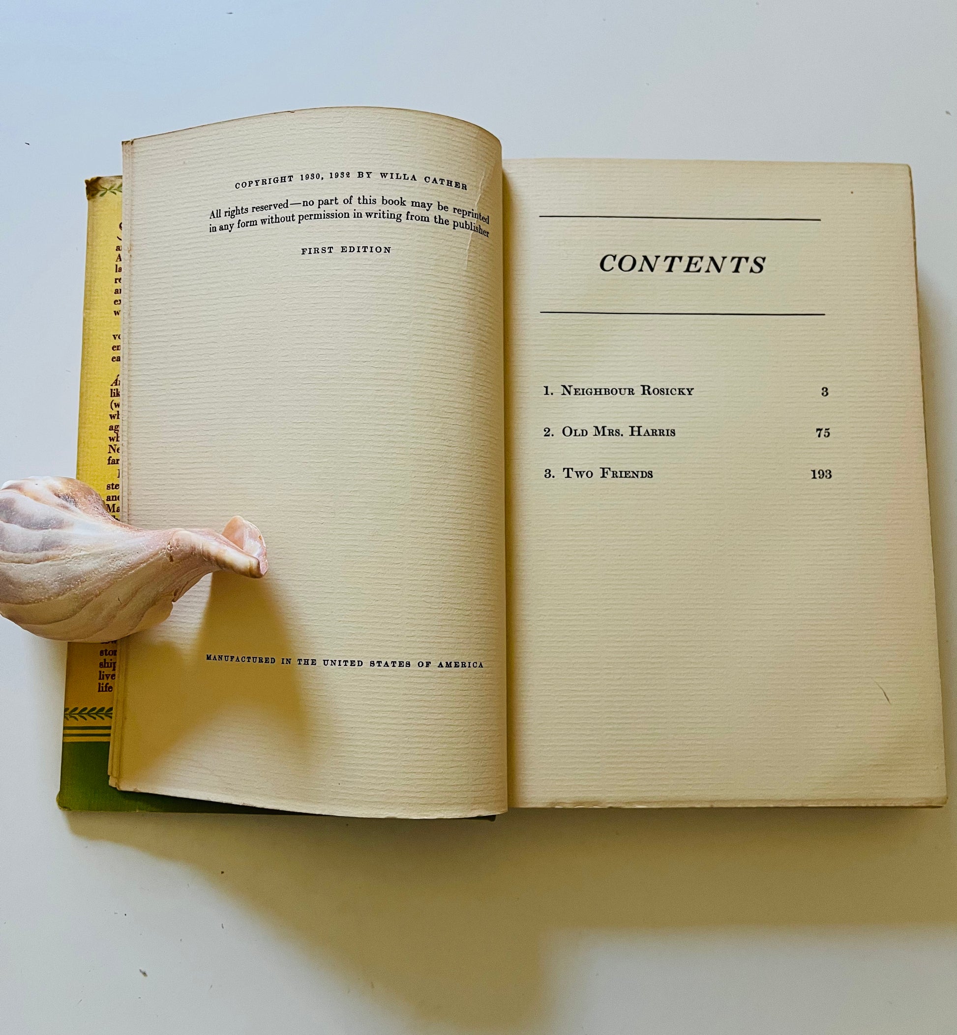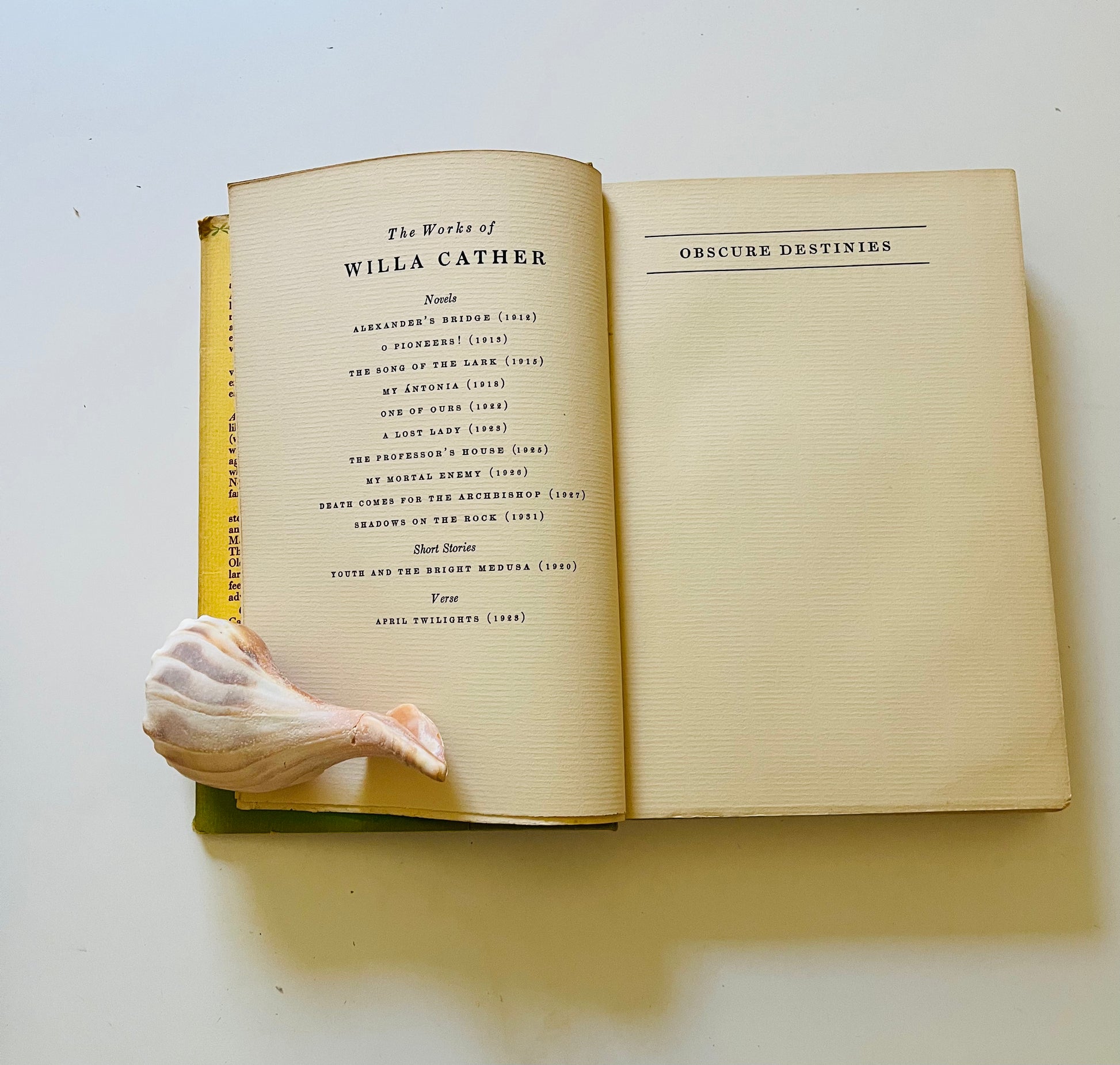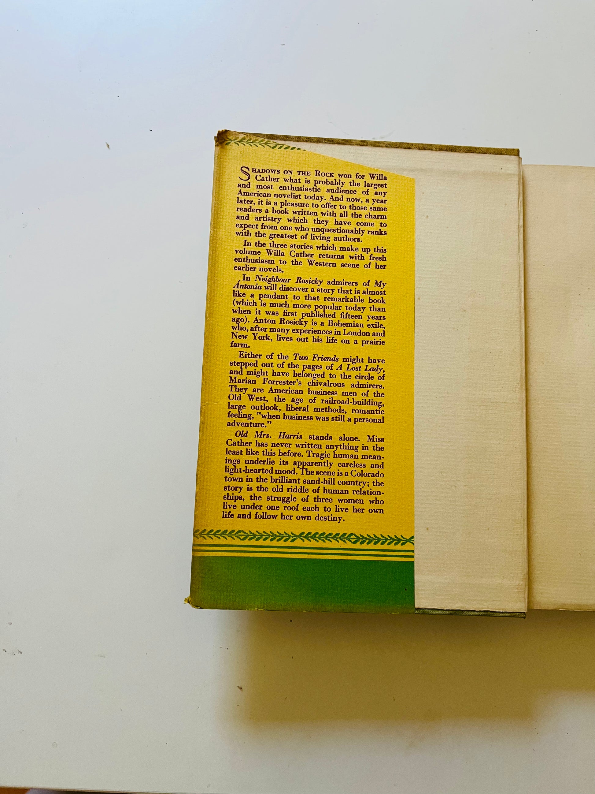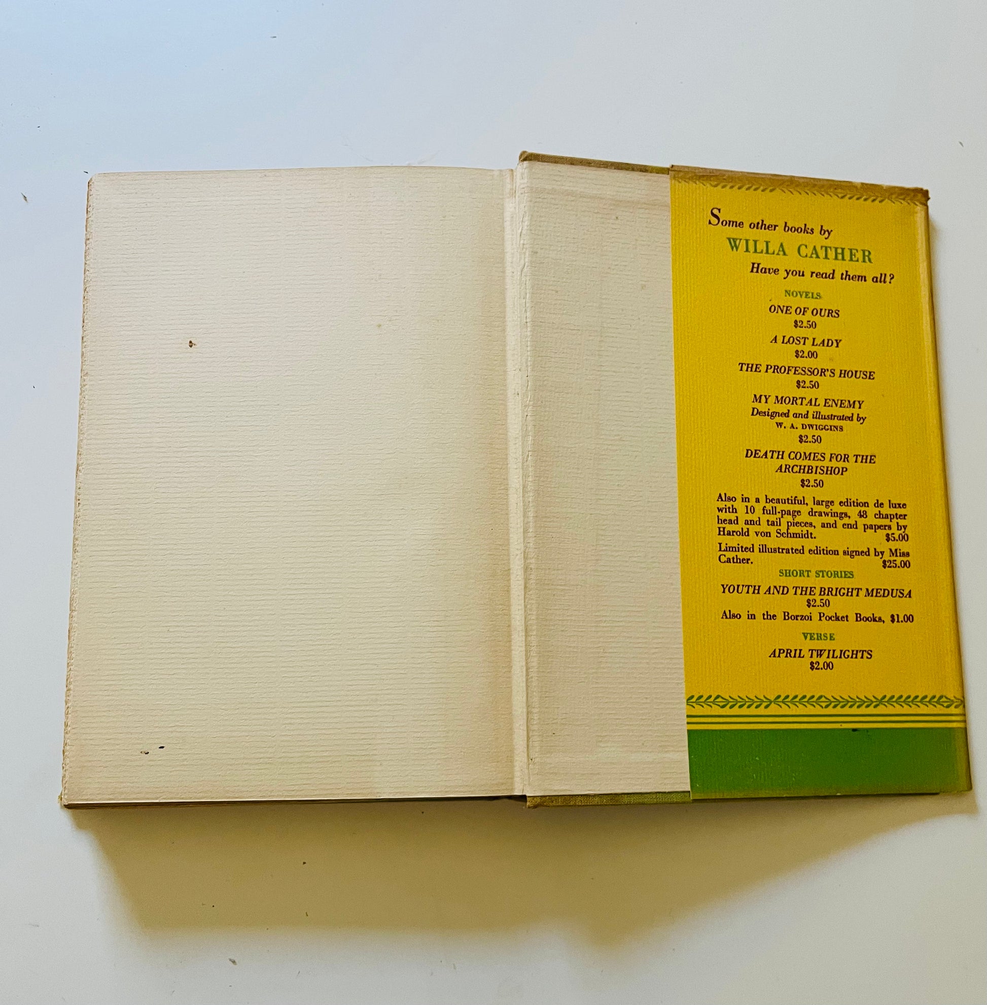 Willa Cather. First edition (stated). Dust Jacket: Very Good+ The publisher printed the dust jackets with a $2.50 price, but later decided to sell the book for $2. So all first editions copies are price clipped, as is this. Has some fading on the spine otherwise looks very good, still has vibrant yellow color. Hardcover: Very Good+ New York: Alfred A. Knopf, 1932. No marks or writing in the book, 229 pp.