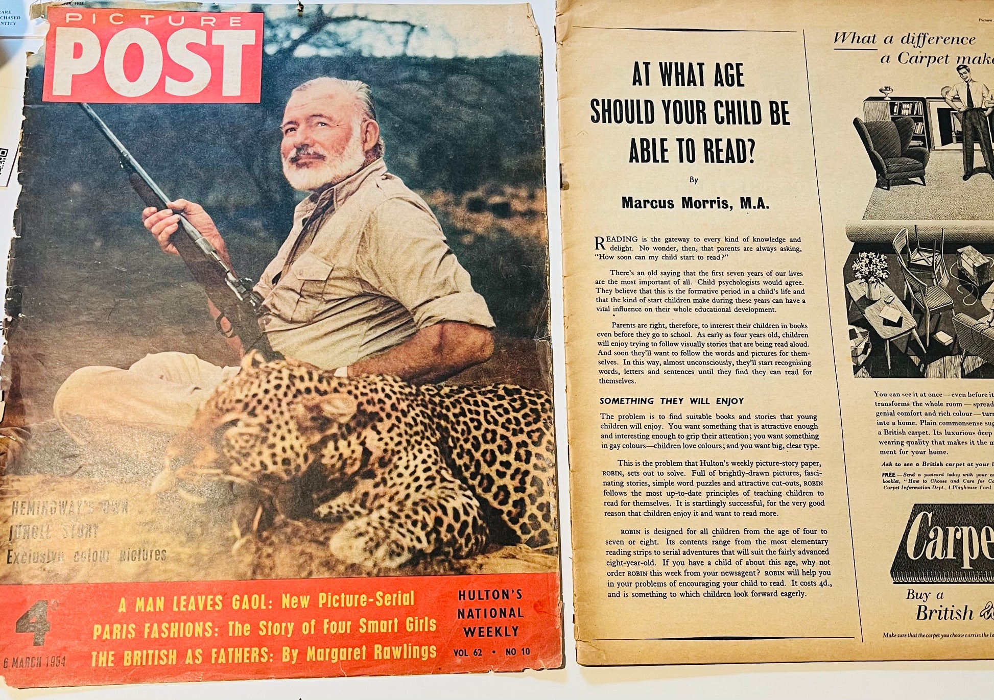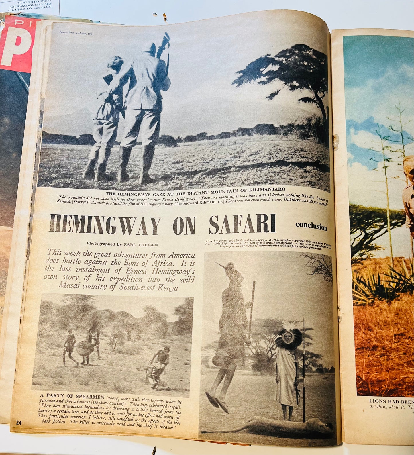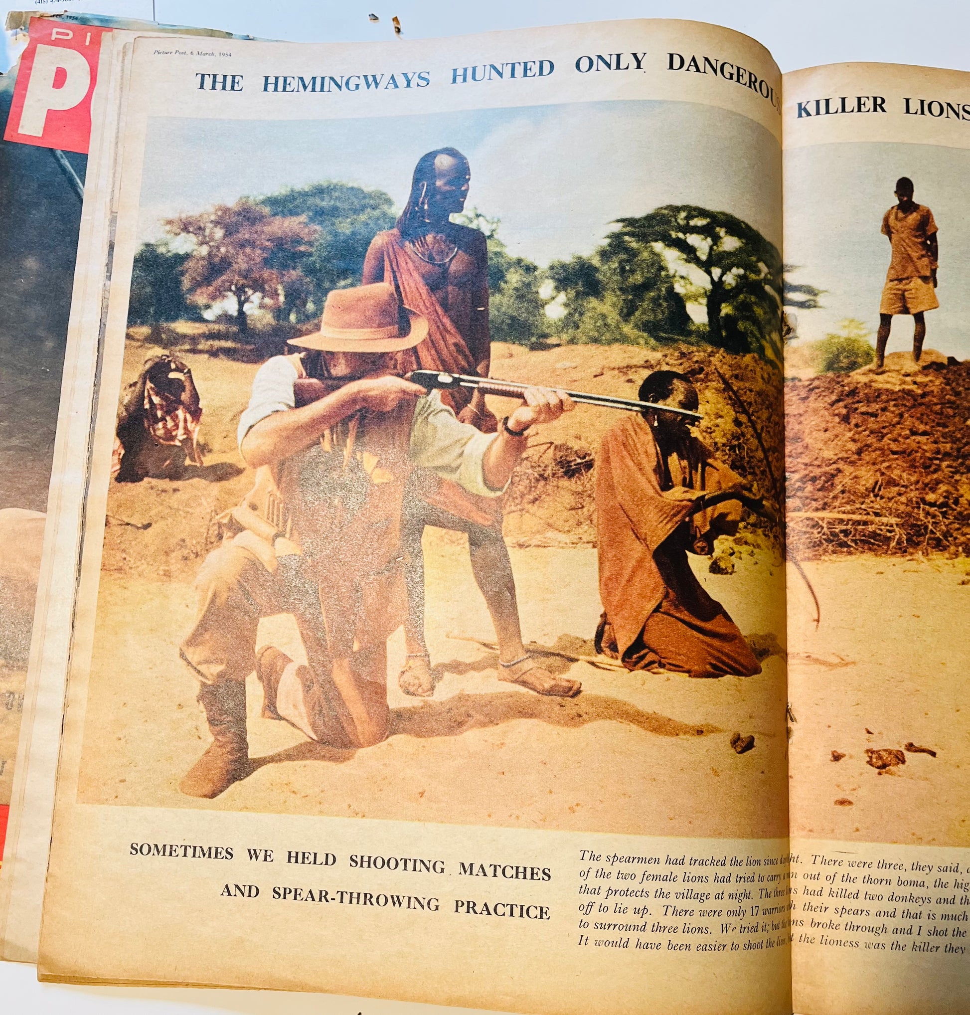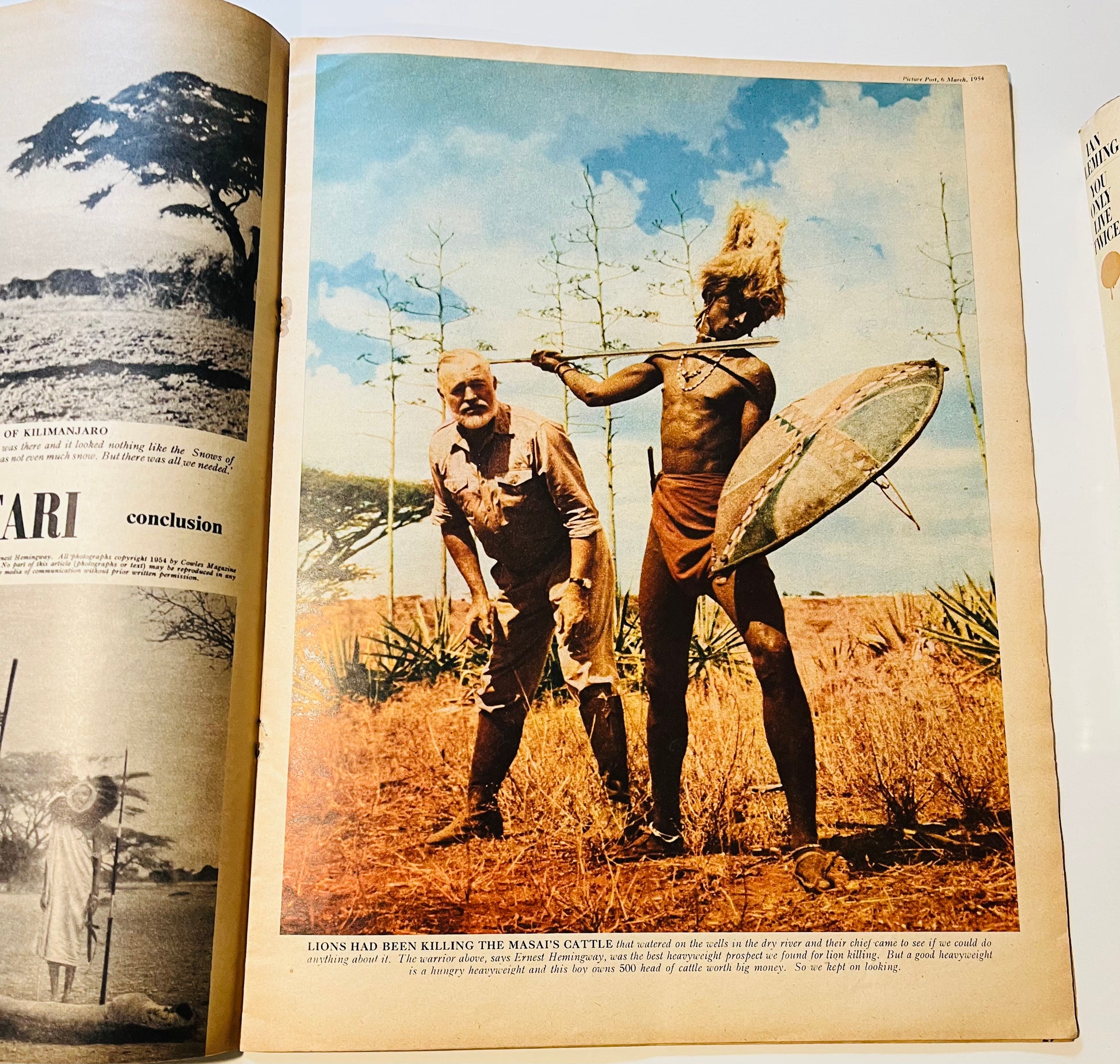 A 1954 issue of POST. Contains a wonderful article on Ernest Hemingway with colored photographs. The cover is separated as well as the last page.