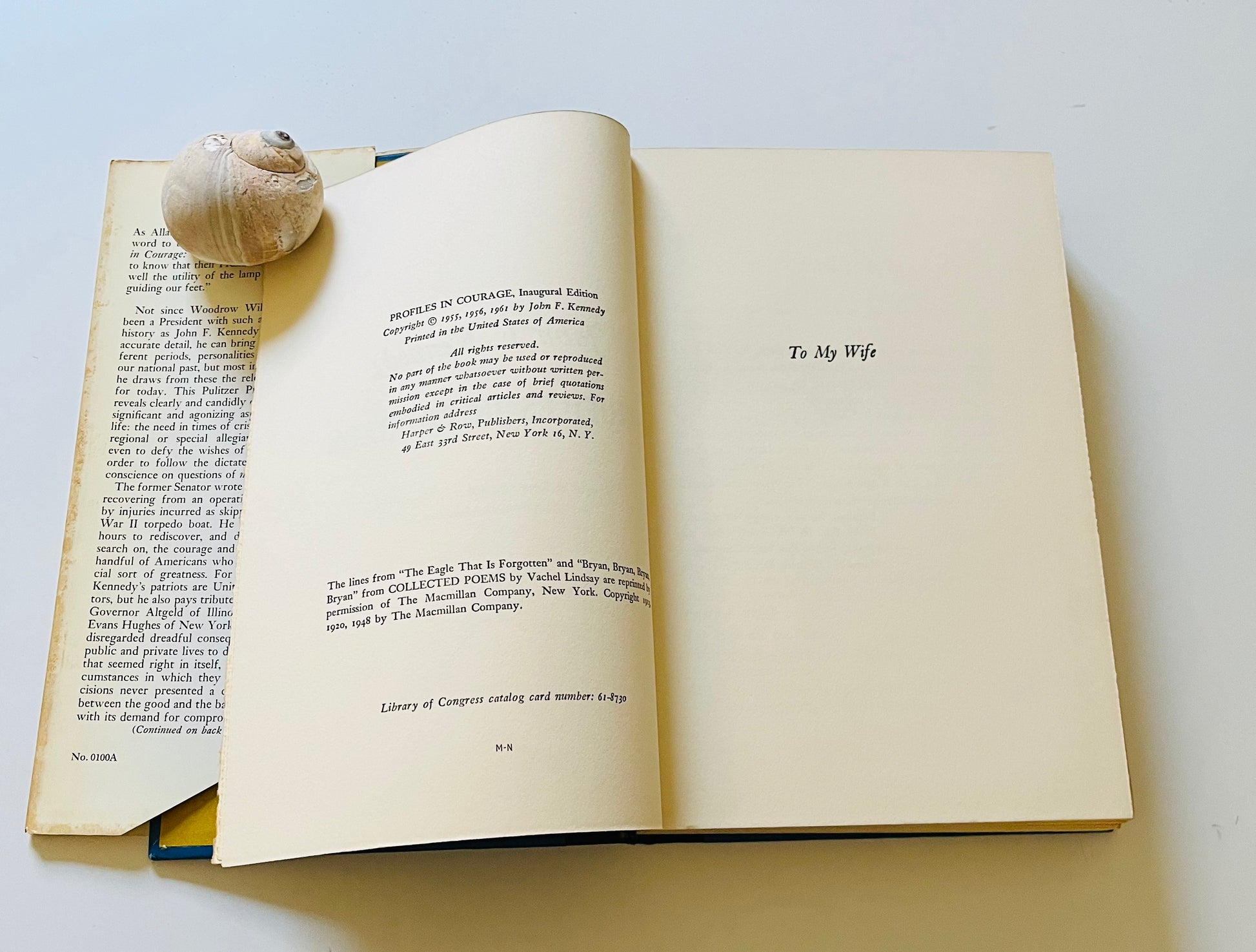 John Kennedy. Inaugural edition. New York: Harper Row Publishers, 1961. Dust jacket is clipped on bottom but not price ($3.95) clipped, 266 pp. Won Pulitzer Prize