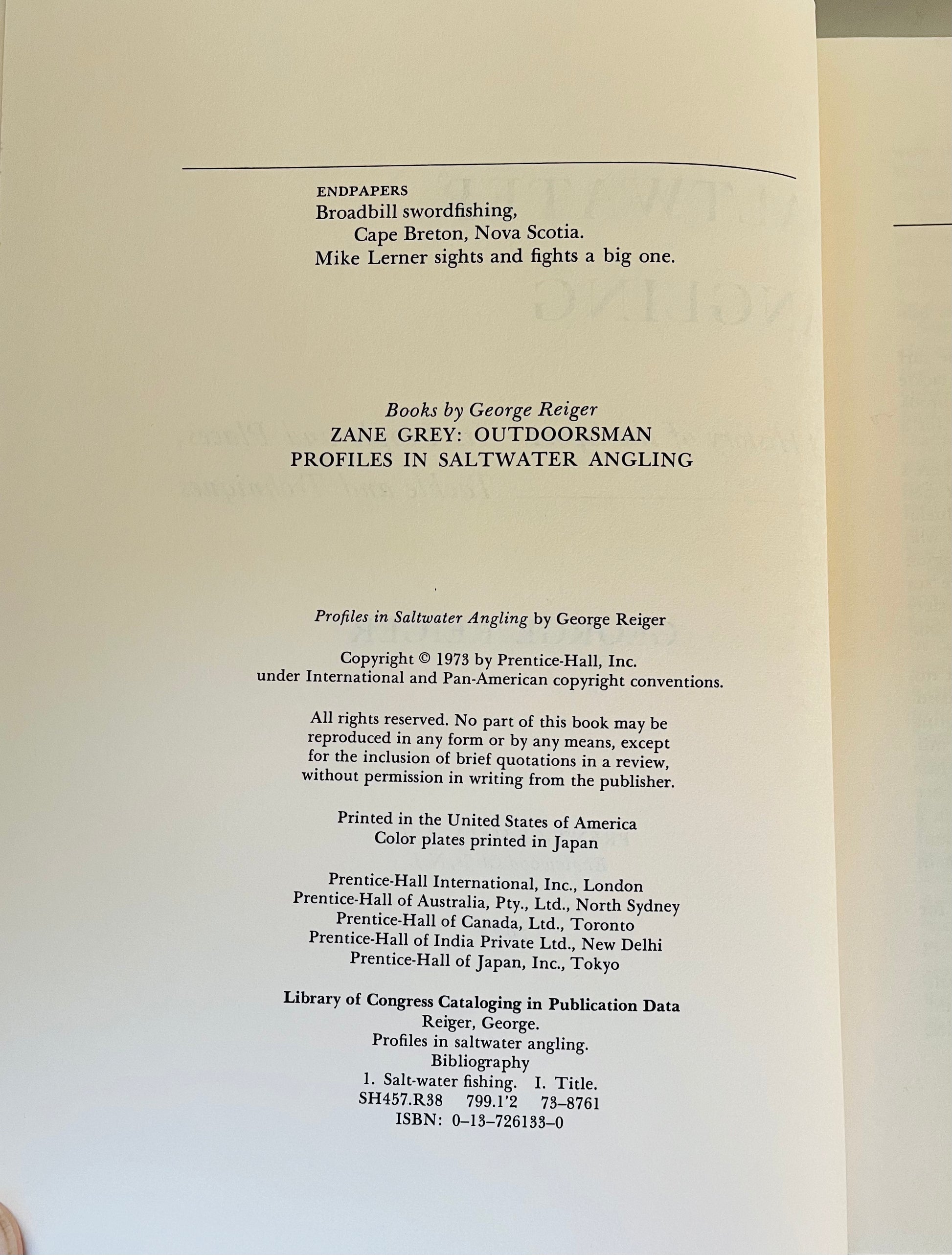 Features author Ernest Hemingway on the rear cover along with other great fishermen.