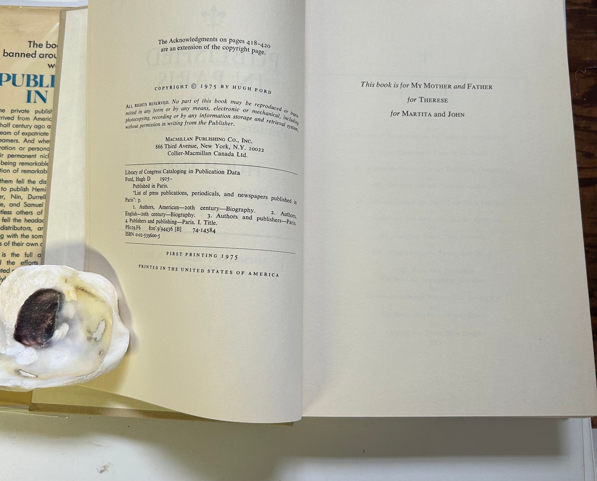 First published in 1975 by Macmillan, this volume explores the evolution of independent publishing in Paris, with particular focus on the presses that shaped literary modernism, including Shakespeare and Company, Contact Editions, and Obelisk Press. Ford draws on personal anecdotes, archival accounts, and cultural analysis to reveal how Paris became the unlikely publishing capital for many controversial or avant-garde works banned in Britain and America.