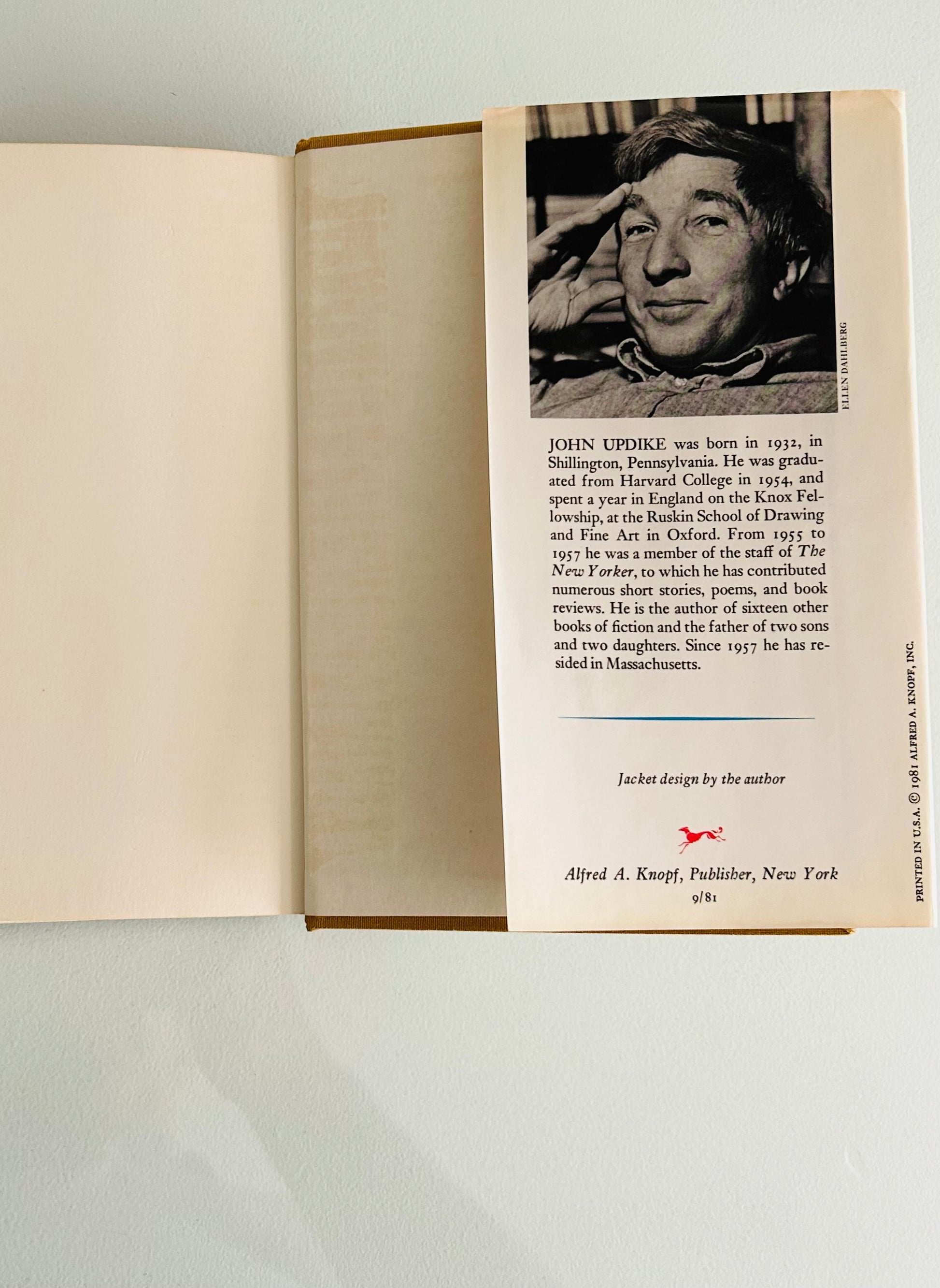 This copy is housed in its original unclipped dust jacket, with both jacket and hardcover in Very Good+ condition. The book is clean throughout, with no writing or markings. Notably, the dust jacket was designed by John Updike himself, adding an extra layer of interest for collectors.