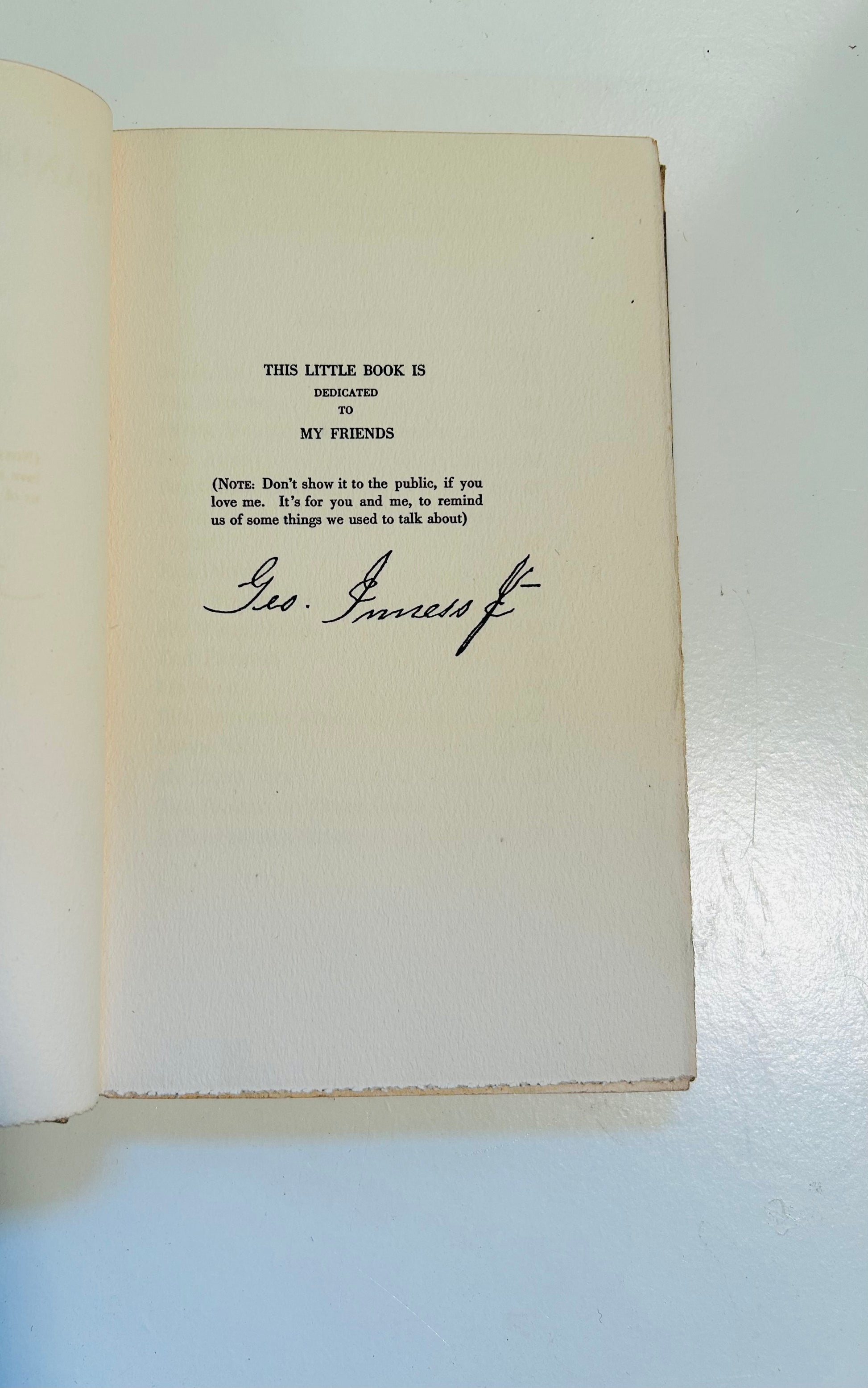 Inscription: This is a presentation copy, inscribed by George Inness, Jr. to Julia Thomson, dated February 29th, 1923 — a leap day inscription, which is quite rare and adds charm. Signed copies are scarce and desirable.