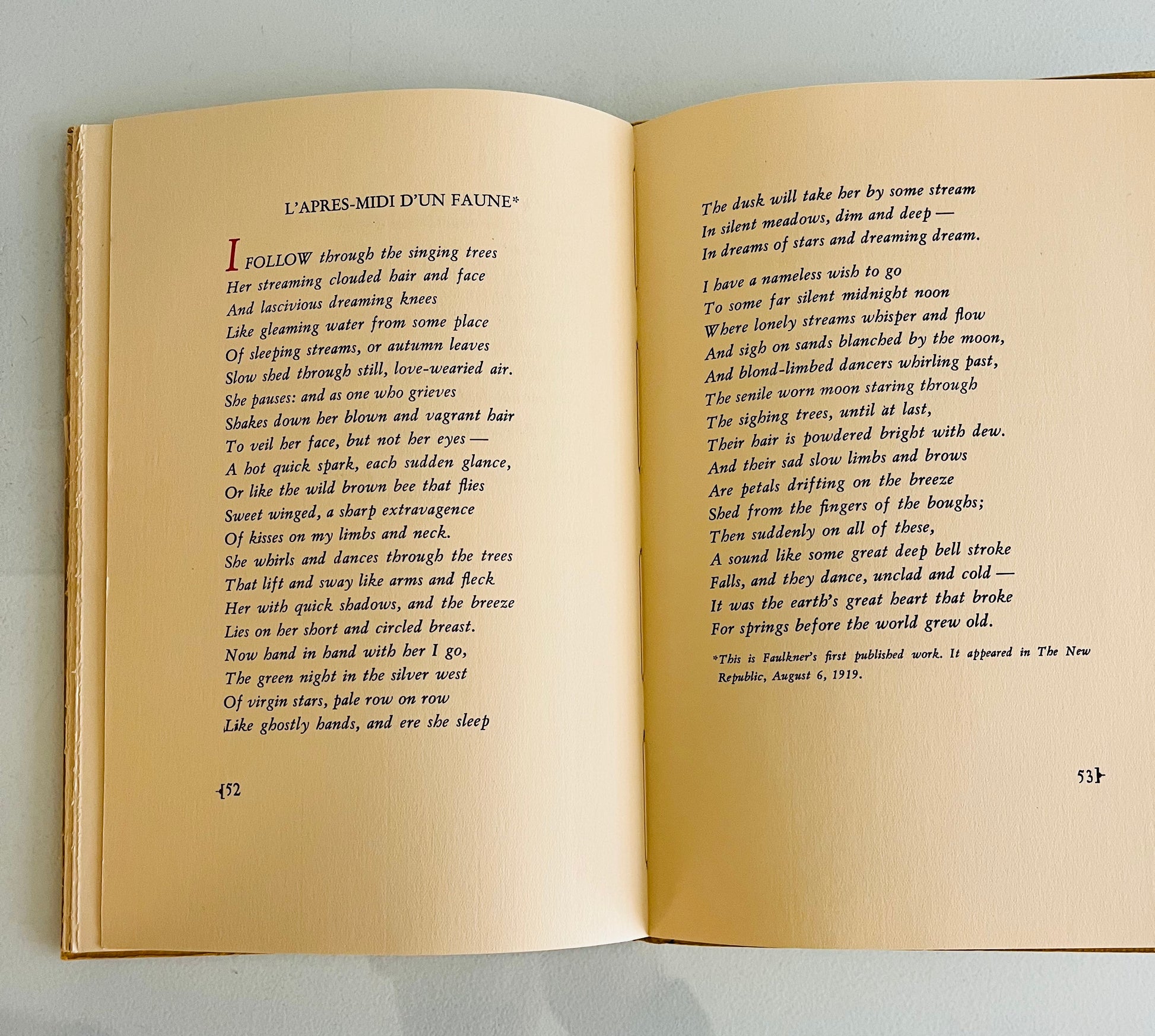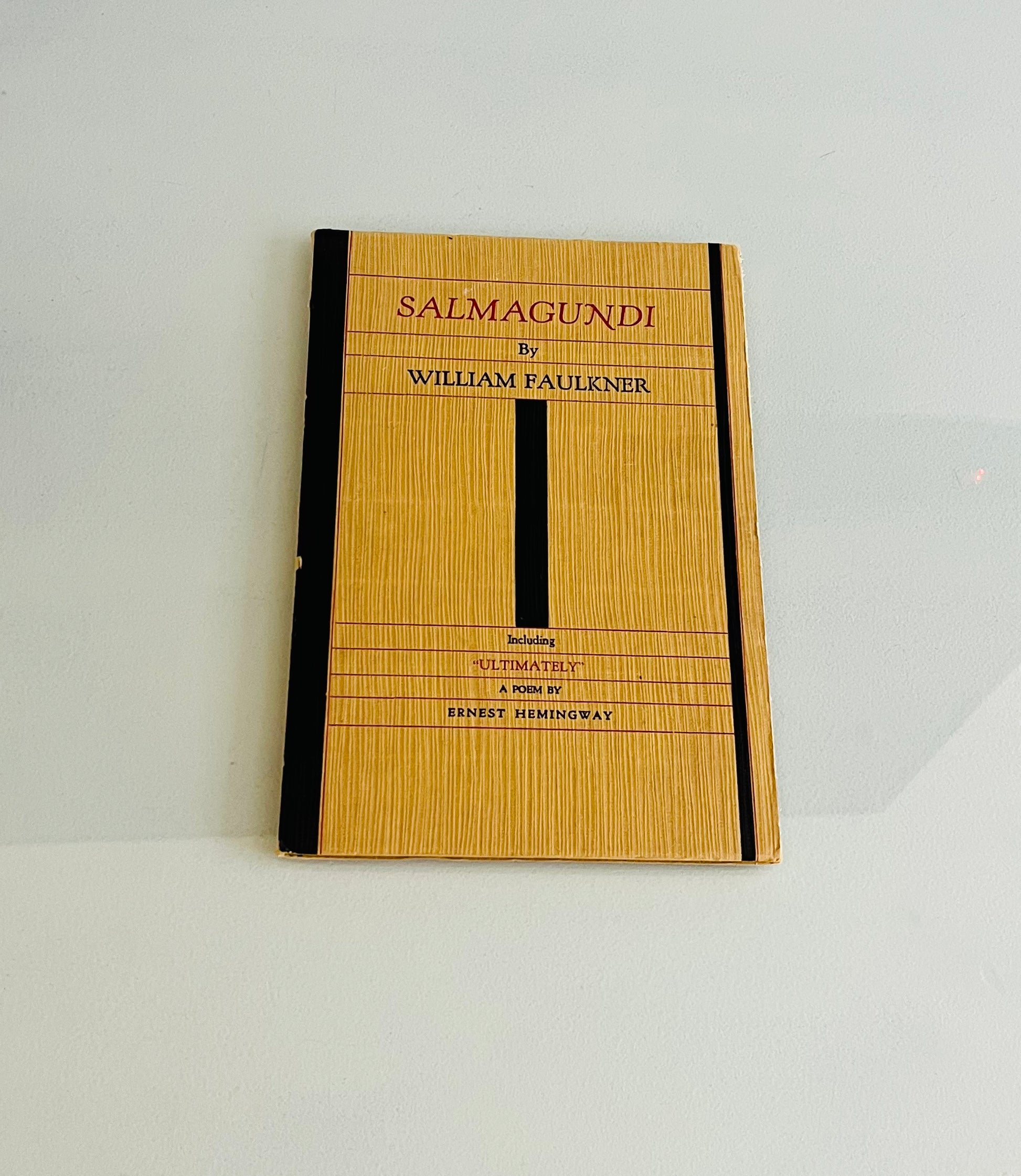 A limited edition that includes a youthful collection of poems and articles by William Faulkner that also includes a poem by his contemporary Ernest Hemingway. In addition to Hemingway’s poem, Salmagundi contains five poems and three prose pieces by Faulkner.