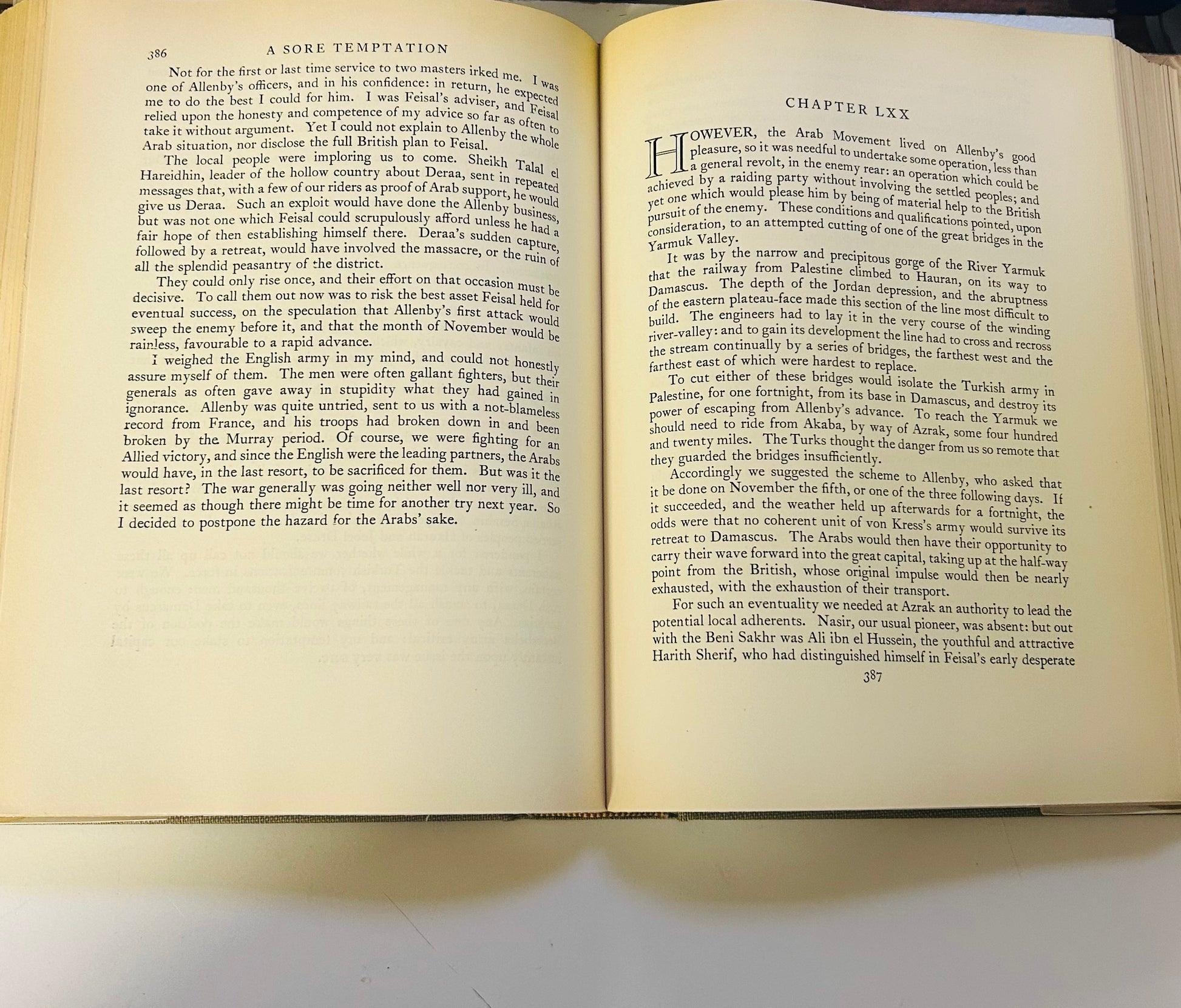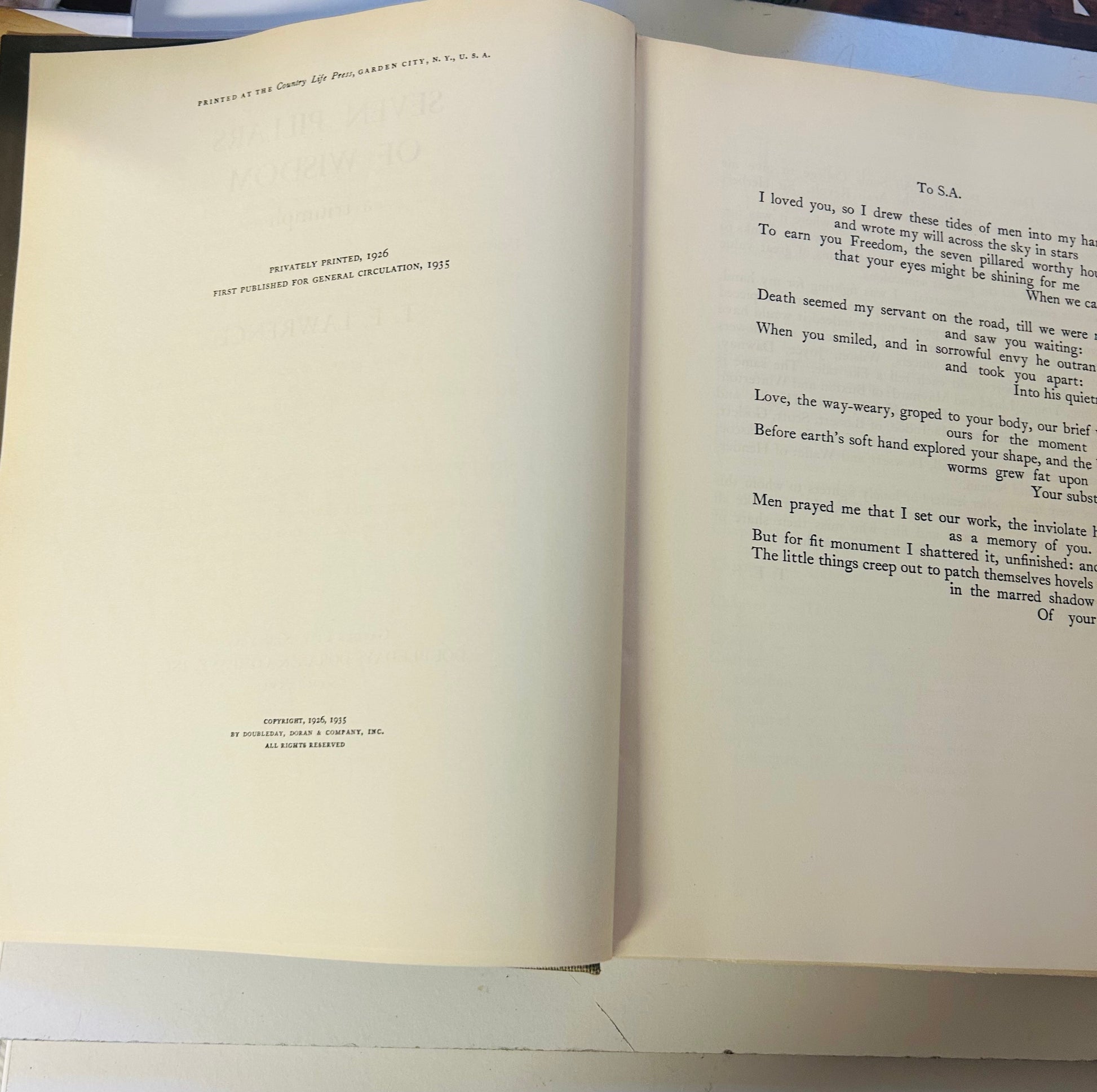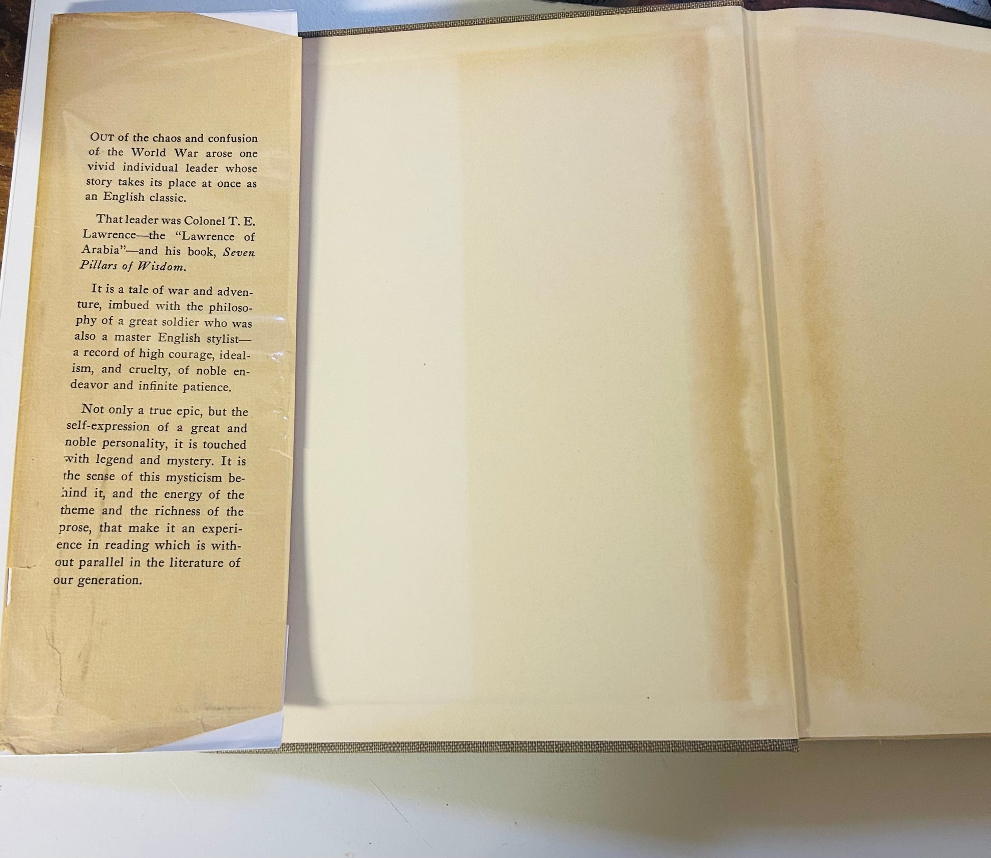 A rare opportunity for collectors: this is a First American Trade Edition (1936) — Second Printing — of Seven Pillars of Wisdom by T. E. Lawrence (Lawrence of Arabia), published by Doubleday & Doran, New York.