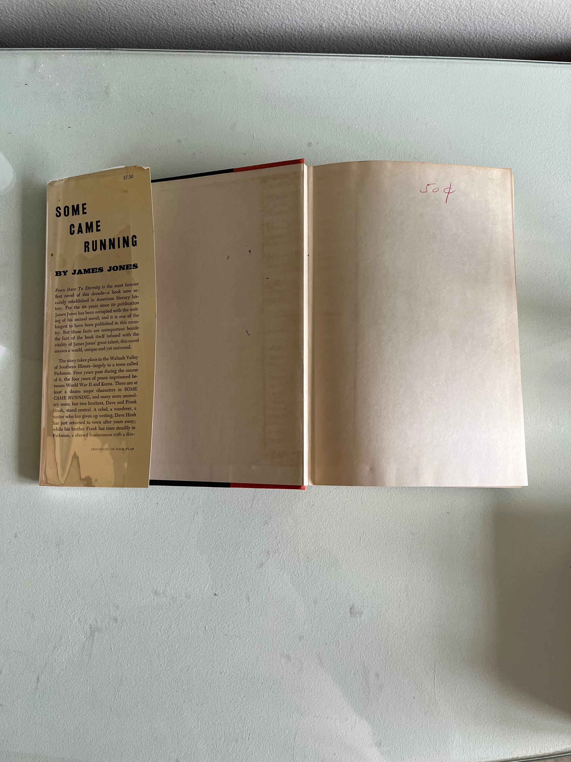 James Jones, First edition (A-10.57 H). Dust Jacket: Very Good+ An unclipped jacket ($7.50) designed by Greta Franzen. Hardcover: Near Fine. New York: Charles Scribner's Sons, 1957. Bound in red cloth and black boards, stamped in red. Solid copy with 50 cent mark on flyleaf, otherwise, no writing or markings in the book, 1266 pp.
