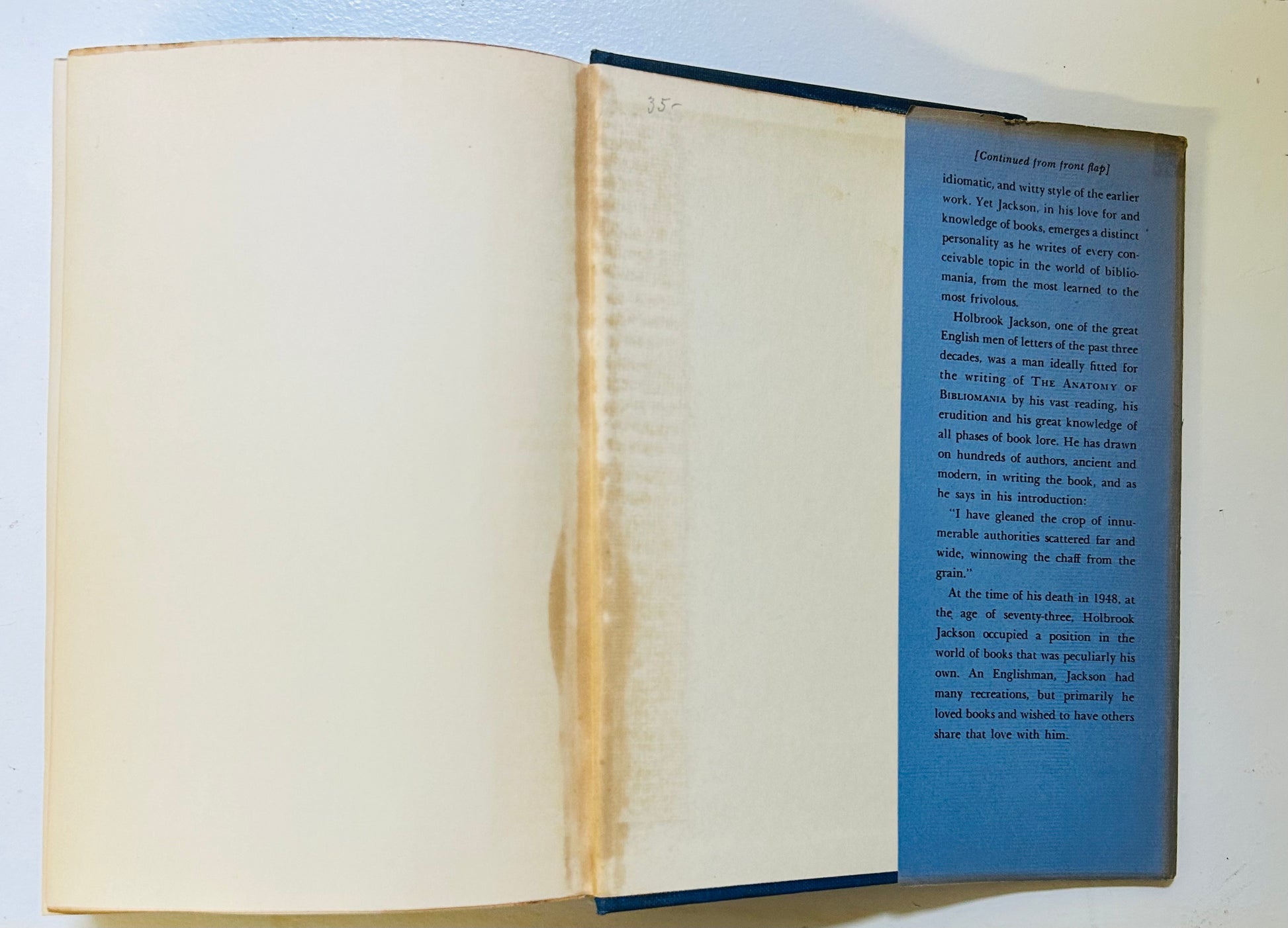 Solid re-issue of Jackson's classic on the obsessive love and desire for books. First published in a two volume set, printed at The Curwen Press for The Soncino Press, London, 1930 and 1931.
