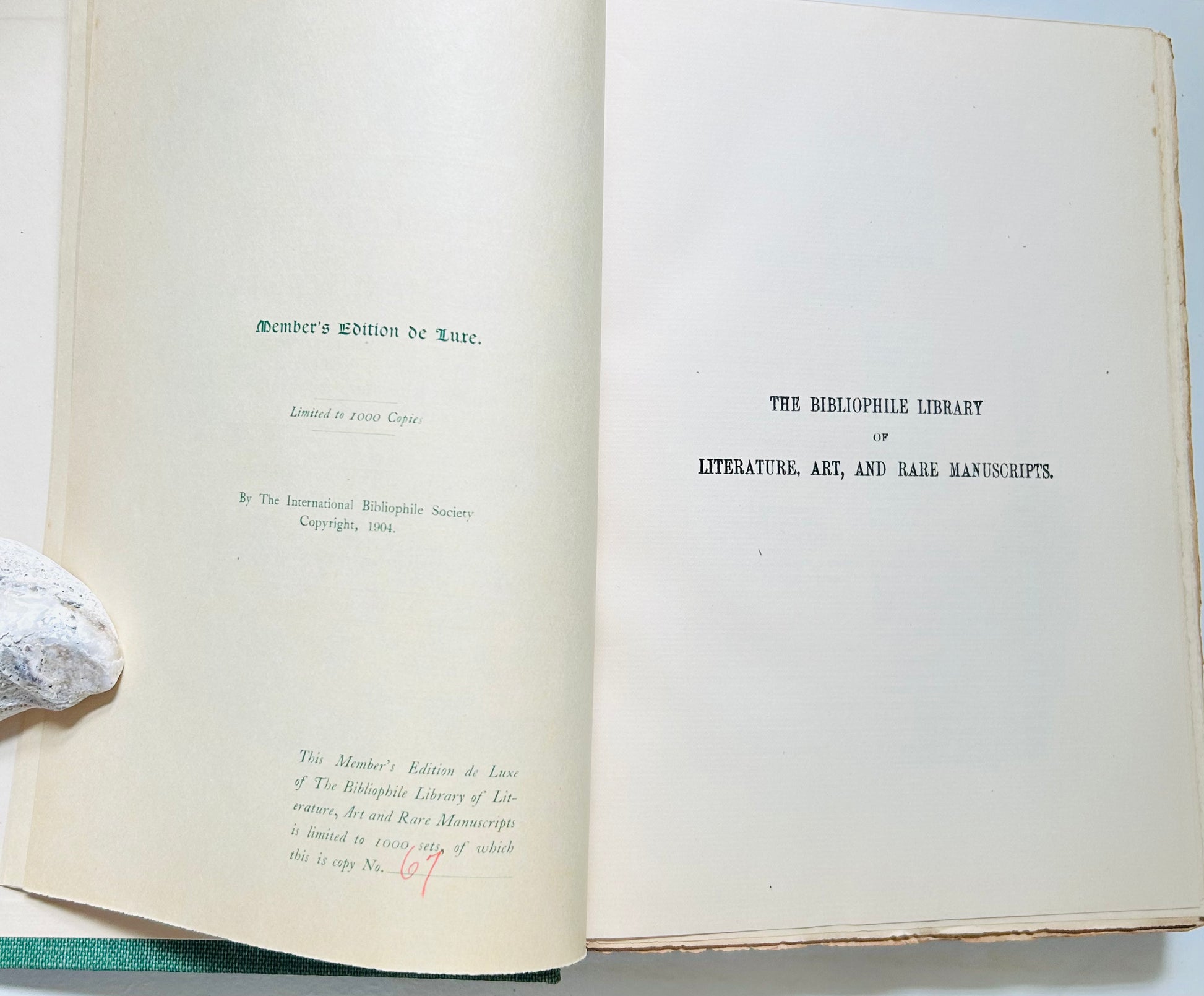 Nathan Haskell Dole et al. First edition. New York and London: International Bibliophile Society, 1904. No dust jacket. Hardcover in Very Good condition with gold gilt edges. Volume 20. Introductions by Andrew Lang and Donald G. Mitchell. Members Edition de Lux. Limited to only 1,000 copies of which this is #67.