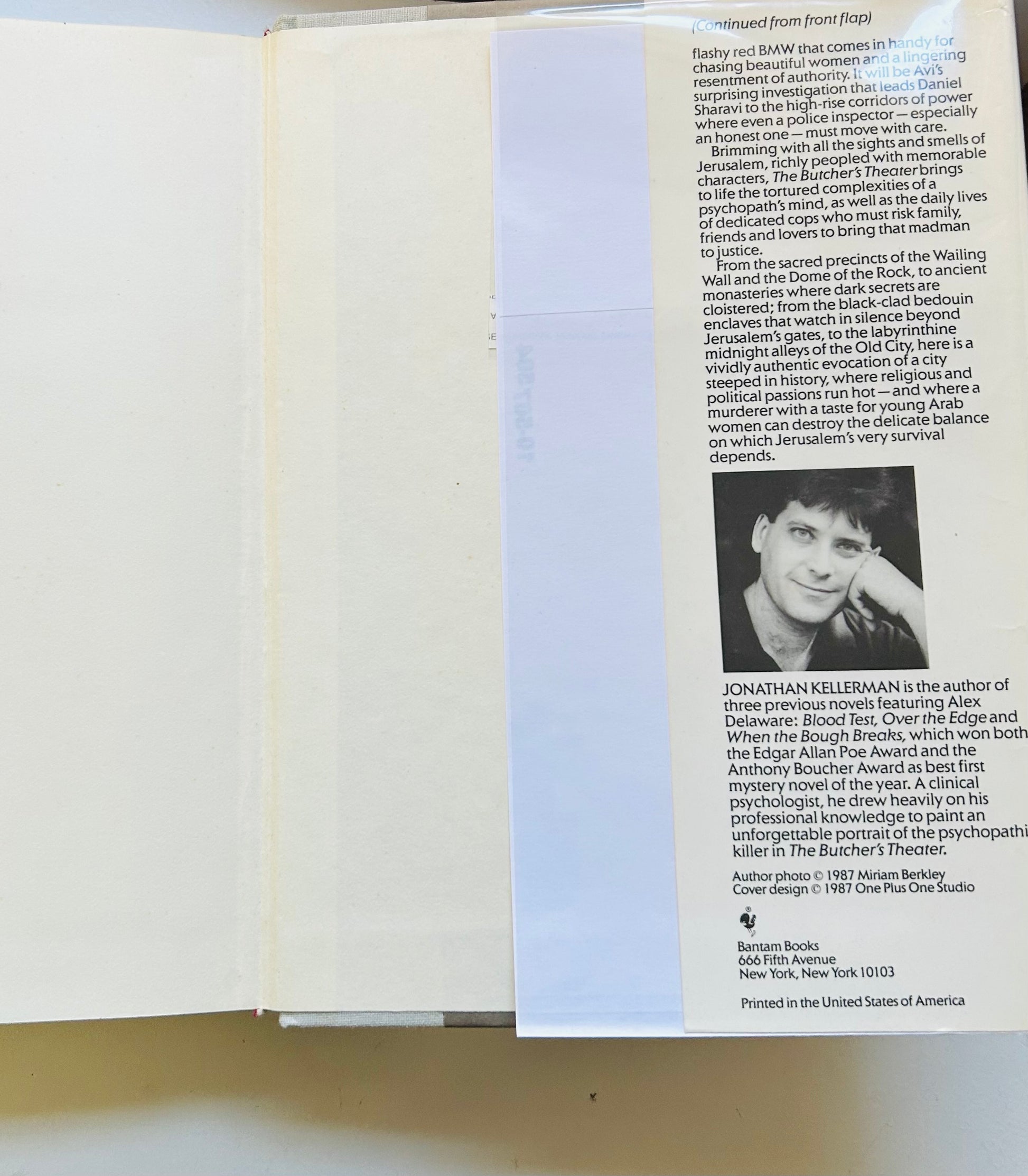 A collectible signed first edition, first printing of Jonathan Kellerman’s powerful psychological thriller The Butcher’s Theater. Published in 1988 by Bantam Books, this is one of Kellerman’s early breakout novels and a desirable title for crime-fiction collectors.