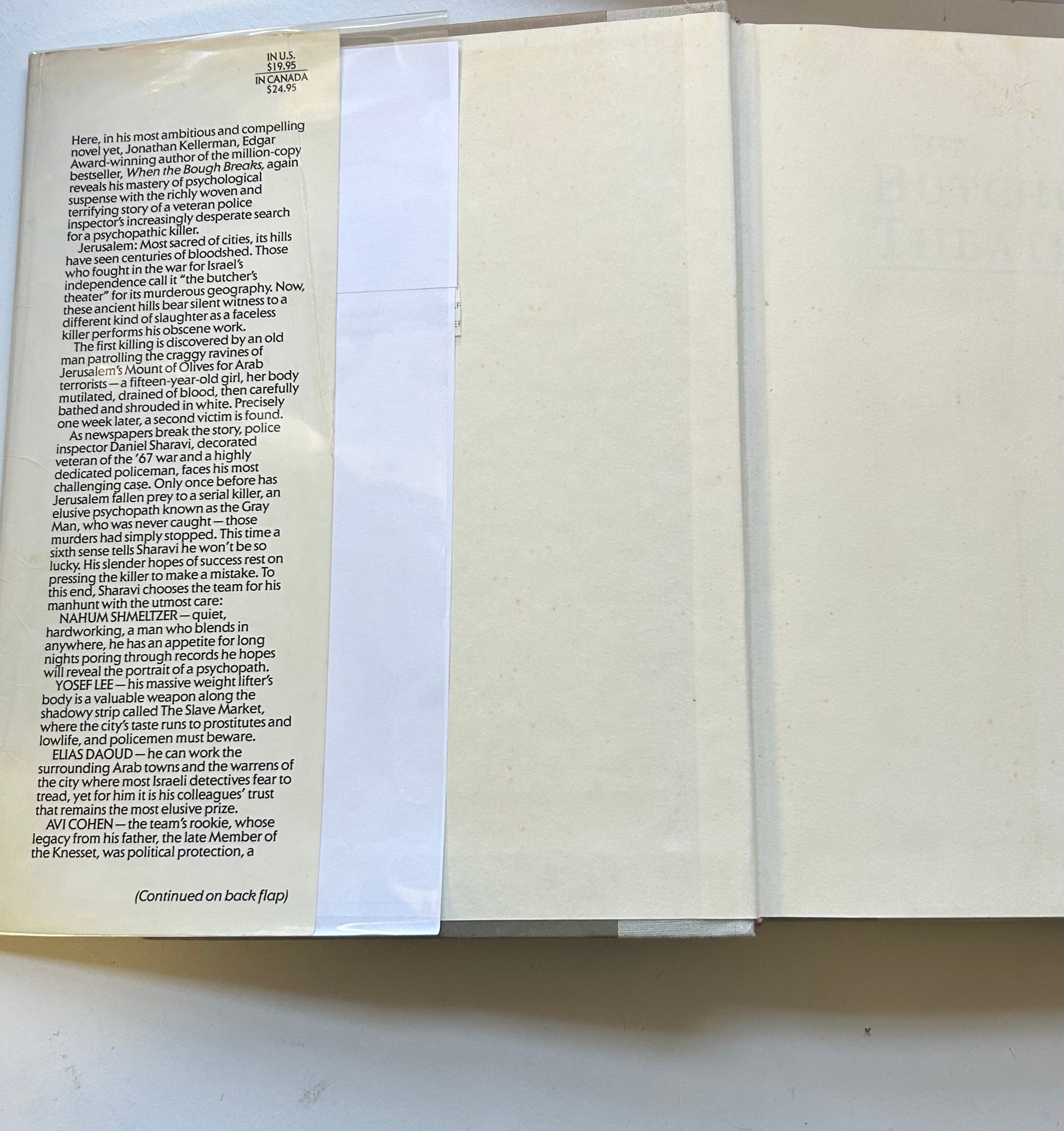 Jonathan Kellerman. Signed copy. First edition, first printing. New York: Bantam Book, 1988. Both unclipped dust jacket (in a mylar wrapper) and hardcover are in Near Fine condition. Other than author’s signature, no writing or markings found in the book, 627 pp.