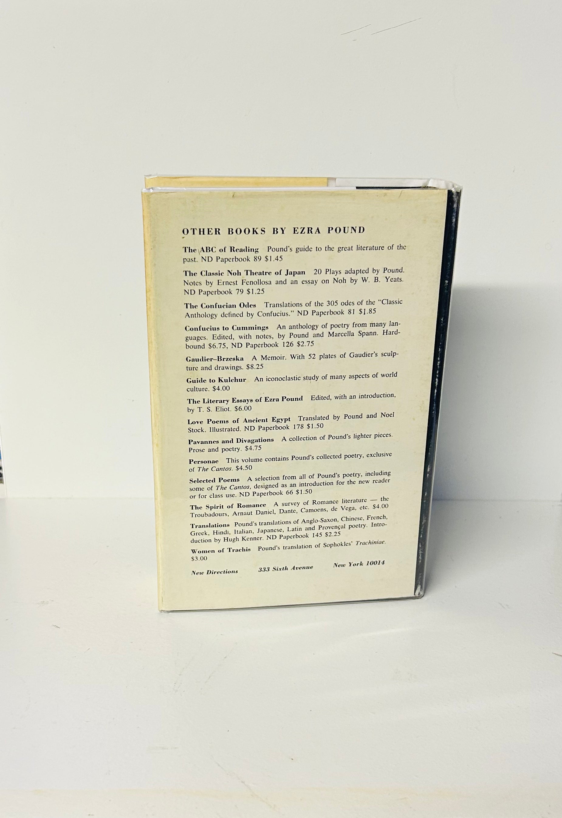 Ezra Pound. First edition, first printing (stated). New York: A New Directions Book, 1956. Both unclipped dust jacket, in a mylar protective wrapper, and hardcover are in Near Fine condition. There is some minor chipping at the top/bottom of jacket, otherwise a really solid edition!
