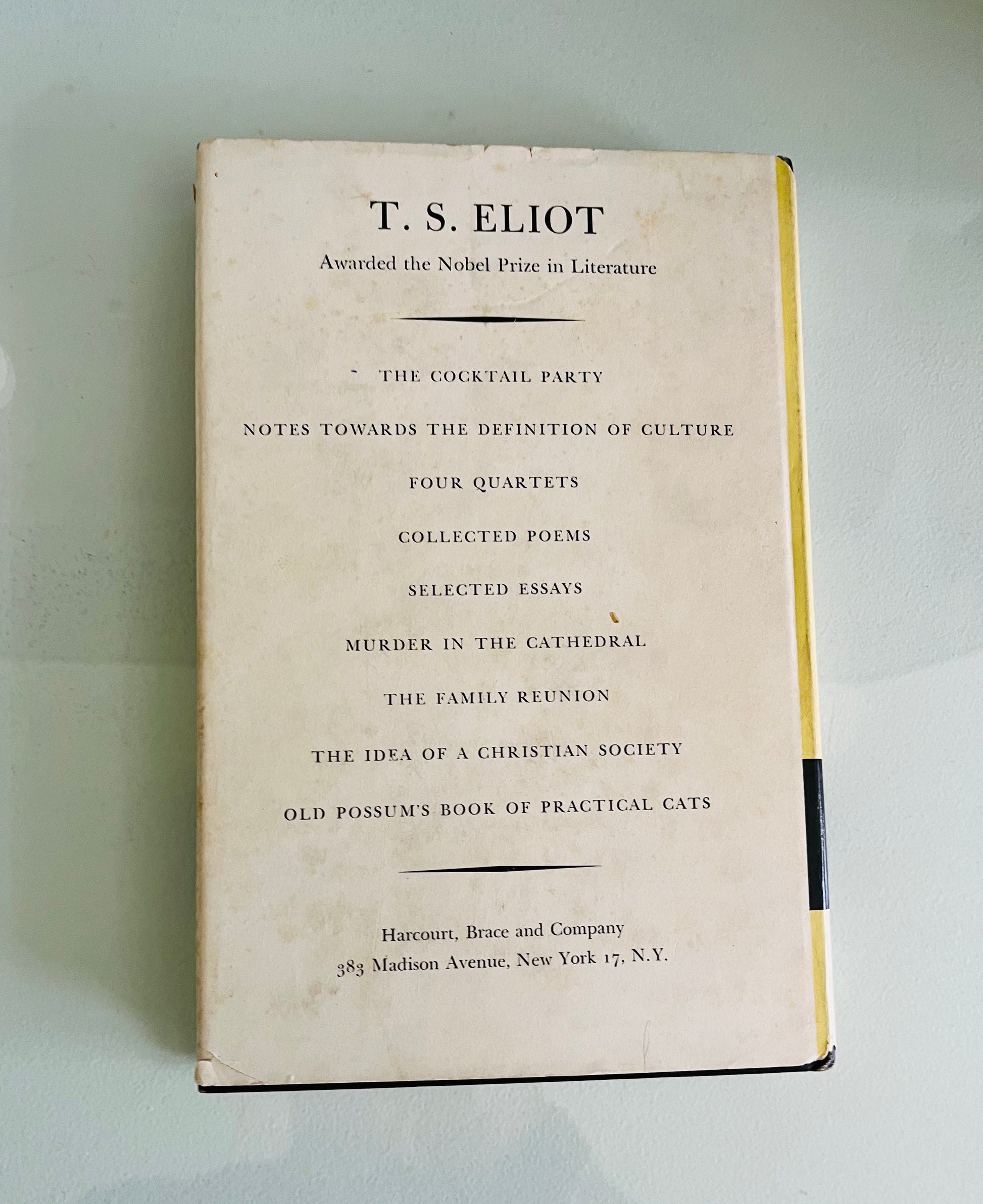 T.S. Eliot, First American edition, second printing (b.3.50). Dust Jacket: Very Good. An unclipped ($3.00) jacket. Small chip on top/bottom of the jacket spine. Some foxing on front/back of jacket but in good shape. Hardcover: Very Good. New York: Harcourt, Brace and Company, 1950.