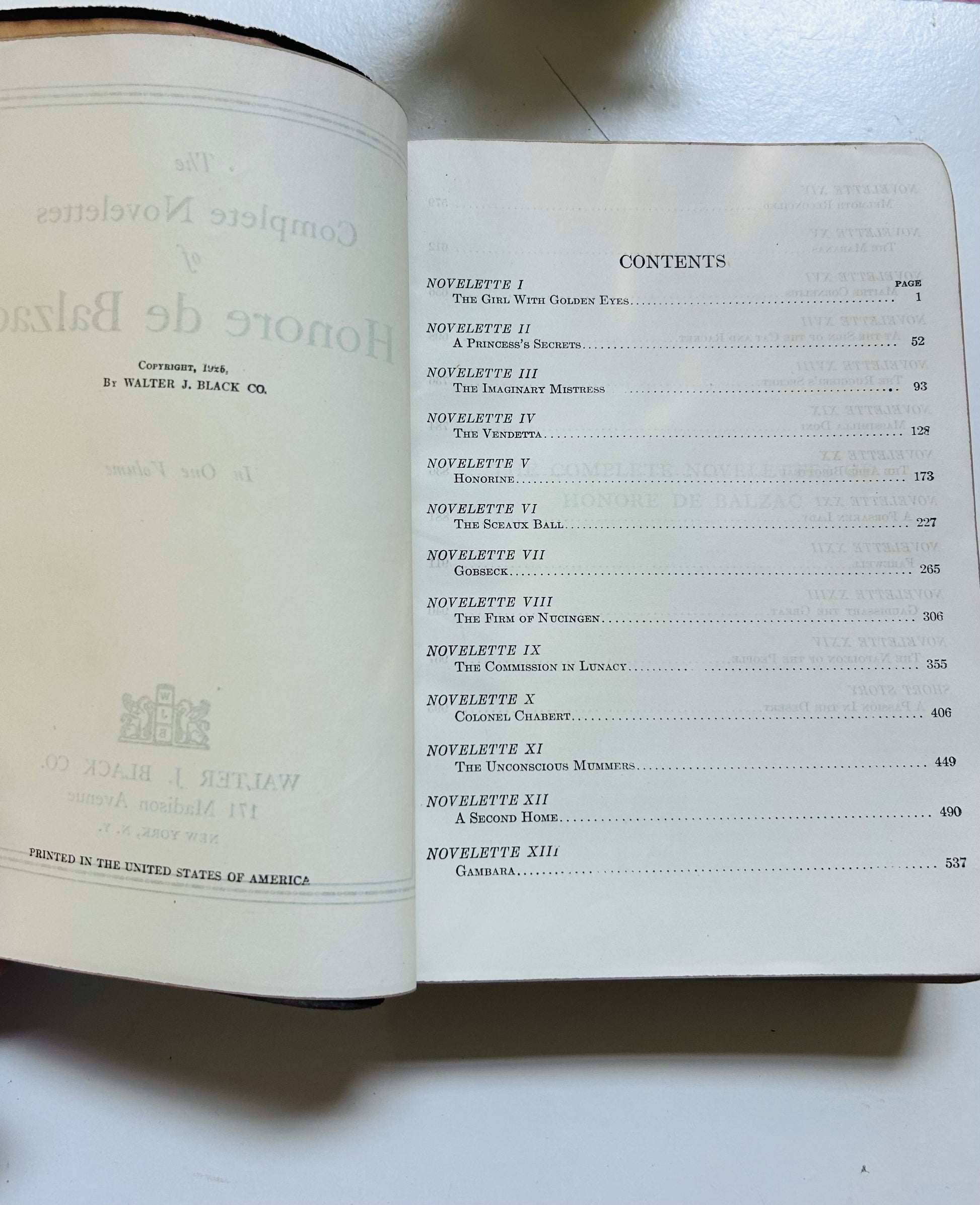 Honore' de Balzac. First edition. NAP. New York: Walter J. Black Co., 1926. Leather bound. Very Good condition. There is some chipping on spine and edges of front/back covers. No writing or markings found in the book, 1005 pp.