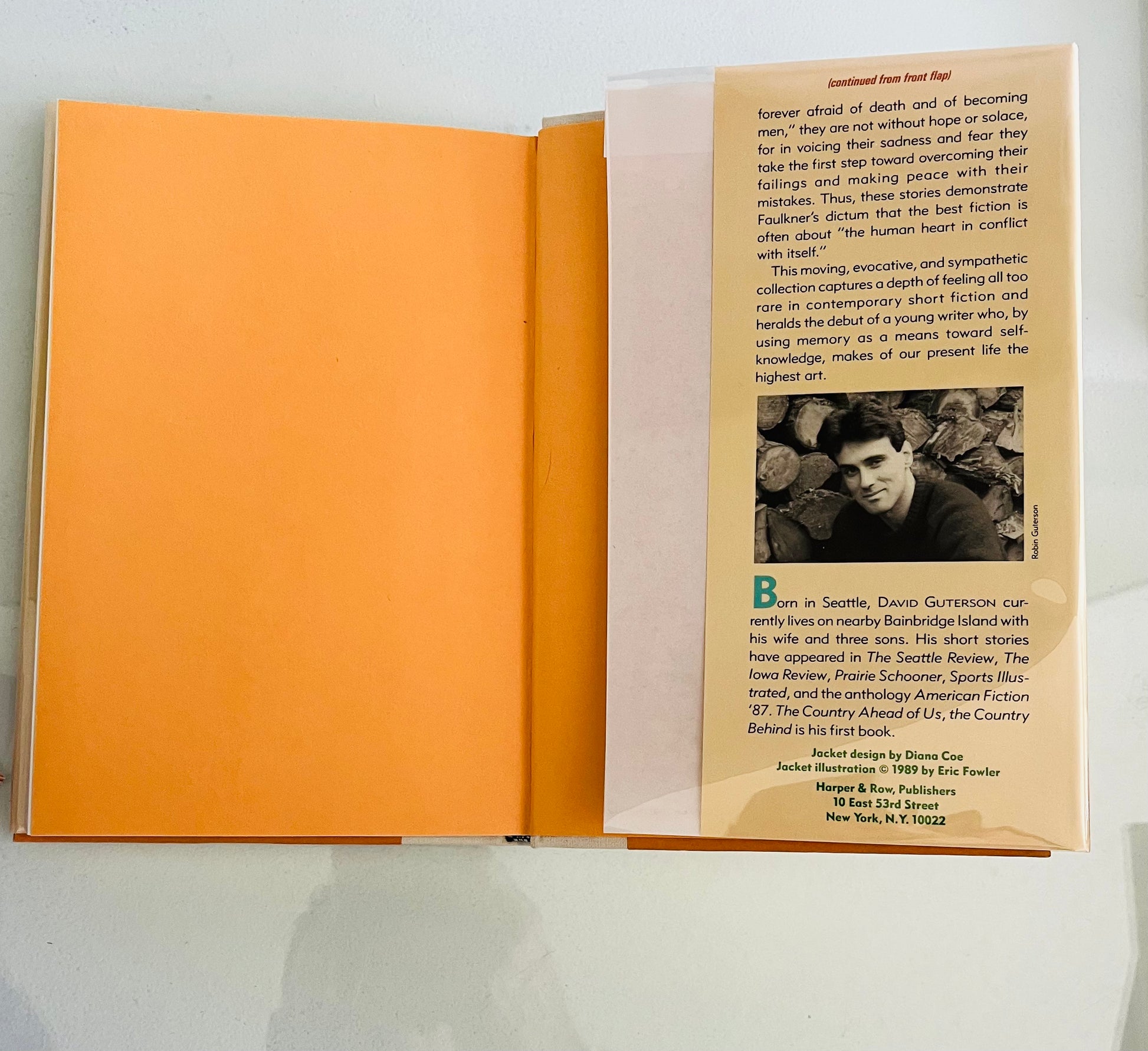 David Guterson. Stated first edition. Signed by the author. Dust Jacket: Fine. An unclipped jacket designed by Diana Coe and illustrated by Eric Fowler. Hardcover: Fine. New York: Harper and Row Publishers, 1989. Burnt orange cloth with white spine and copper lettering. No markings or writing in the book, like new, 162 pp.