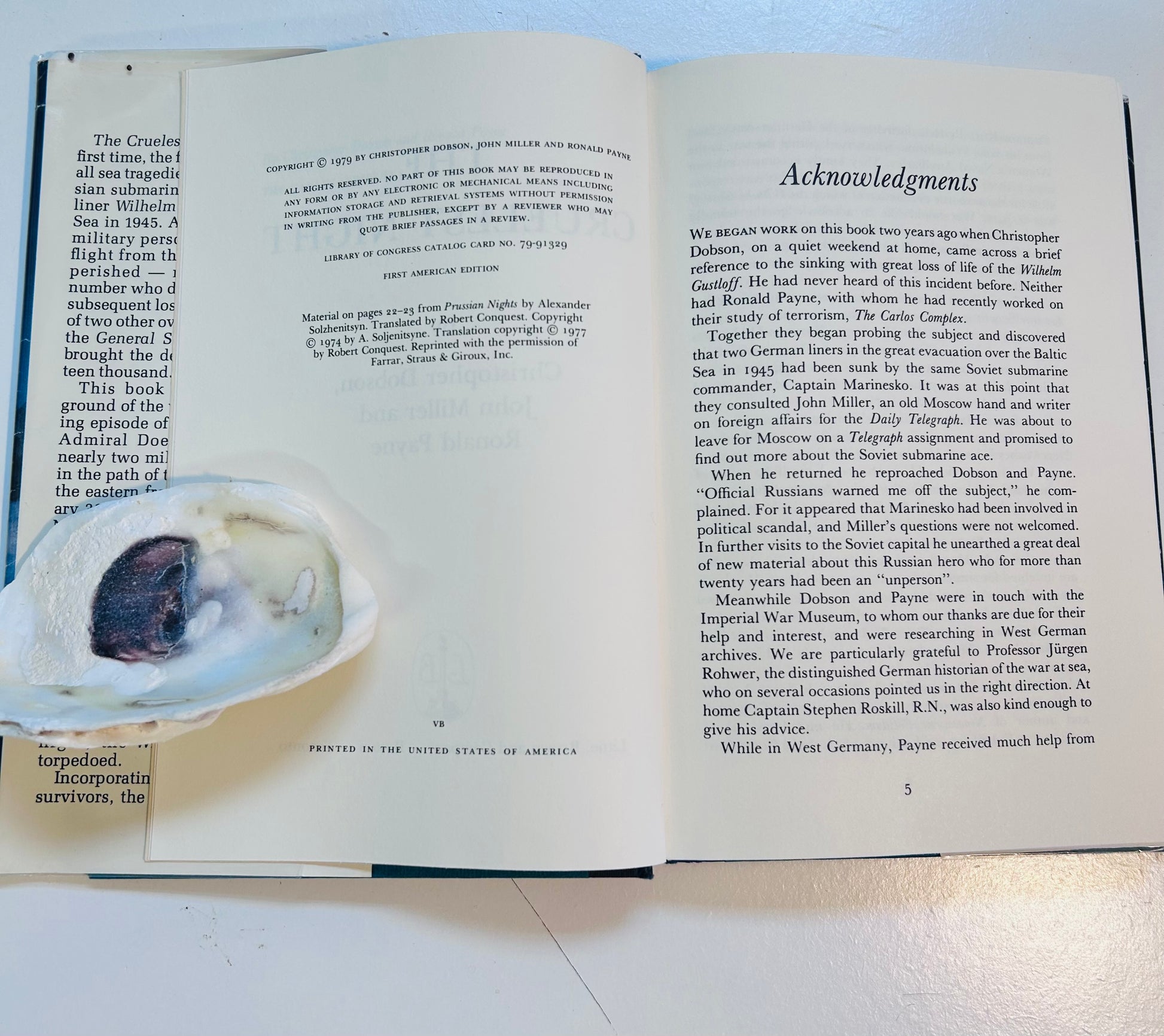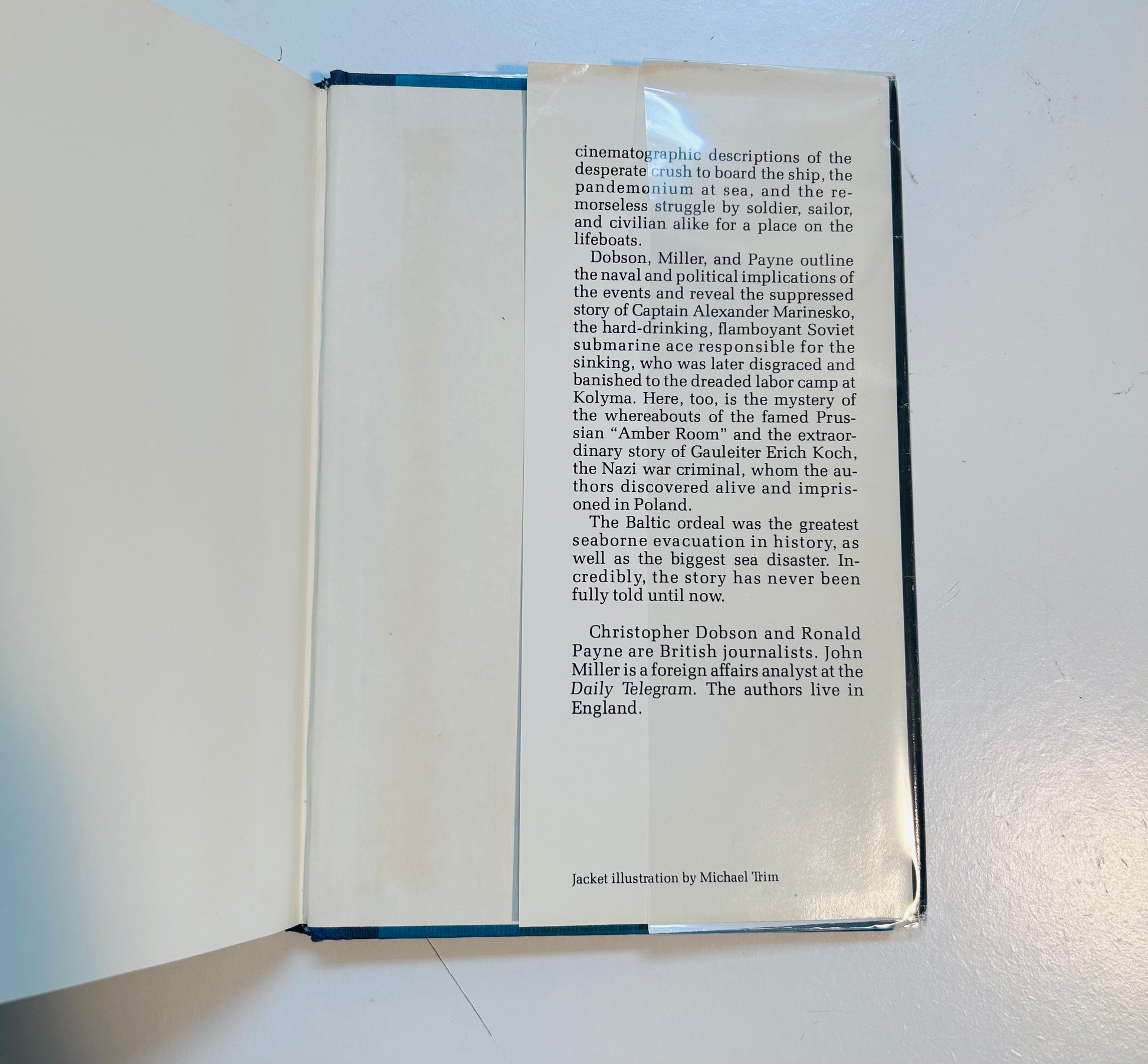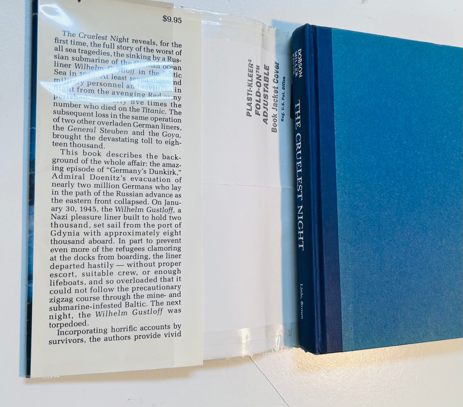 A stated First American Edition of The Cruelest Night — a harrowing nonfiction account of the sinking of the Wilhelm Gustloff, the deadliest maritime disaster in history. Written by acclaimed British journalists Christopher Dobson, John Miller, and Ronald Payne, this meticulously researched work recounts the tragic events of January 30, 1945, when the German ship carrying civilians and wounded soldiers was torpedoed by a Soviet submarine in the Baltic Sea, resulting in the deaths of over 9,000 people.