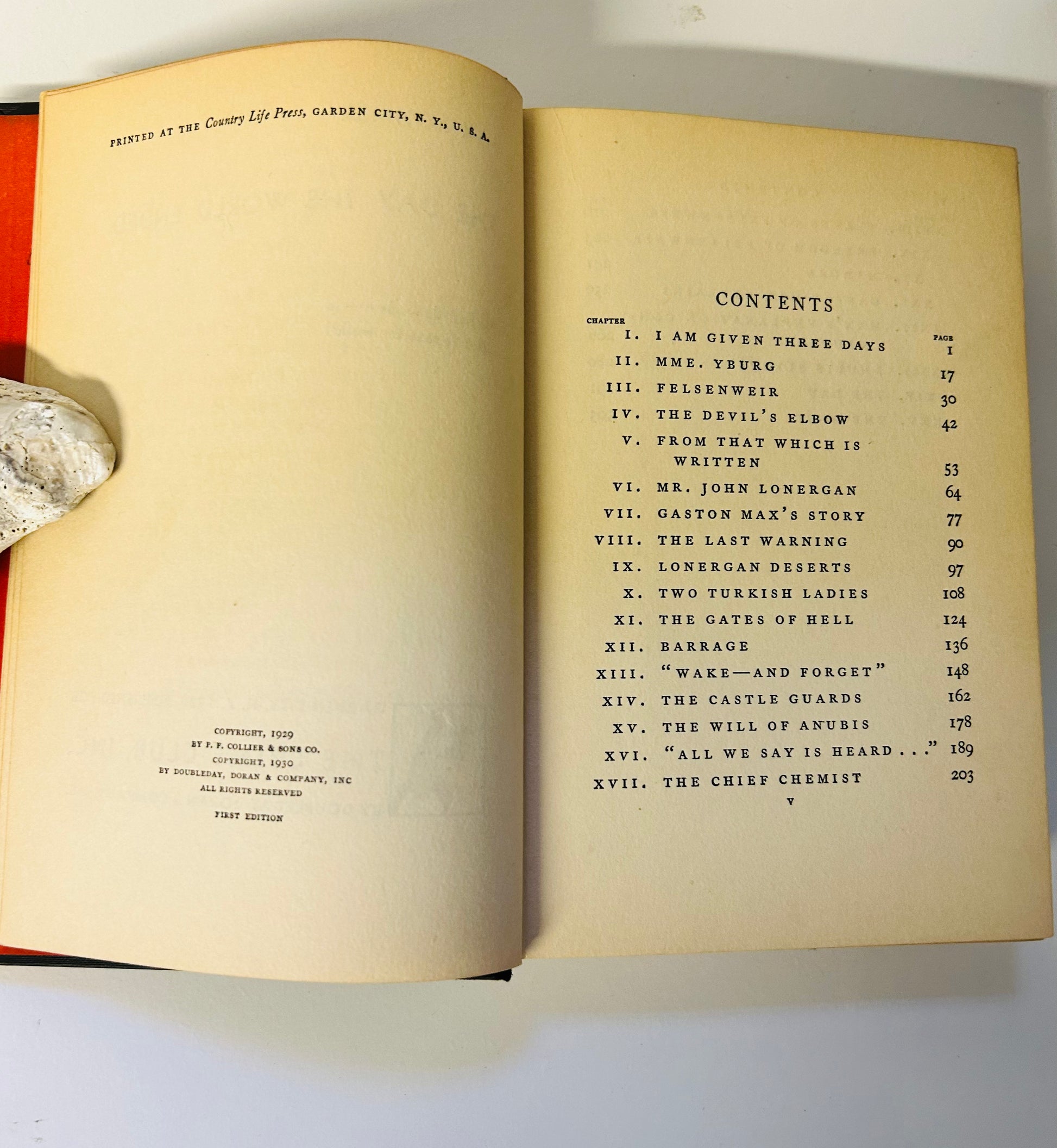 Sax Rohmer. Stated first American edition. New York: Doubleday, Doran and Company, 1930. Former owner signature on inside cover. Price-clipped dust jacket in a mylar protective wrapper. Both dust jacket and hardcover are in Very Good+ condition. Originally serialized in Collier's in 1929. Other than owner's signature, no writing or markings in this well preserved edition, 306 pp.