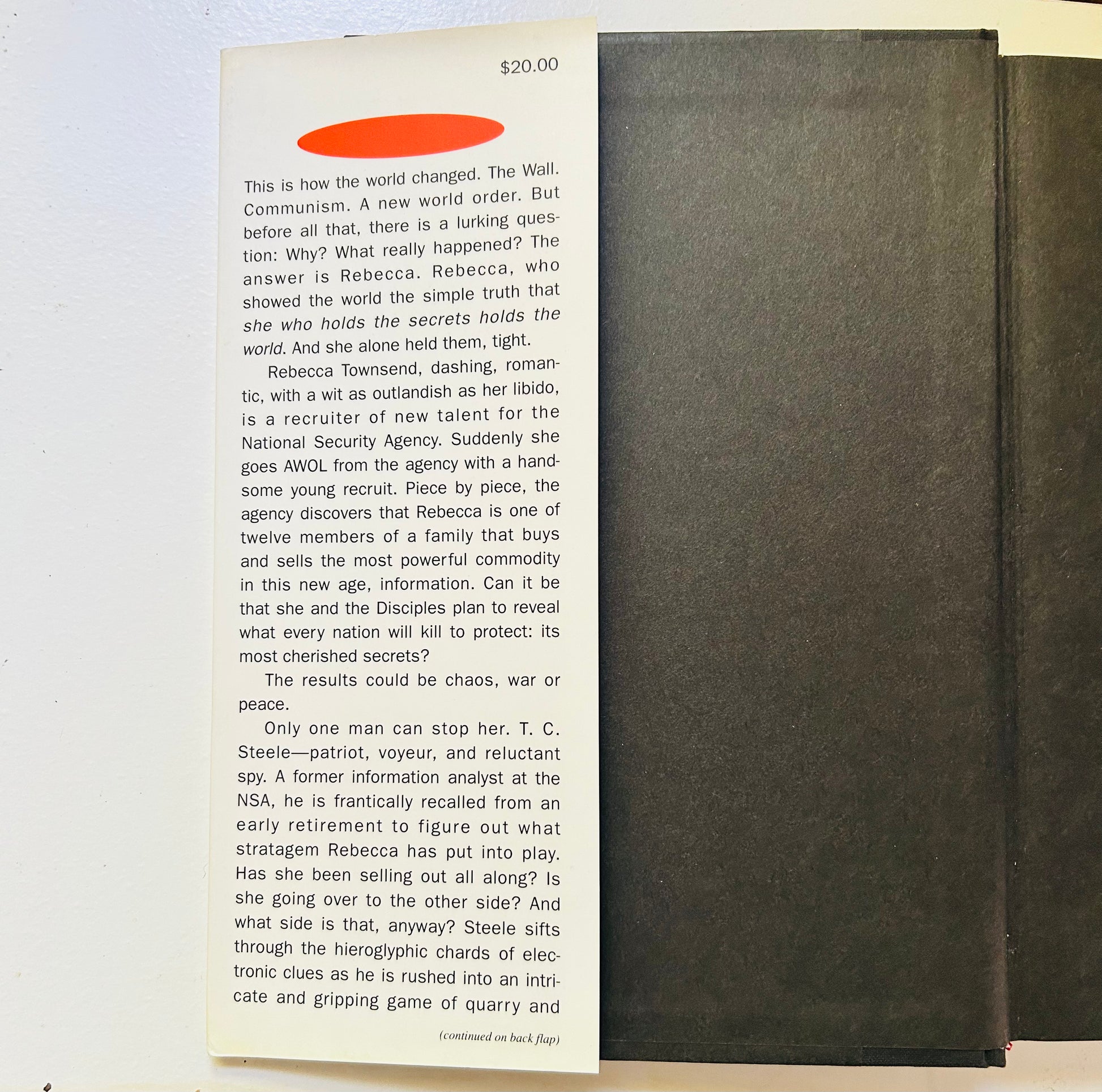 This was the authors first novel. " Here are American spies in pursuit of one another, as their world crashes down around them. The chase is suffused with the mysterious culture of veiled enterprise that surrounds the NSA - known to insiders as No Such Agency."