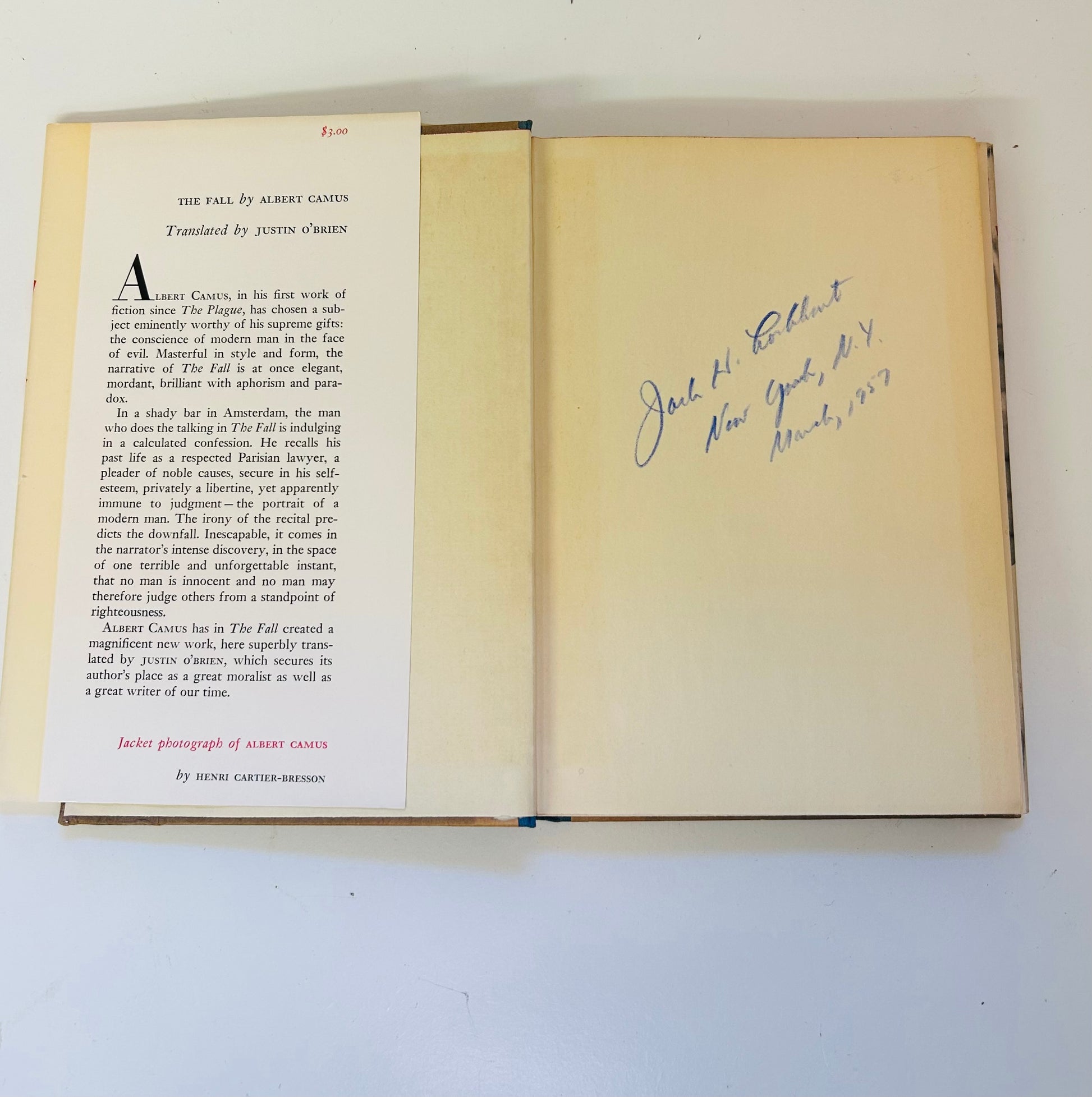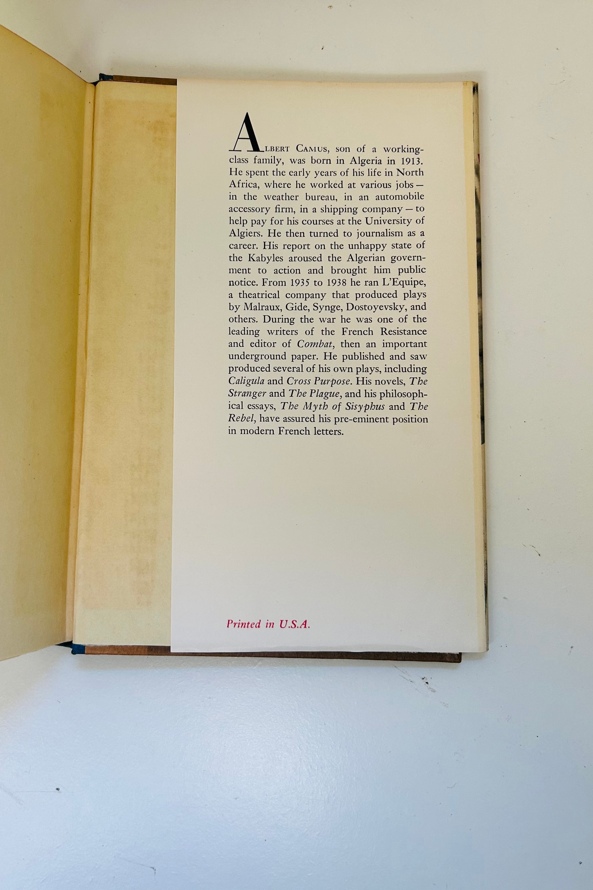 Albert Camus. First American edition, second printing. Dust Jacket: Very Good+ An unclipped jacket with original price $3.00 on inside flap. Author photo on rear jacket by Henri Cartier-Besson. The jacket has some general wear with fading on the spine, otherwise, well-preserved. Hardcover: Very Good+ New York: Alfred A. Knopf, 1957. No writing or markings in the book, 147 pp.
