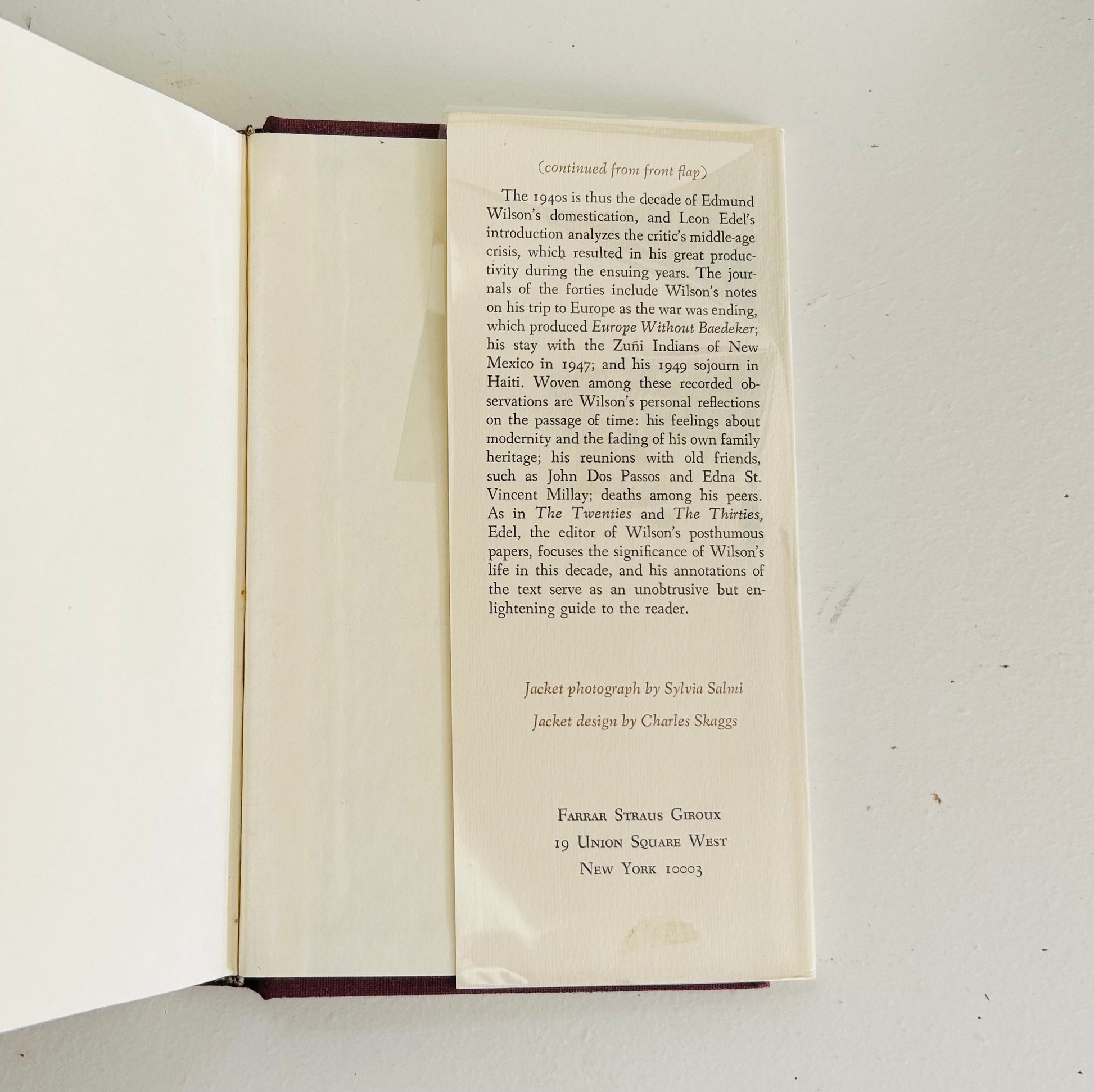 Edmund Wilson. First edition, first printing (stated). New York: Farrar, Straus and Geroux, 1983. Both unclipped dust jacket, in a mylar protective wrapper, and hardcover are in Near Fine condition. Edited with an Introduction by Leon Edel, 369 pp.