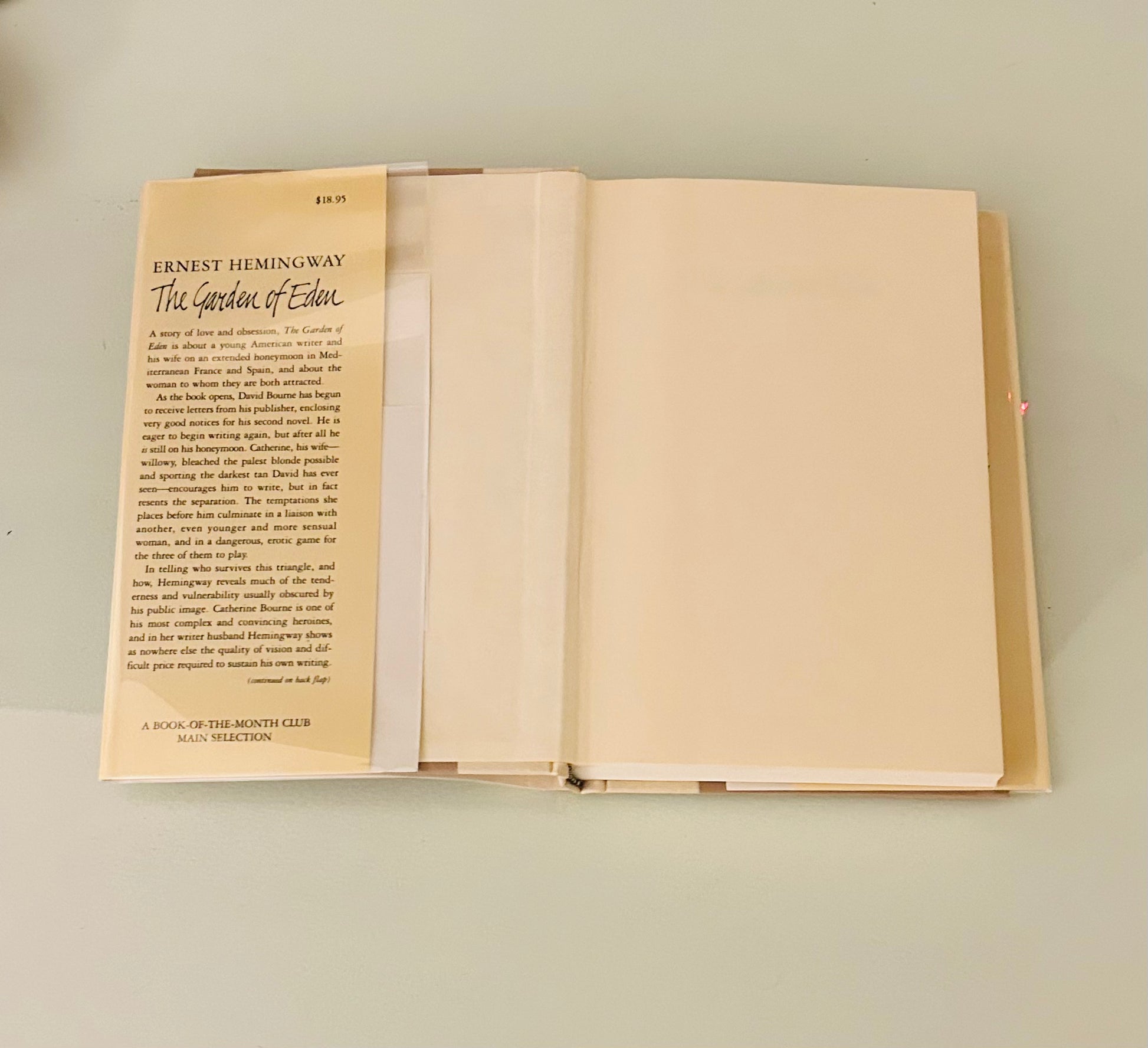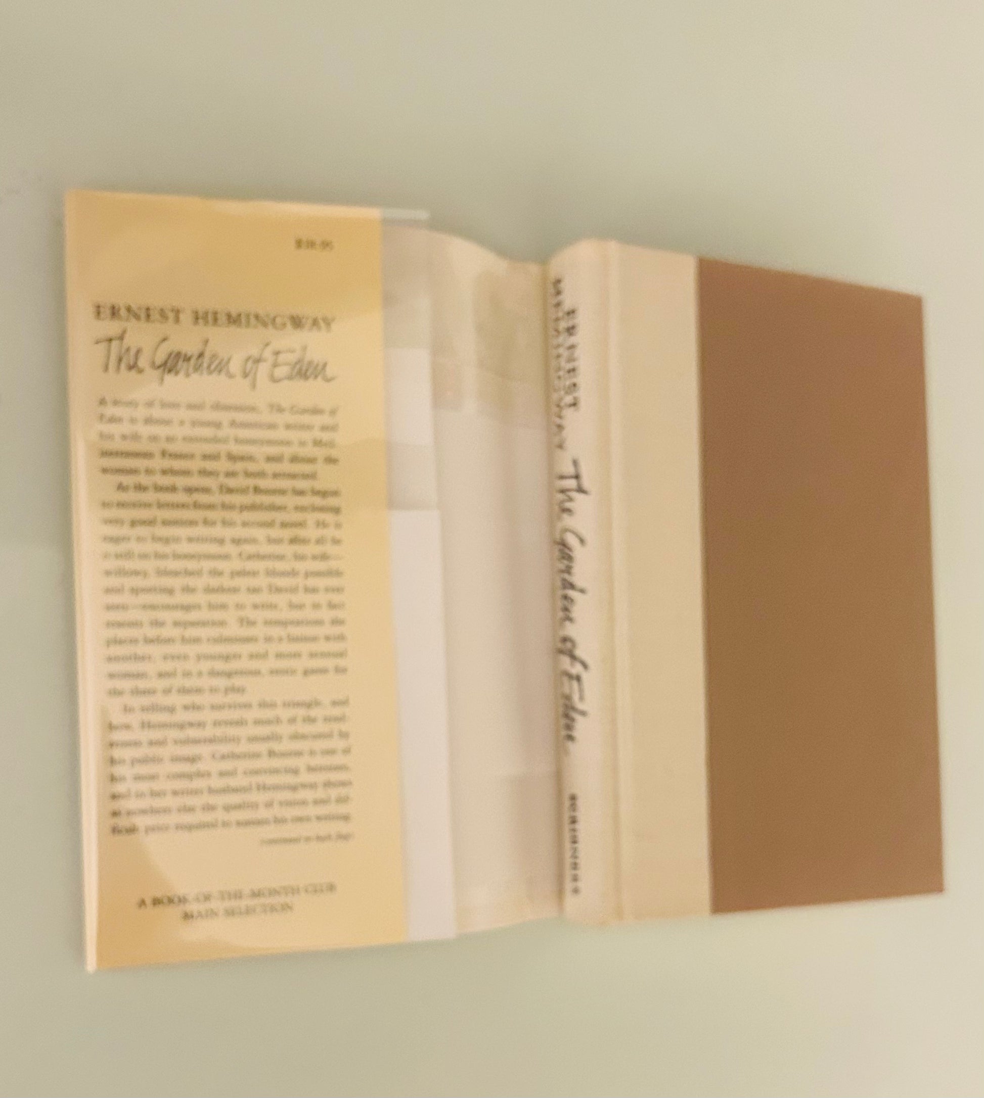 A Near Fine tight copy in a bright unclipped dust jacket. This posthumously published novel tells the story of a young American writer in Paris who has just published his second novel, is on an extended honeymoon on the French coast, the woman the couple is attracted to, and the erotic games the three of them play. The theme of bisexuality is the major reason this novel was published 24 years after Hemingway's death. The true test of the worthiness of this work of fiction is that the story, the characters and the writing hold up as a work by Hemingway.