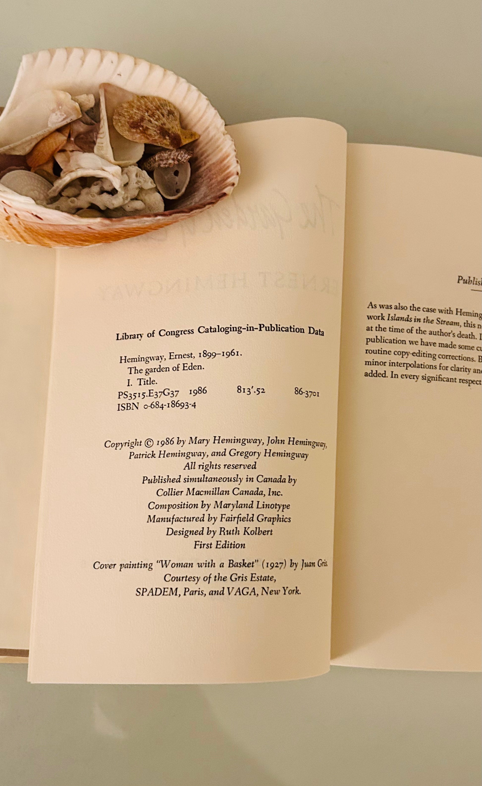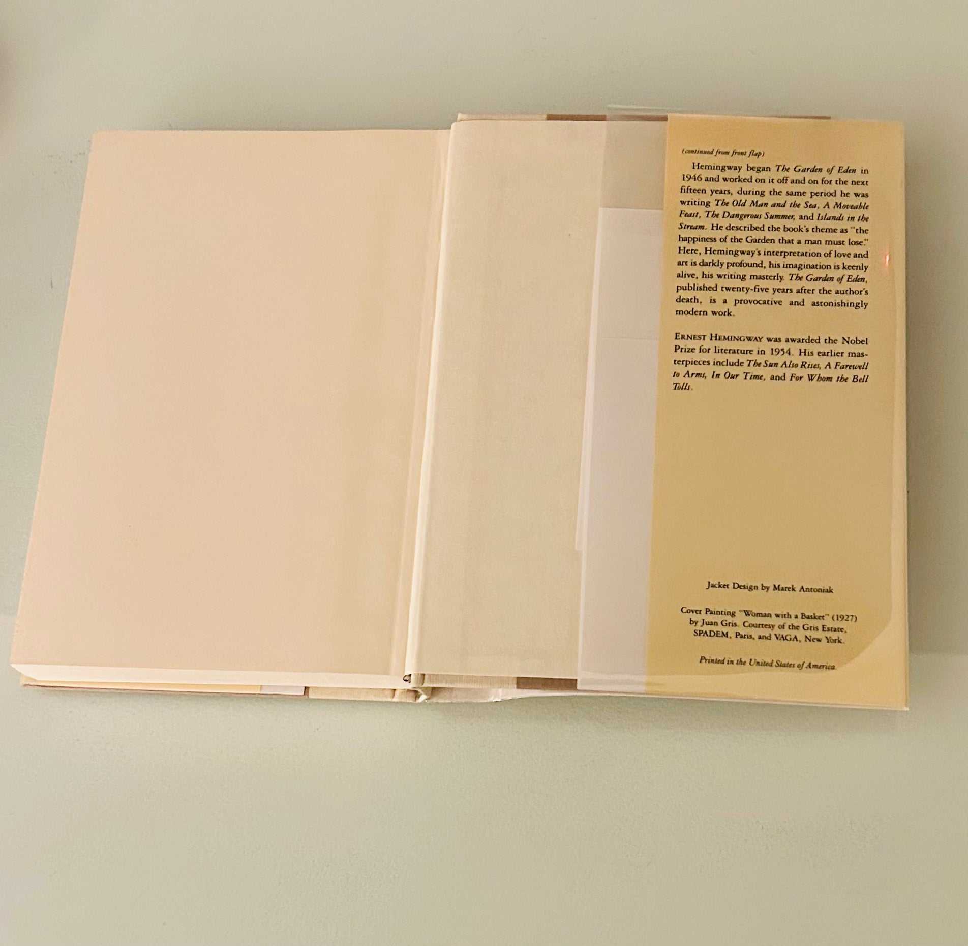 Ernest Hemingway. Stated first edition, first printing. New York: Charles Scribner's Sons, 1986. Both unclipped dust jacket and hardcover are in Near Fine condition. The dust jacket, designed by Marek Antoniak, is covered in a mylar protective wrapper. Has the original price $18.95 on inside flap. No writing or markings in this well-preserved copy, 247 pp. Cover painting "Women with a Basket" (1927) by Juan Gris.