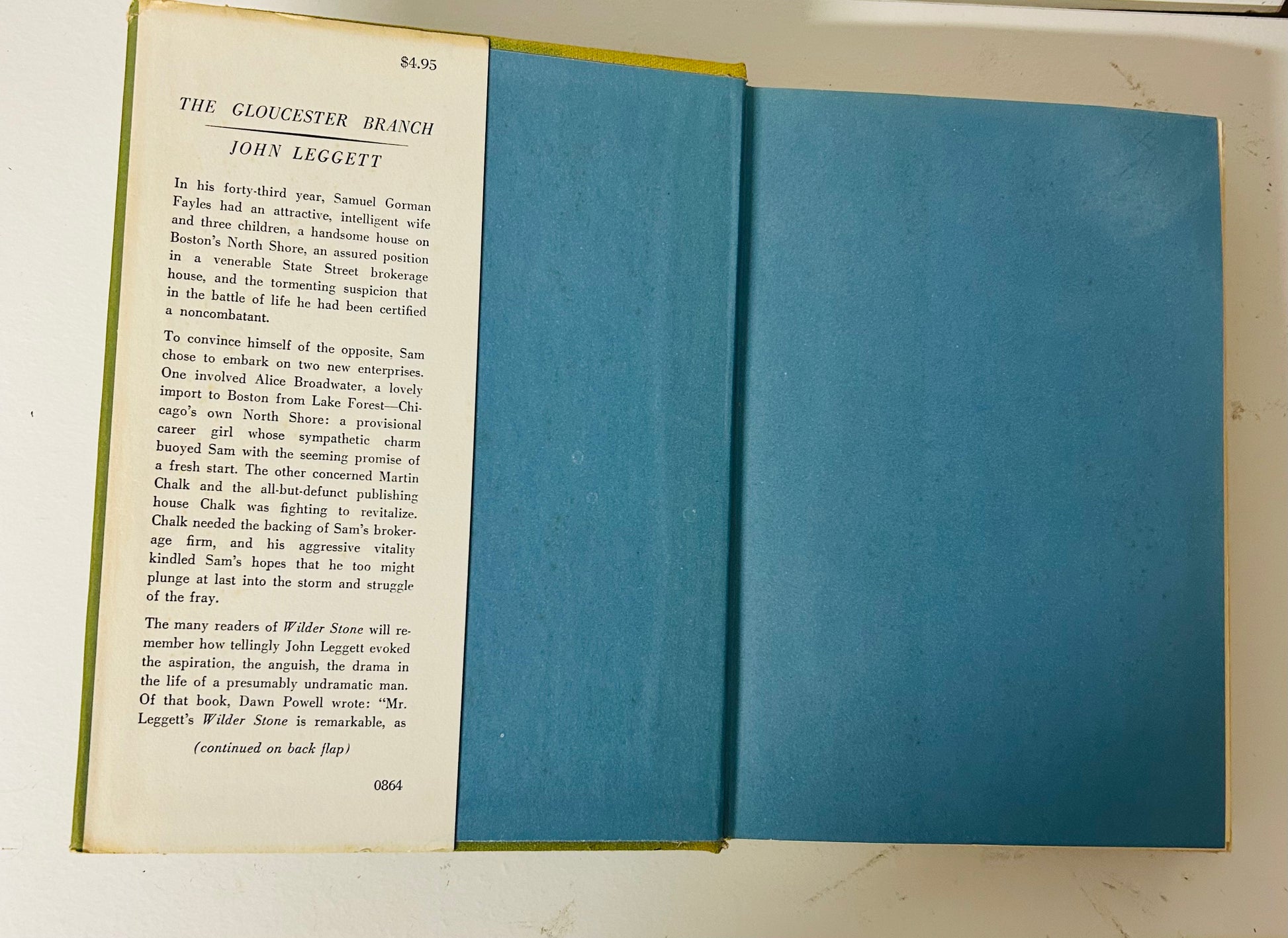 The authors second novel, a work of fiction, set along Boston's North Shore, featuring a presumably undramatic man, a broker with the requisite attractive, intelligent wife and 3 children. In his mid-forties, all his roads ahead seem "to lead the wrong way".