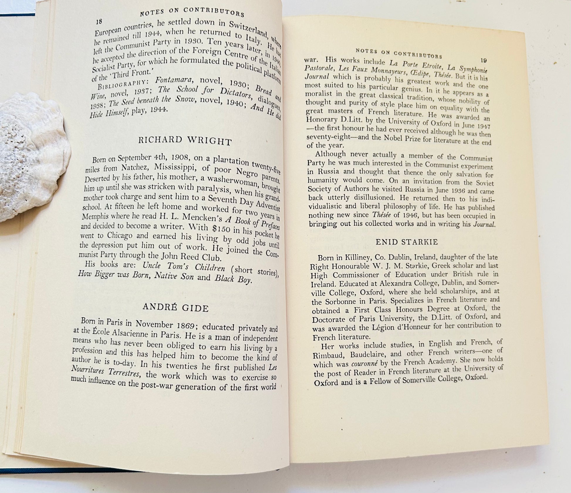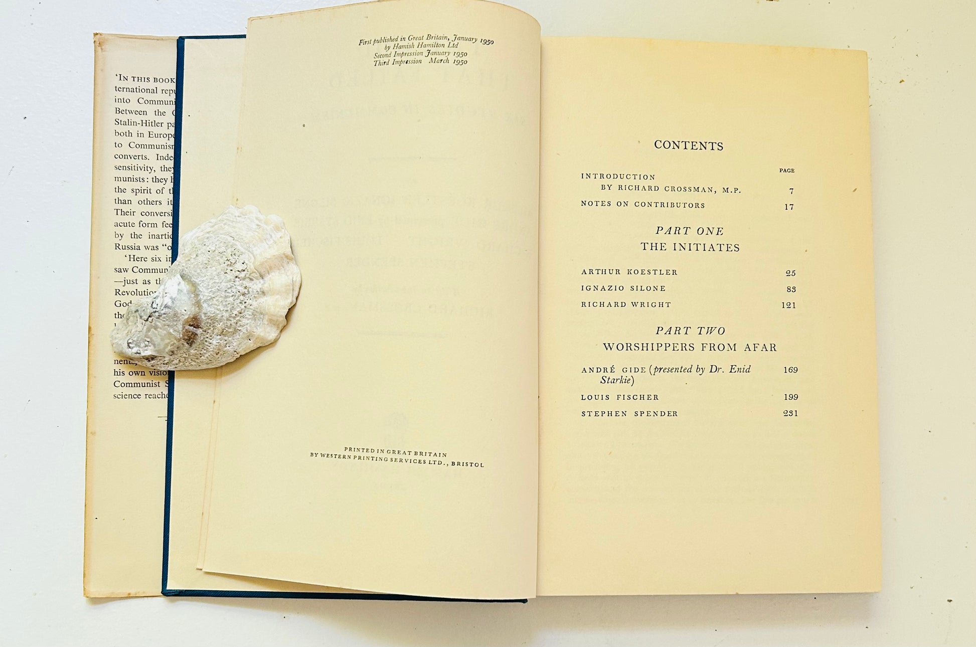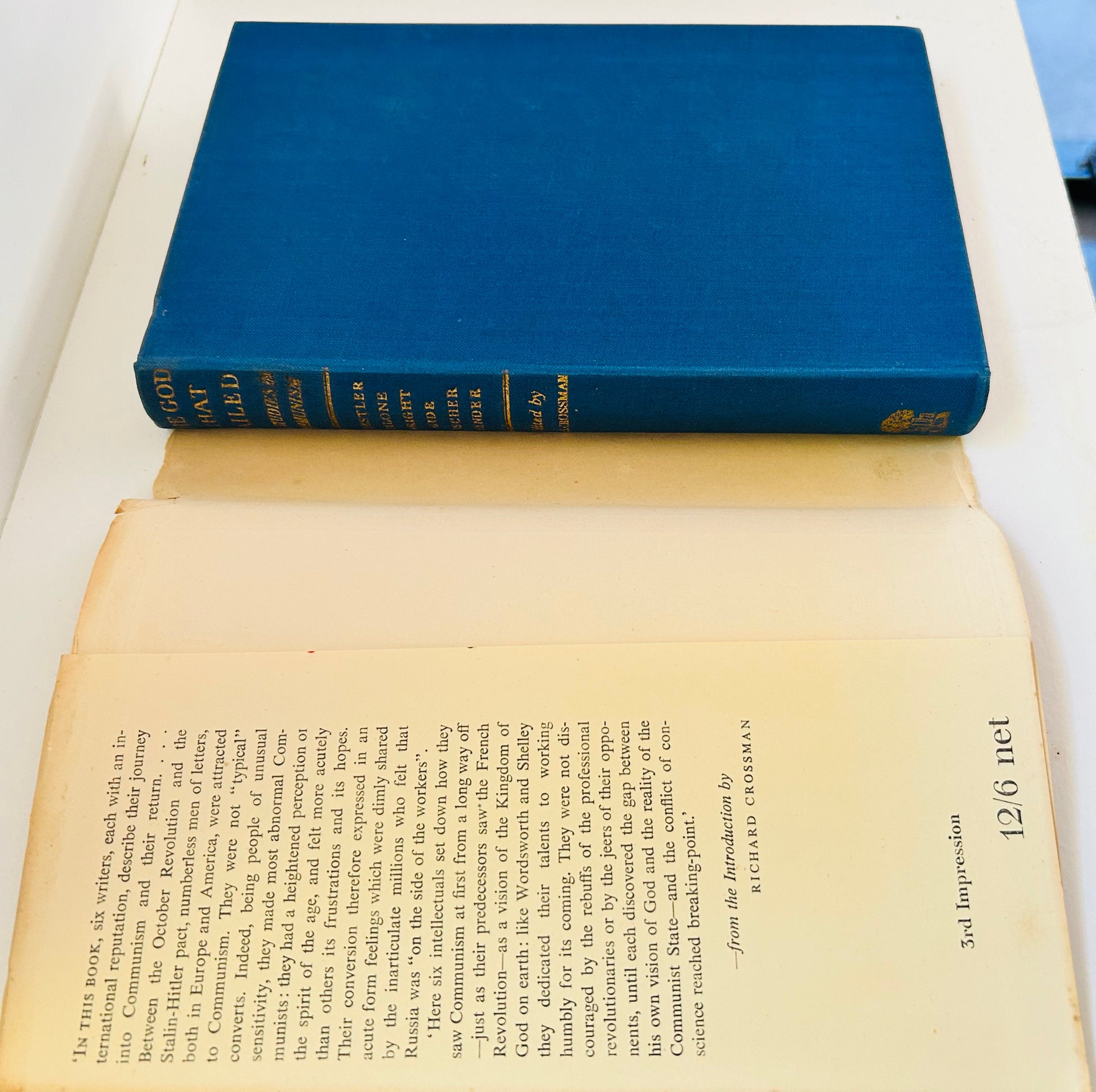 Arthur Koestler, Andre Gide' et al. First edition, third printing. London: Hamish Hamilton, 1950. Both unclipped dust jacket and hardcover are in Very Good+ condition. There is a small tear on the jacket at top of spine. No writing or markings in the book, 272 pp.