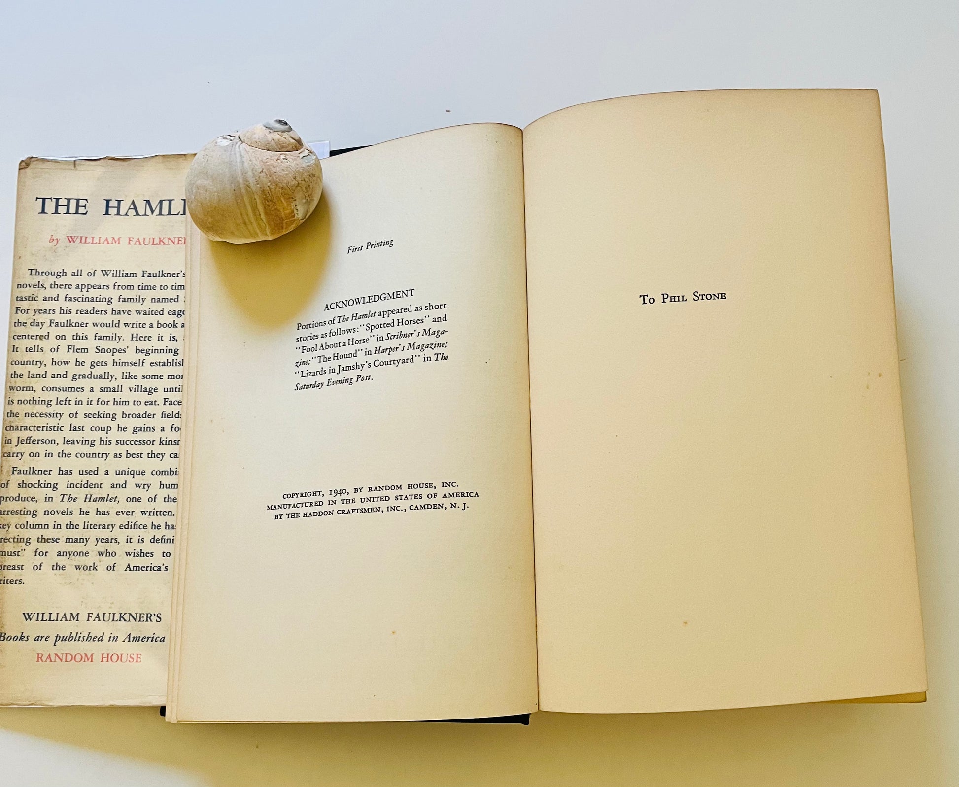 William Faulkner. New York: Random House, 1940. First edition. VG hardcover in a good, unclipped ($2.50) dust jacket, 421 pp. Part of the Snopes Family Trilogy.