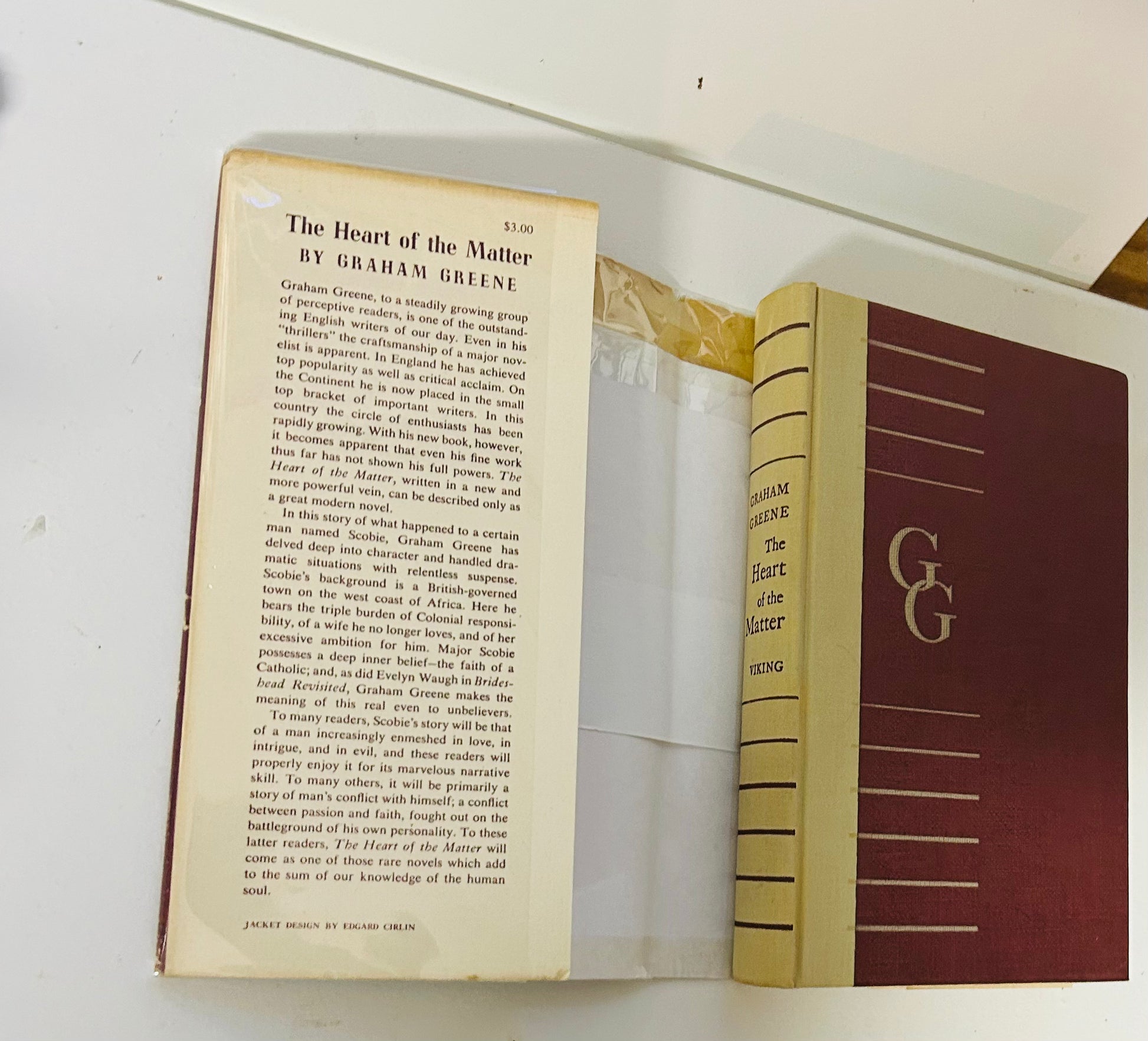 Greene's first post-war novel, portraying the moral crisis of a good man "increasingly enmeshed in love, in intrigue, and in evil" (per the jacket), while serving as a wartime British colonial police officer in a West African capital. In 1942-1943 Greene himself had served in Freetown, Sierra Leone, as an MI6 intelligence officer -- under the later-to-be-notorious double agent Kim Philby.