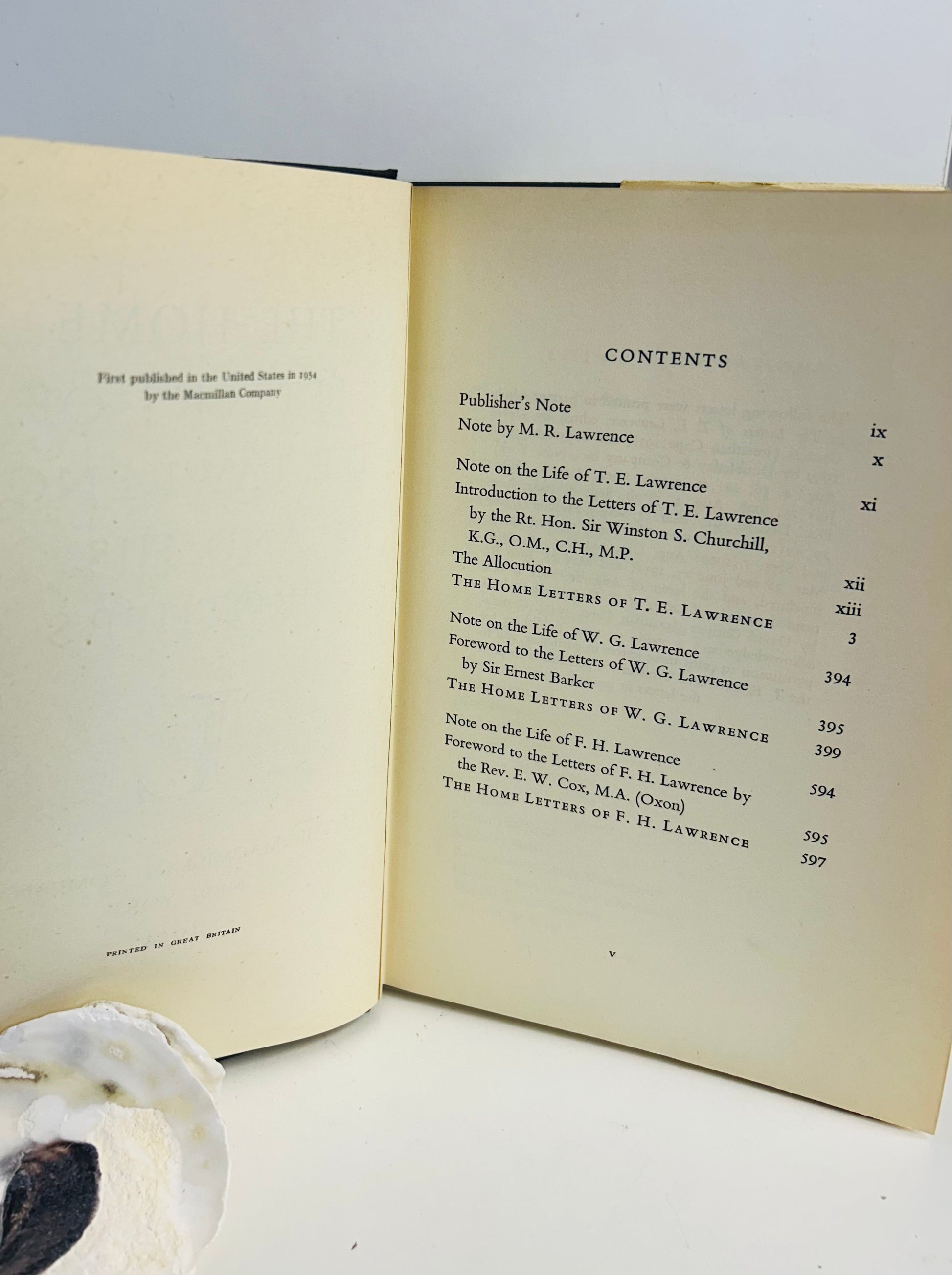 F.J.C. Burton (Felix James Cyril Burton), Editor. First edition. New York: MacMillan Company, 1954. Both price-clipped (UK) dust jacket and (U.S) hardcover are in Very Good condition. No writing or markings found in the book, 731 pp. Illustrated with black and white photographs of the Lawrence brothers as well as hand drawn maps. Introduction written by Winston Churchill.