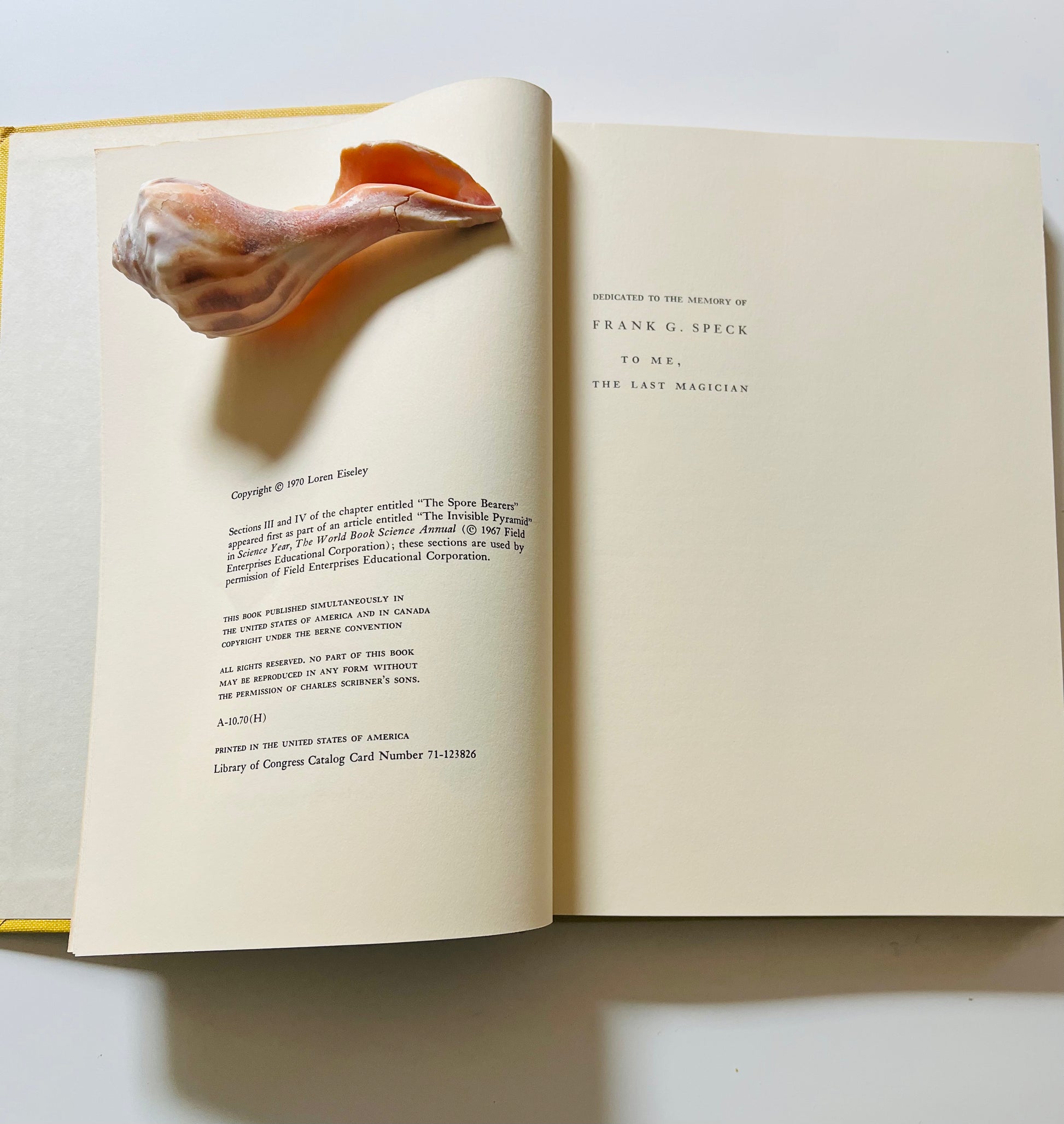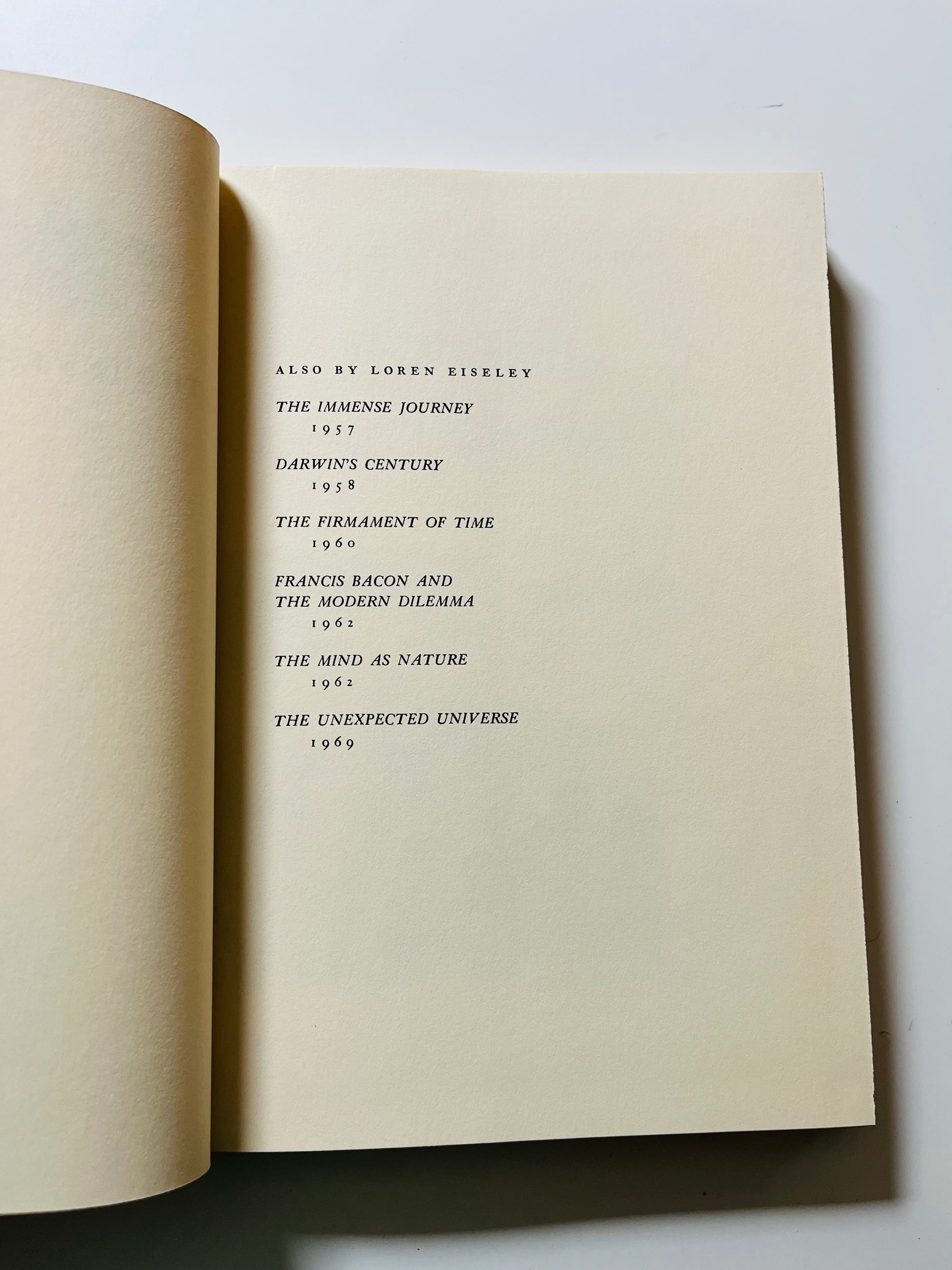 Loren Eiseley. First edition, first printing. Dust Jacket: Very Good. An unclipped jacket with original price ($6.95) still intact. Two small chips on top of spine with some foxing inside. Author photo on rear jacket by Frank Ross. Hardcover: Near Fine. New York: Charles Scribner's Sons, 1970 (A-10.70 H). Yellow cloth with black lettering on the spine. No markings or writing in the book, 173 pp. Includes woodcut illustrations by Walter Ferro.
