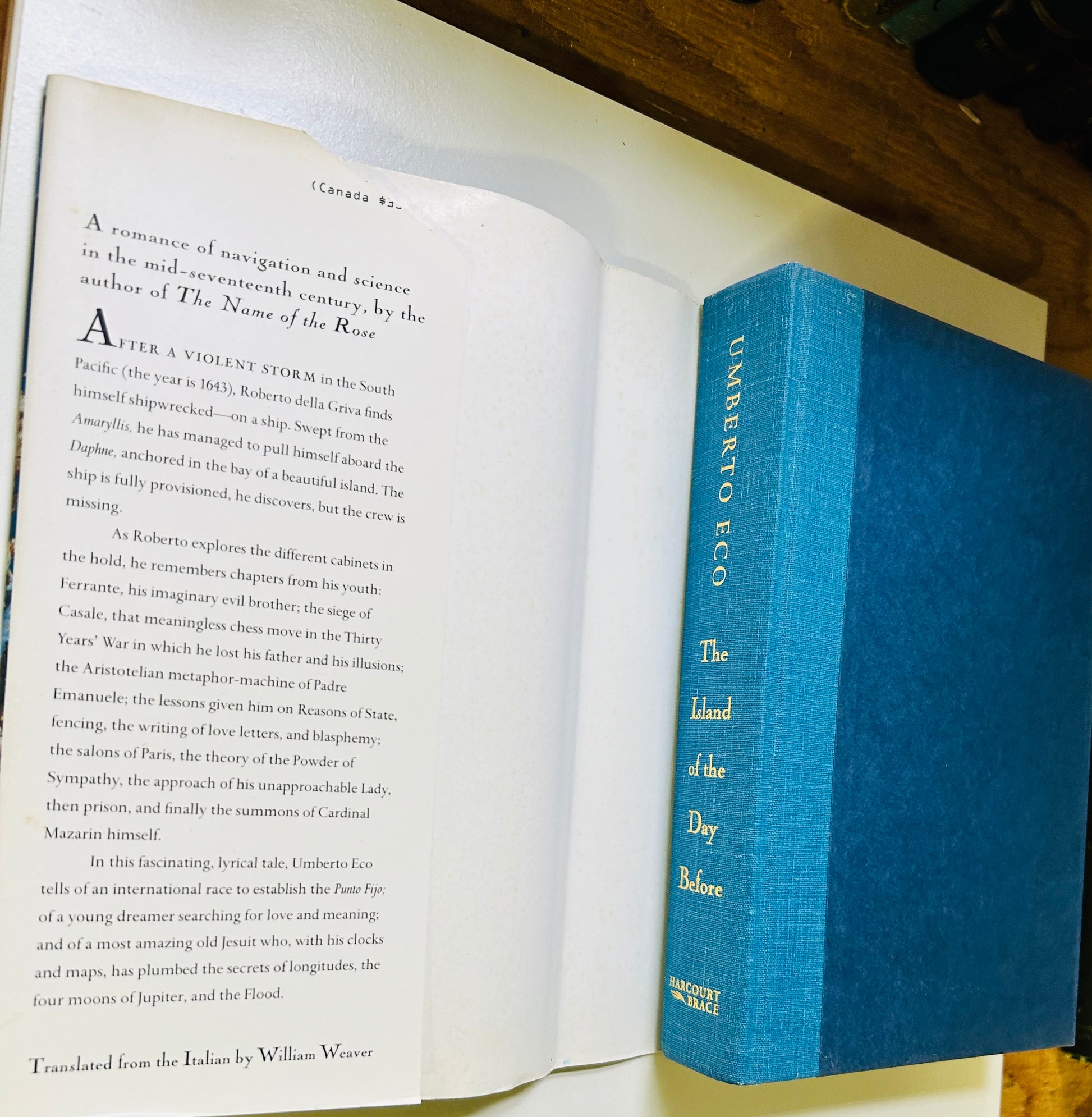 "In 1643 a castaway comes upon an abandoned ship anchored off a beautiful island in the South Pacific. As he explores the vessel's mysterious cargo, he revisits the events of his tempestuous youth. In this fascinating tale, Umberto Eco tells of an international race to fathom the mystery of longitude, of a young dreamer searching for love and meaning, and of a most amazing old Jesuit who has plumbed the secrets of longitude, the moons of Jupiter, and the Flood."