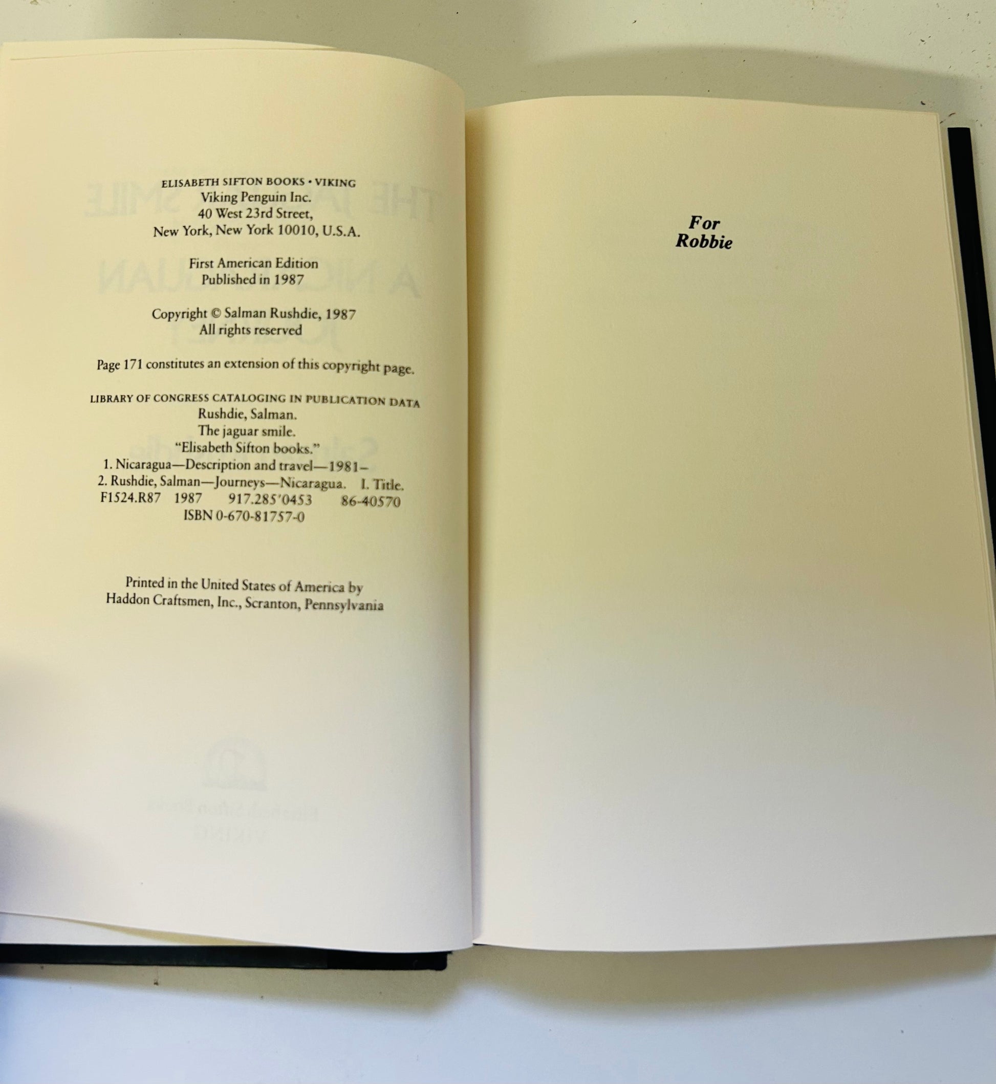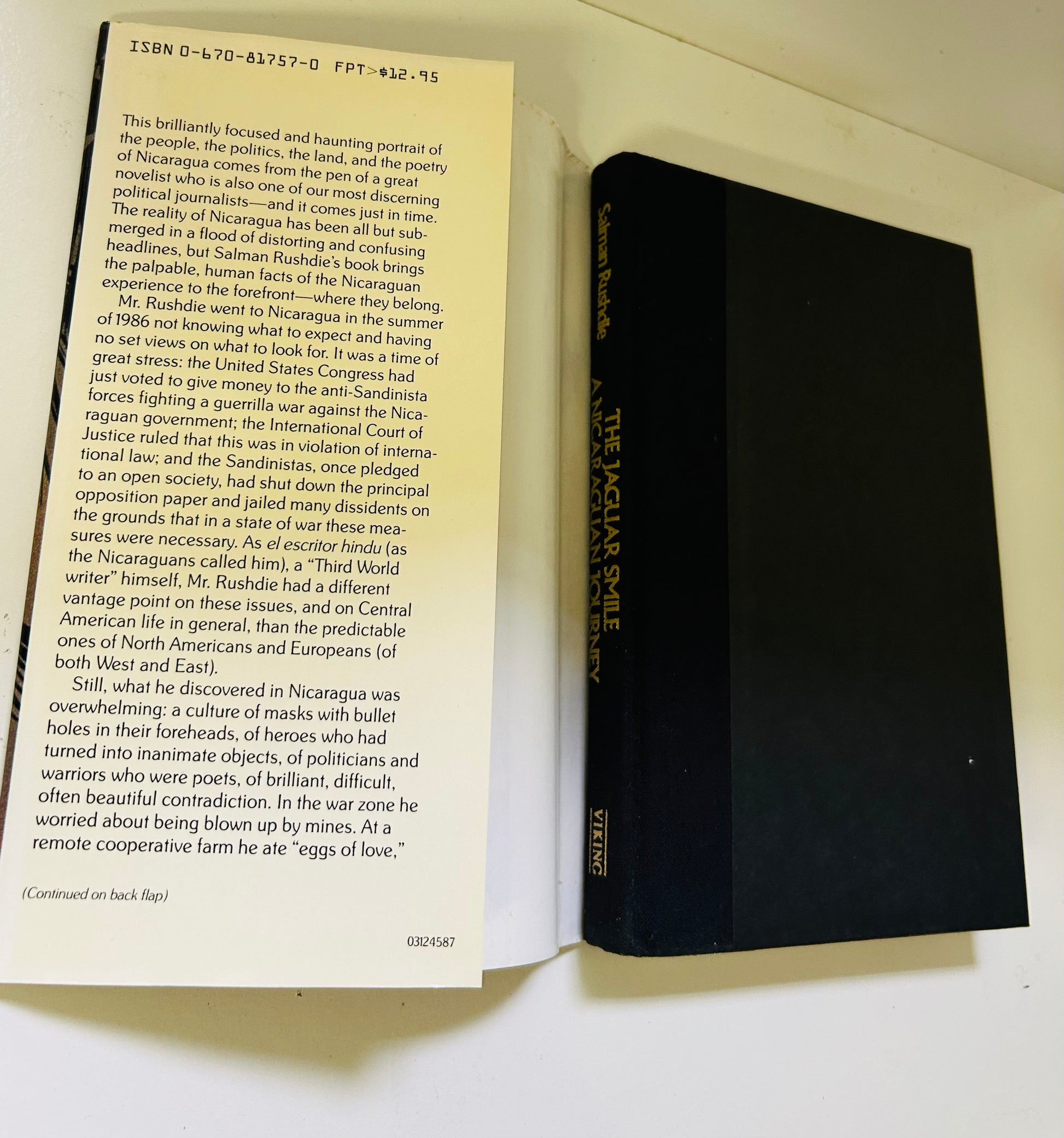 The Jaguar Smile is Salman Rushdie's first full-length non-fiction book, which he wrote in 1987 after visiting Nicaragua. This was just the fourth book published by the author.