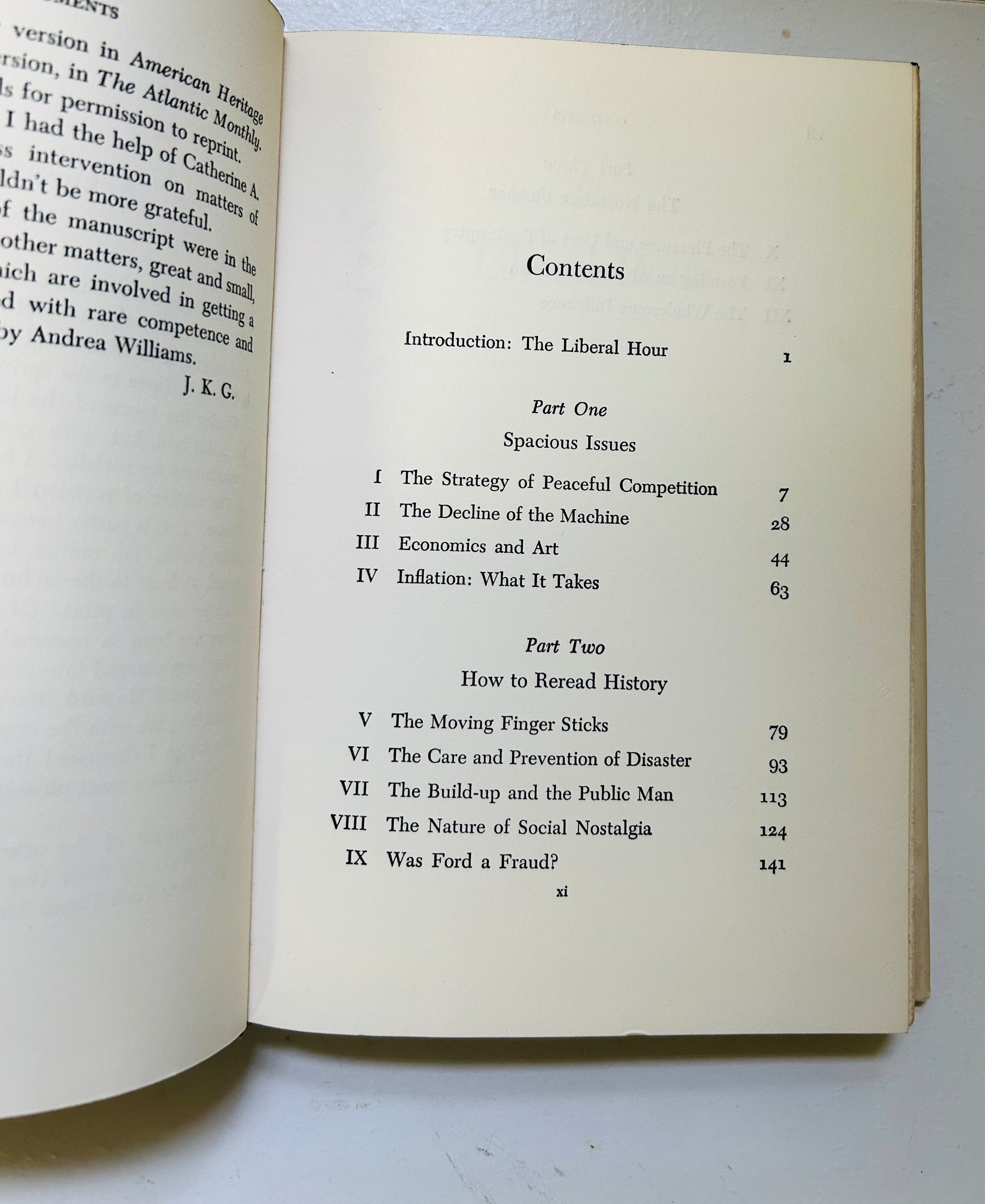 Professor Galbraith splits his work into two parts - the first concerns such contemporary questions as economic competition with Russia and that hardy and irrepressible perennial, inflation - and what to do about it. The second part deals with the myths, misconceptions, and misreading of American history, from the Civil War to the Great Depression.