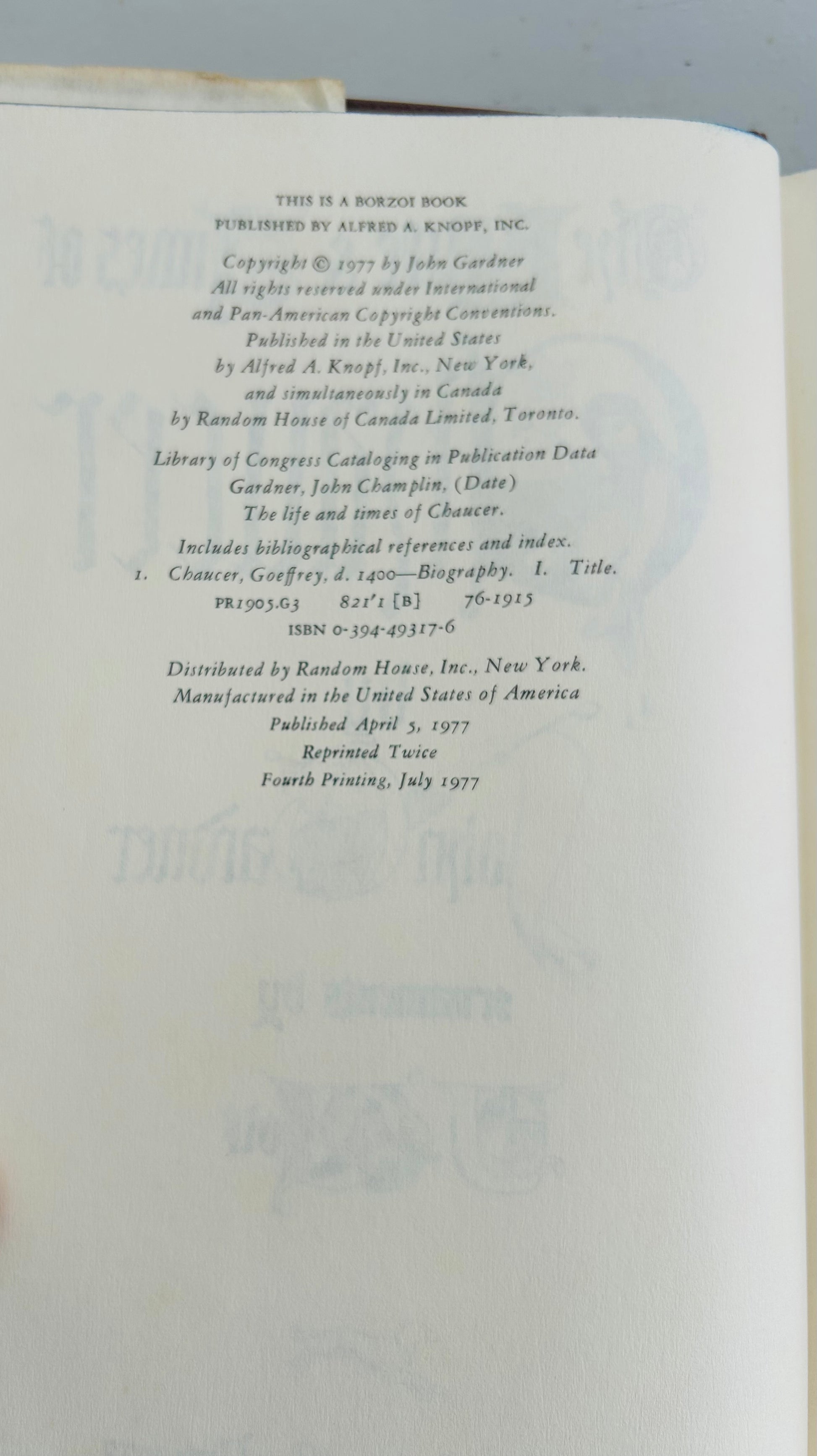 Biography on Geoffrey Chaucer, focusing on the period and his works. This is certainly one of Gardner's most intriging books.
