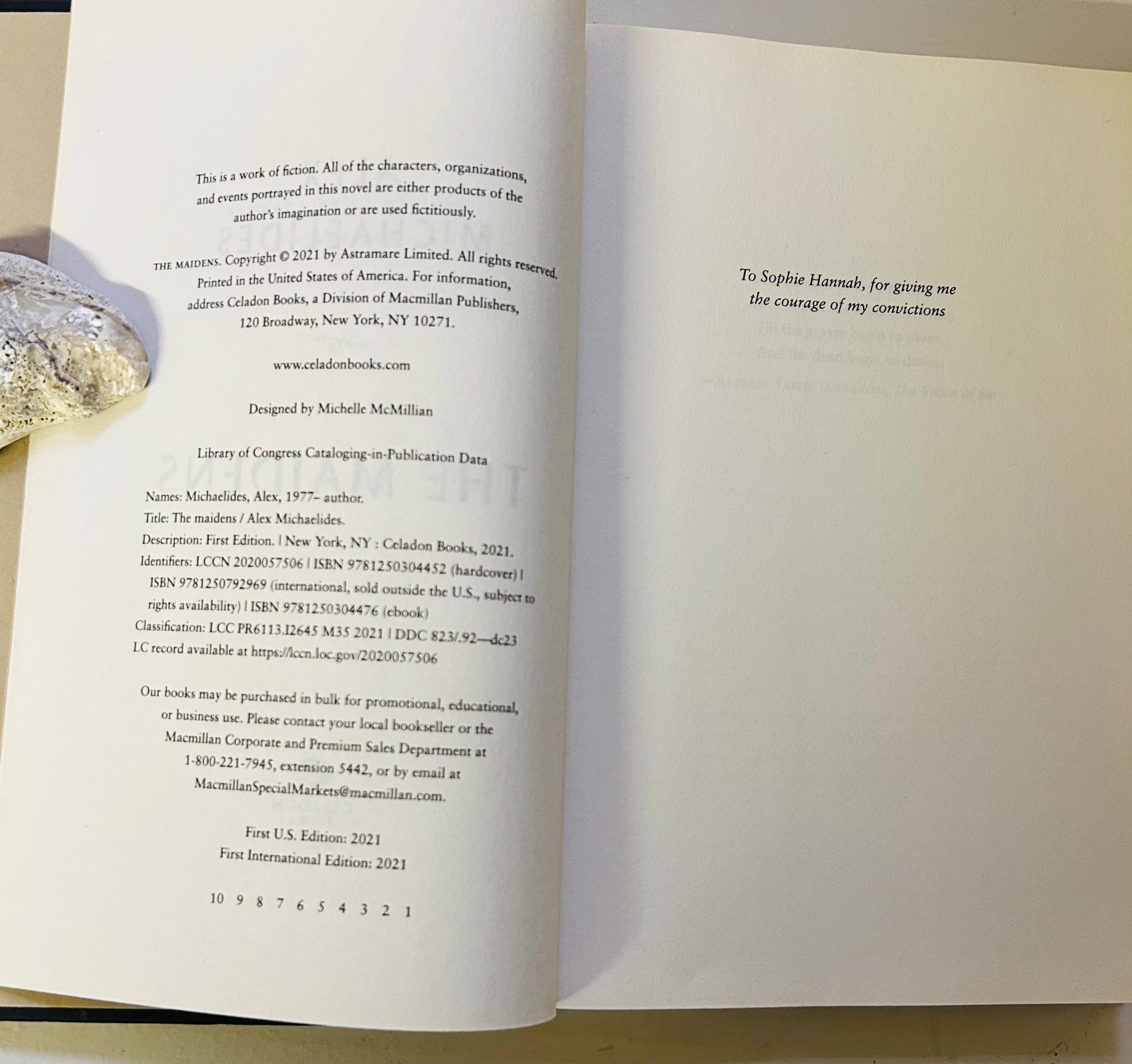 Alex Michaelides. Signed by author. First U.S. edition, first printing. New York: Celaden Books, 2021. Both unclipped dust jacket and hardcover are in Near Fine condition. Jacket designed by Will Staehle. Other than former owner's signature on inside cover, no markings or writing in the book, 337 pp.