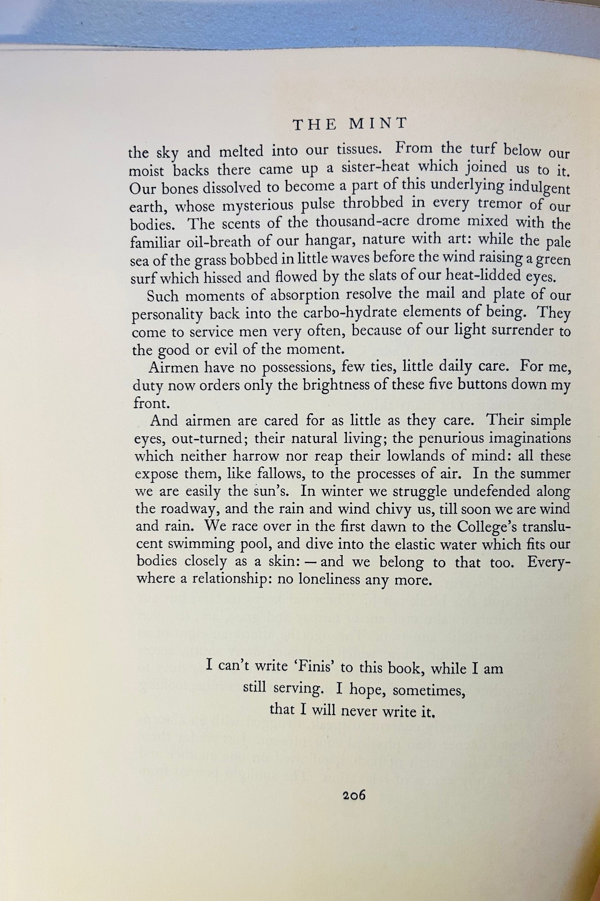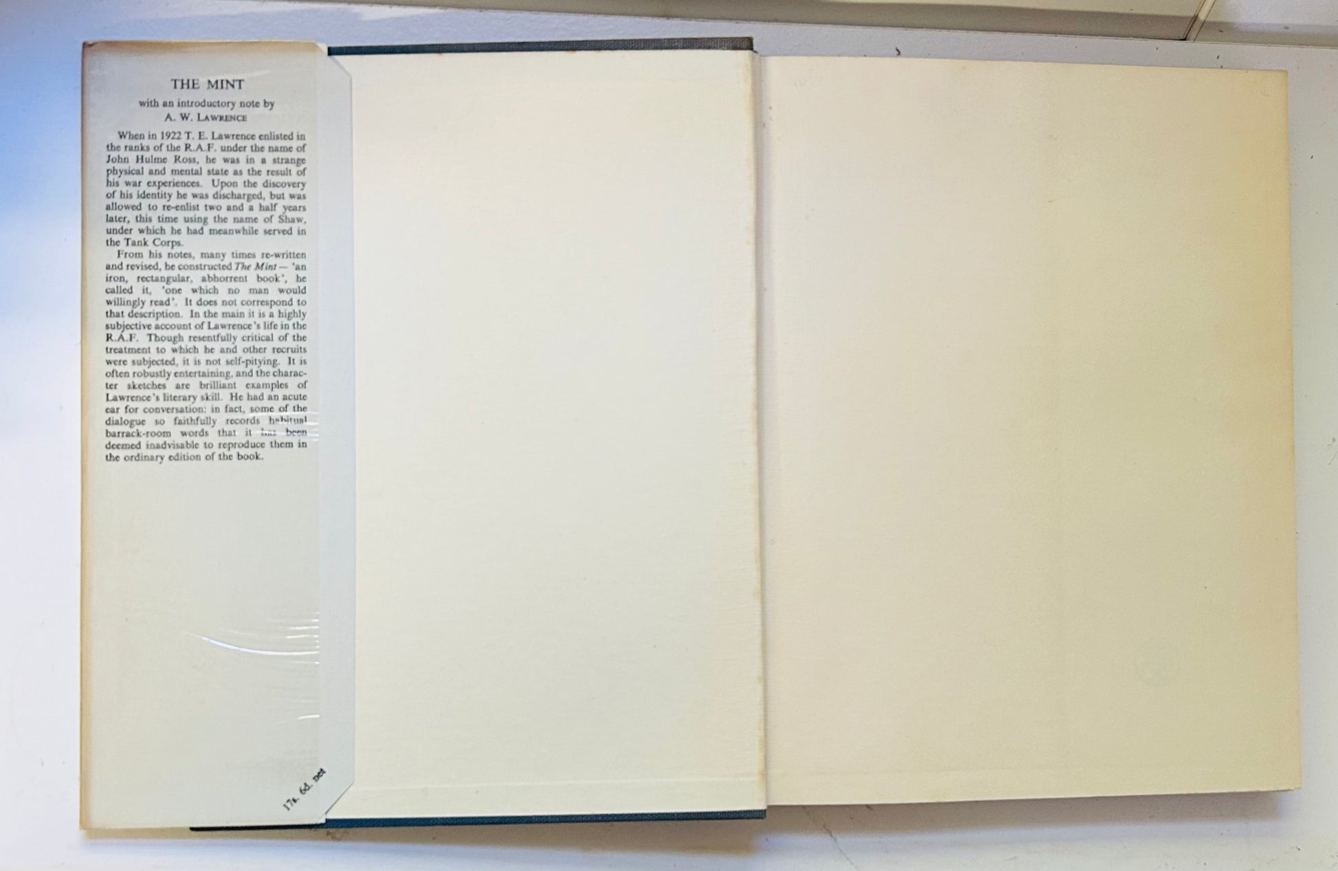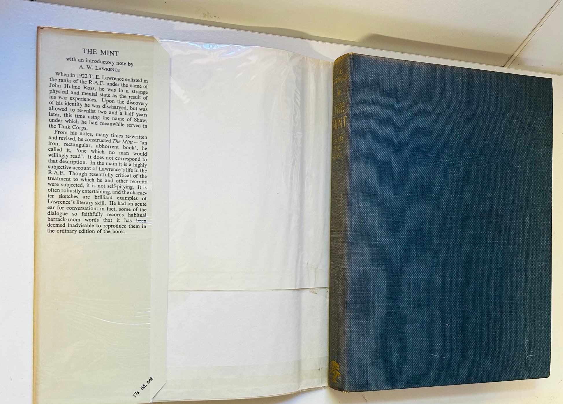 A wonderfully preserved first edition of T. E. Lawrence's insightful memoirs of his time as an enlisted man in the Royal Air Force. First edition. When, in 1922, T. E. Lawrence enlisted in the ranks of the R.A.F. under the name of John Hulme Ross, he was in a strange mental and physical state as a result of his experiences in war. Upon the discovery of his true identity, he was discharged. Allowed to re-enlist two years later under the name of Shaw, this is an expurgated collection of his notes during his time serving. Written by T. E. Lawrence, a British archaeologist, army officer, diplomat, and writer who became renowned for his role in the Arab Revolt and the Sinai and Palestine Campaign against the Ottoman Empire during the First World War.